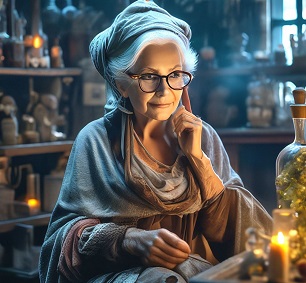 в ведьму со всеми своими атрибутами.