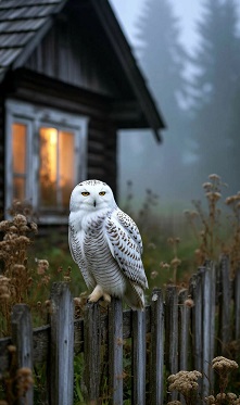 заборе перед домом сидела сова. Увидев меня, она захлопала крыльями и