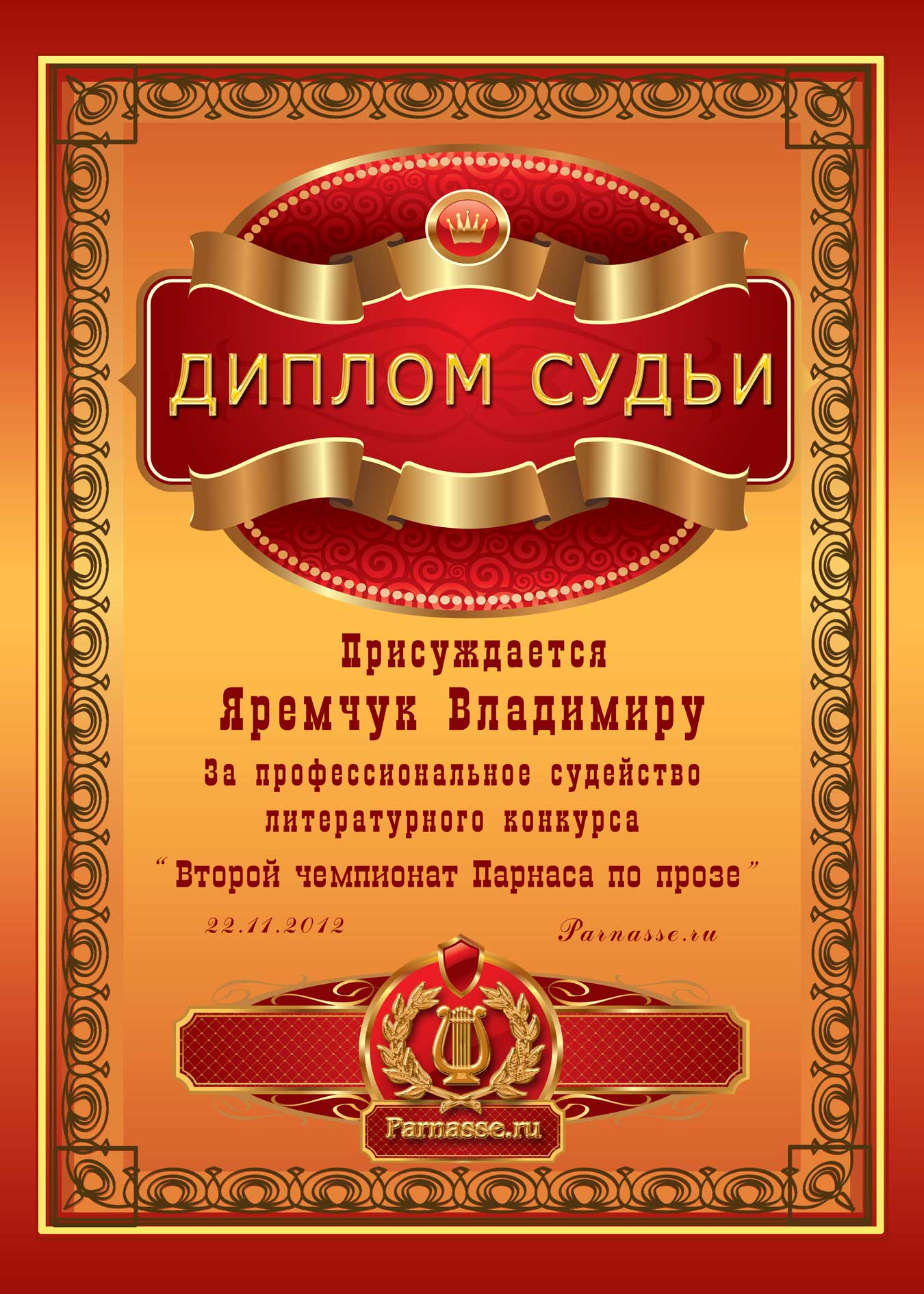За беспристрастное судейство второго Чемпионата Парнаса по прозе! За мудрость, тактичность и терпение! За литературно-писательское мастерство и высокий профессионализм!