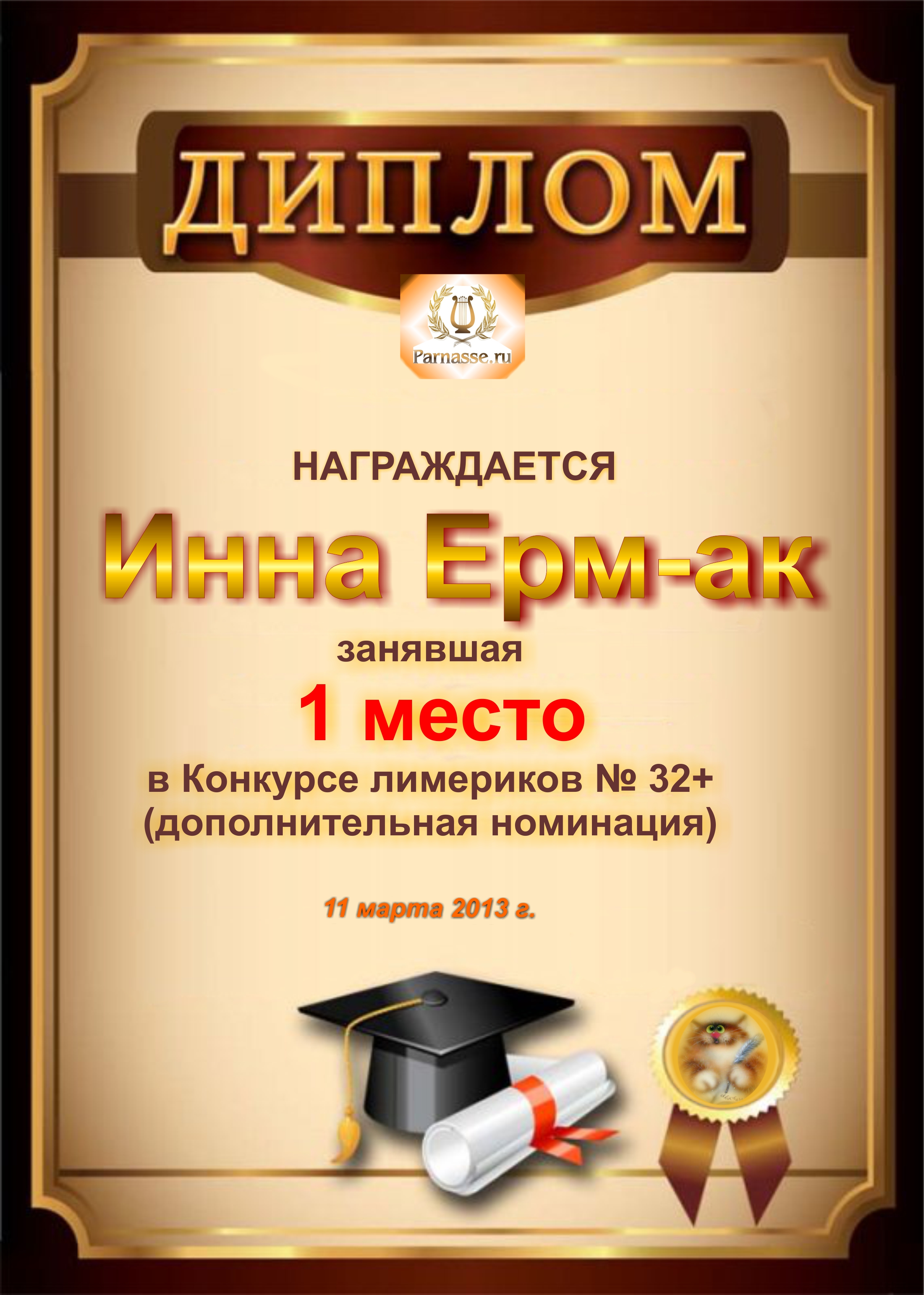 Диплом за победу в дополнительной номинации конкурса лимериков № 32+ (11.03.2013 г.)