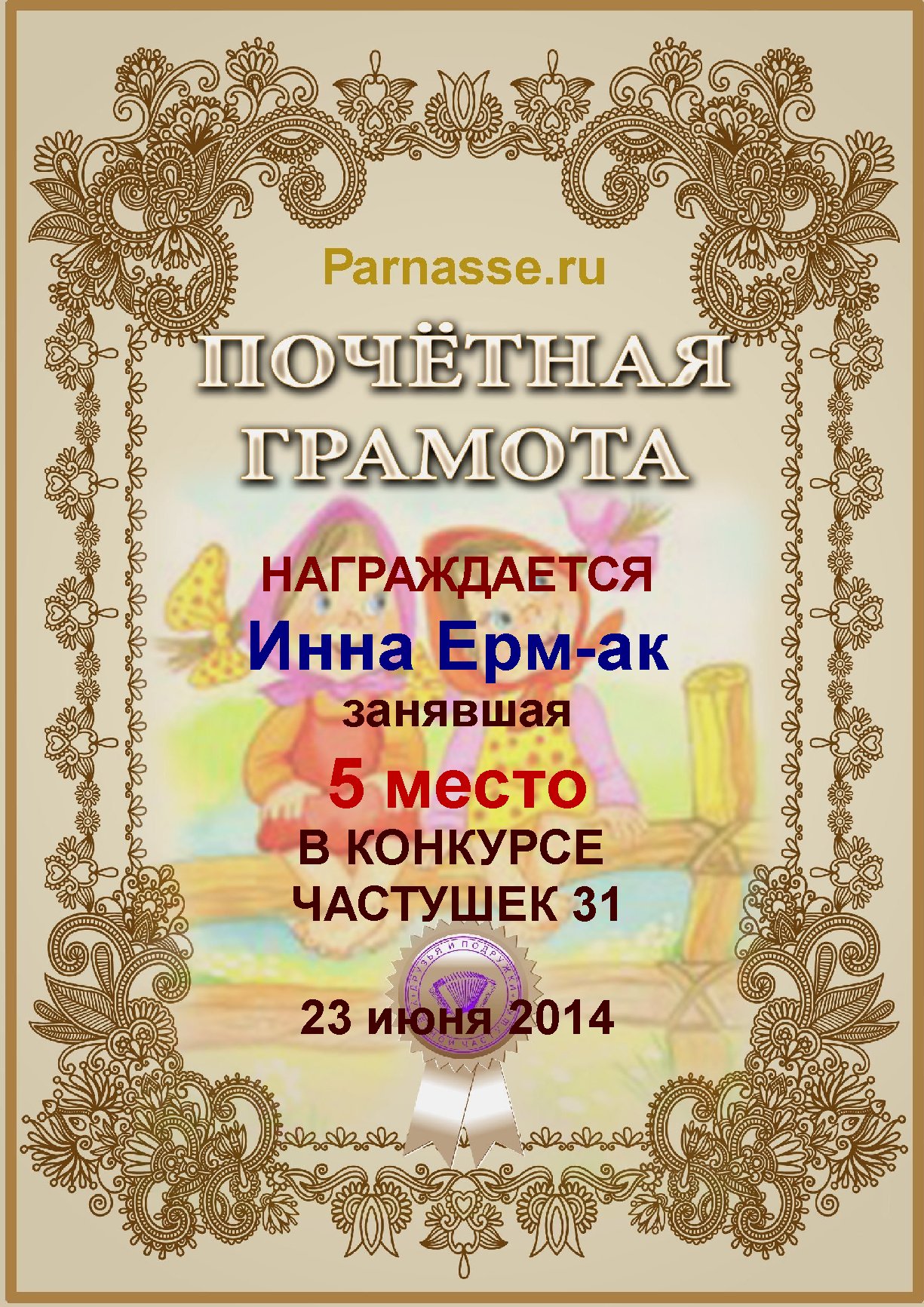 Похвальная грамота за 5 место и активное участие в конкурсе лимериков № 61+ (27.10.2014 г.)