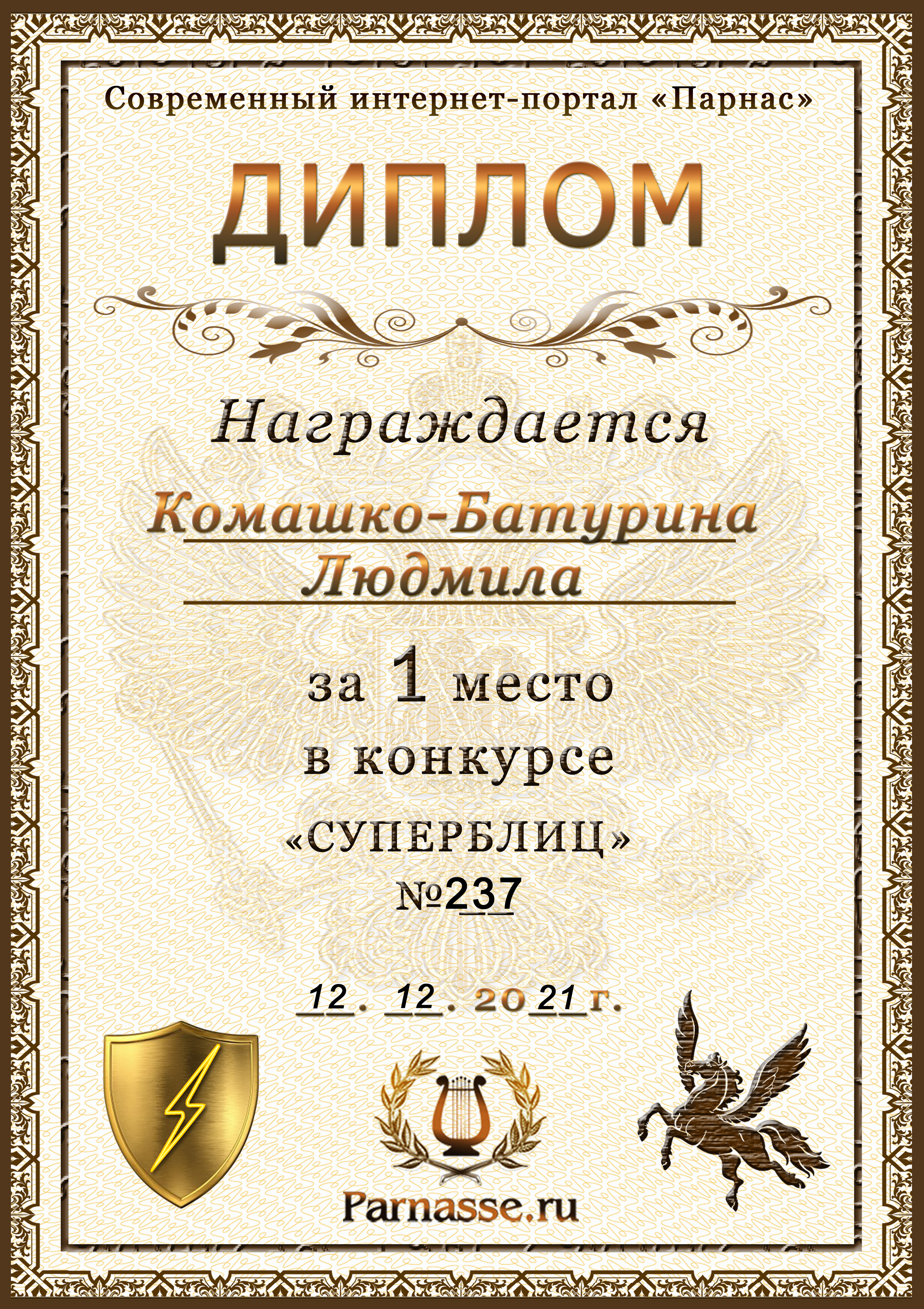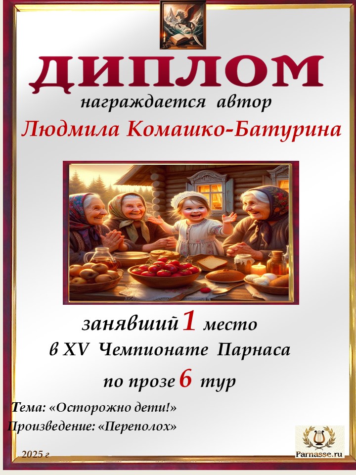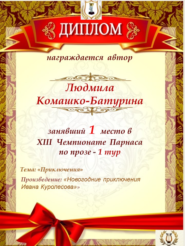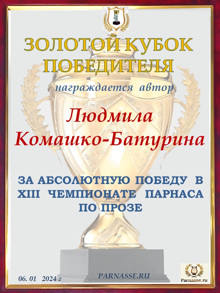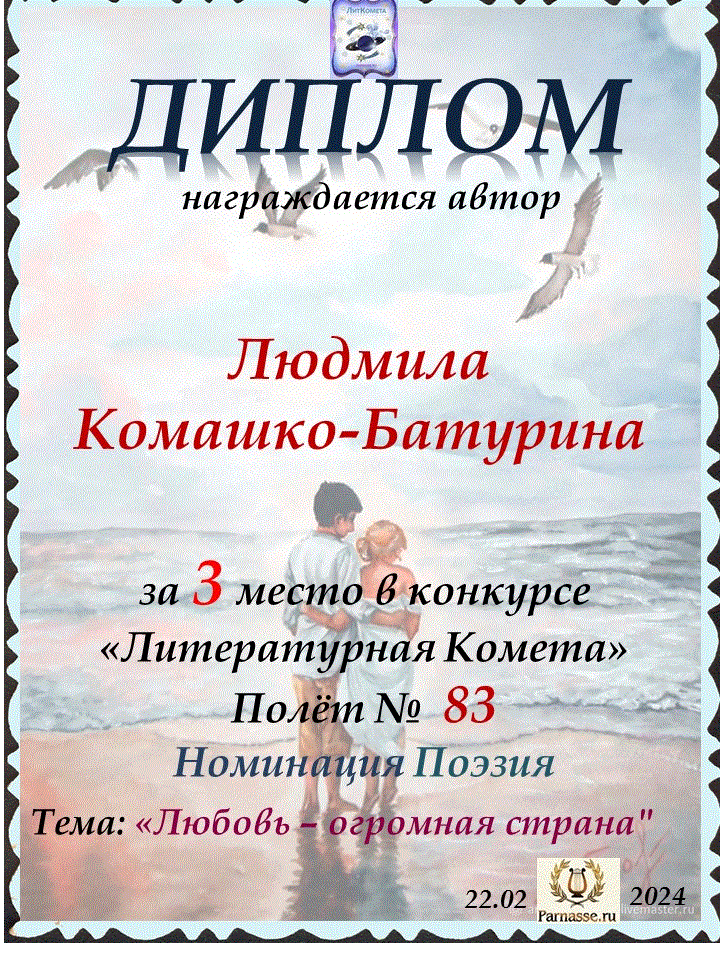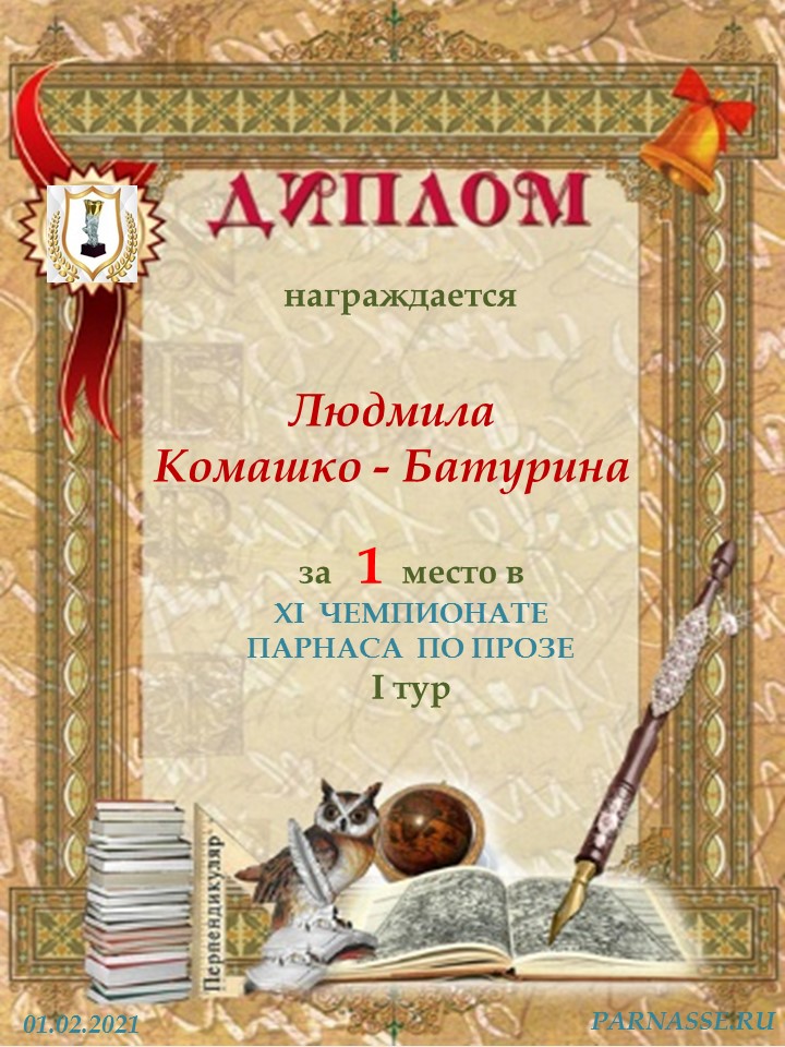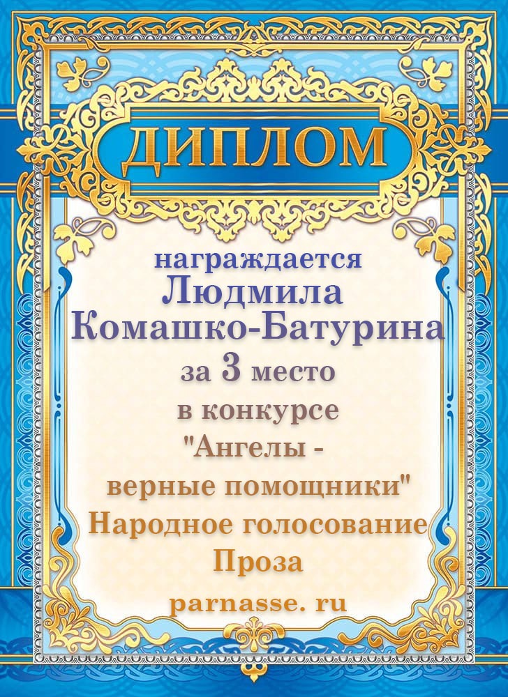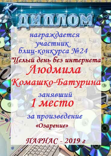Поздравляю с 1 местом в конкурсе "Литературная Комета - Полёт № 24" номинация Проза! Спасибо за творчество!