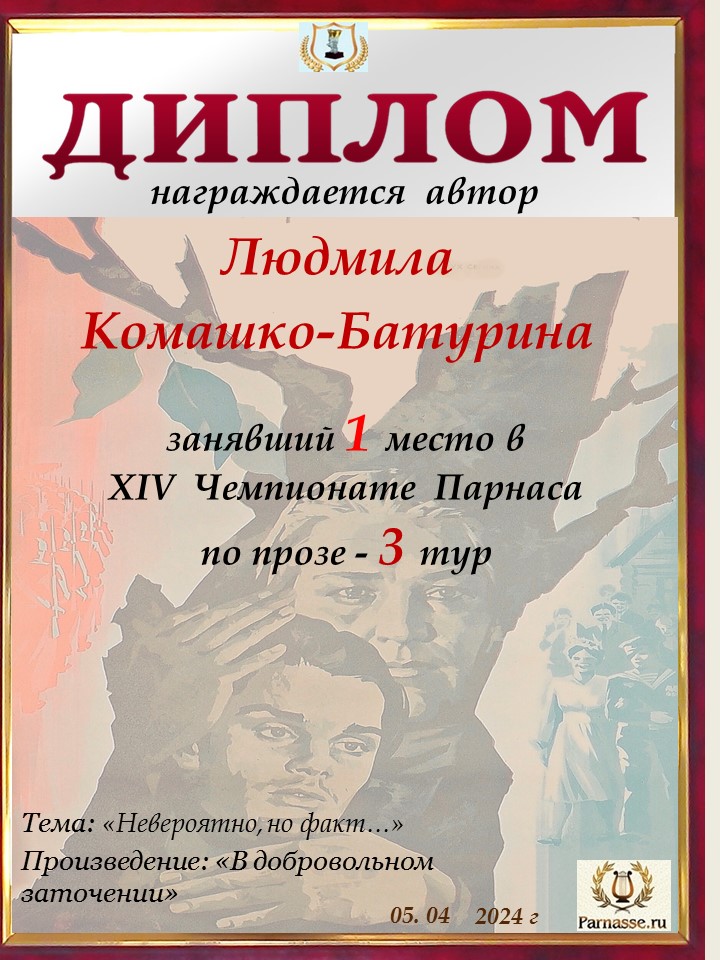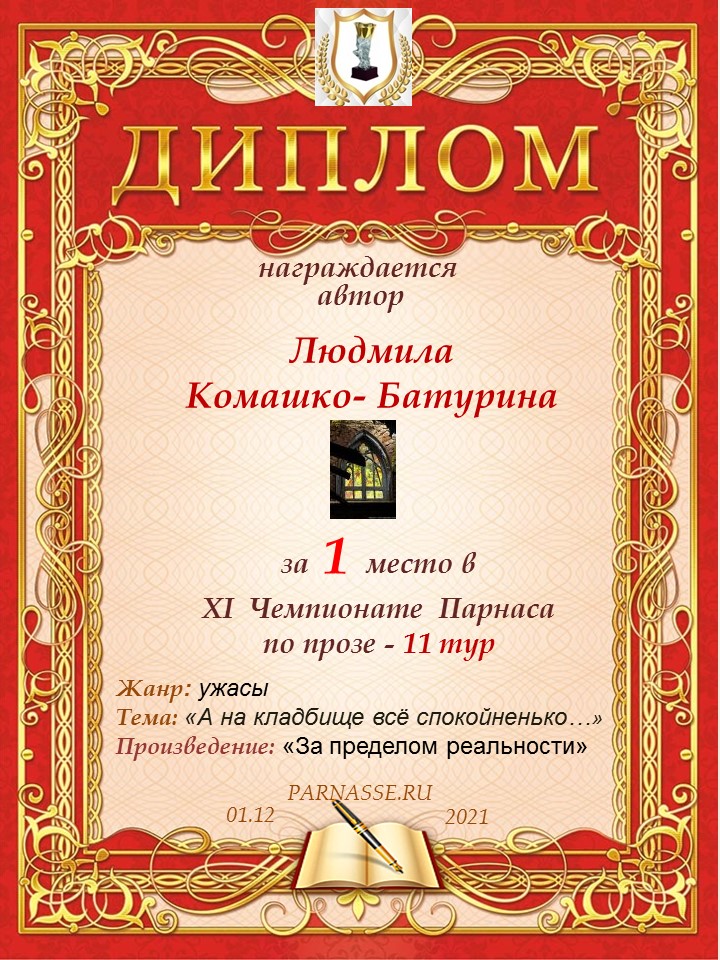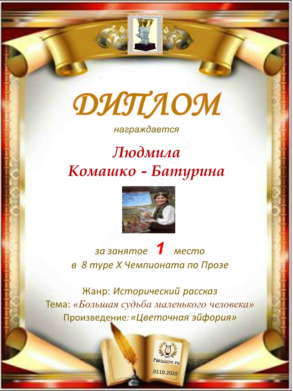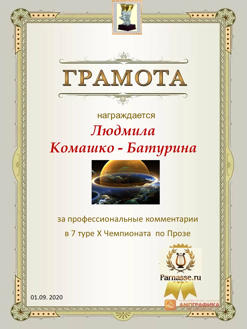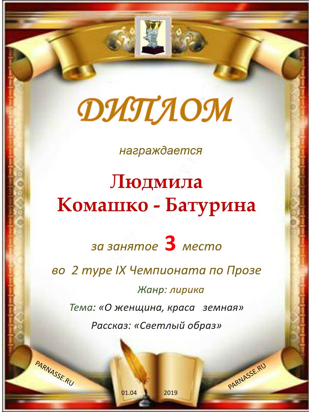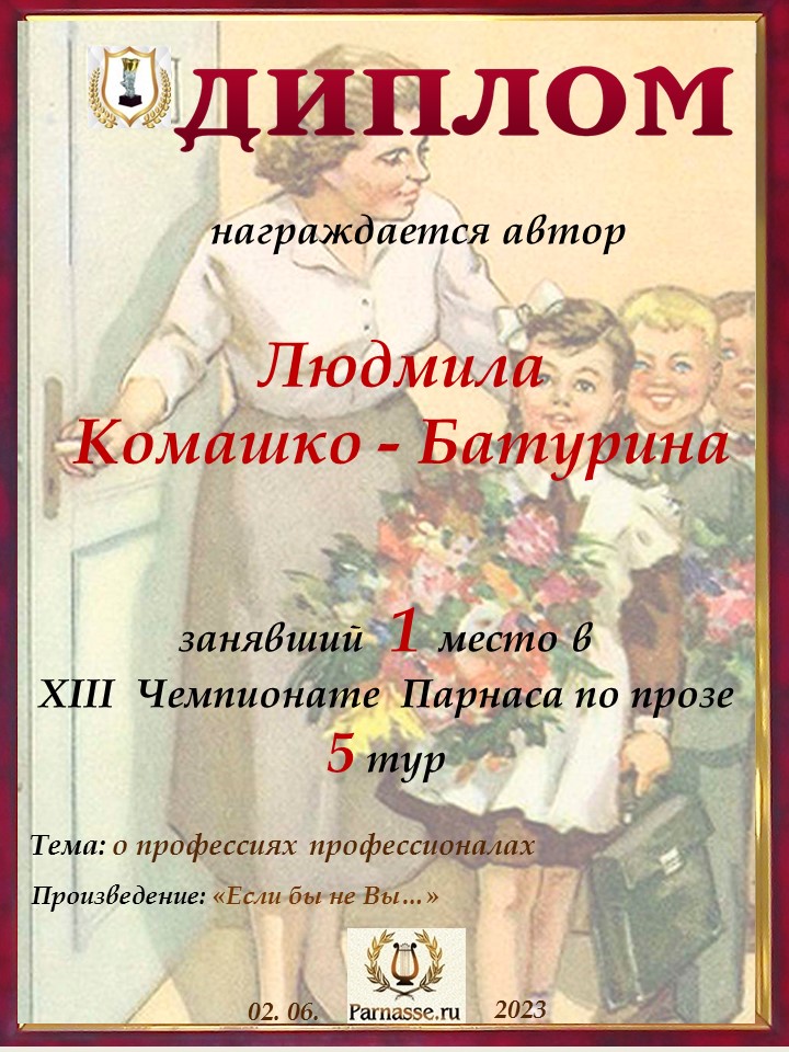 Поздравляю с 1 местом в конкурсе "Литературная Комета - Полёт № 24" номинация Проза! Спасибо за творчество!