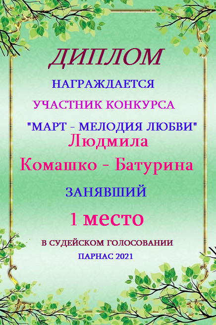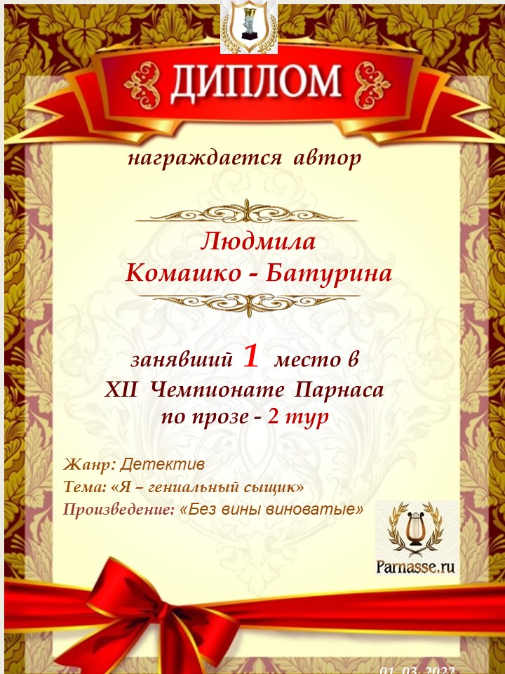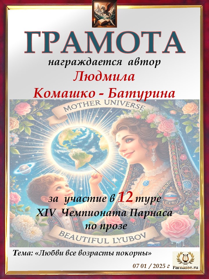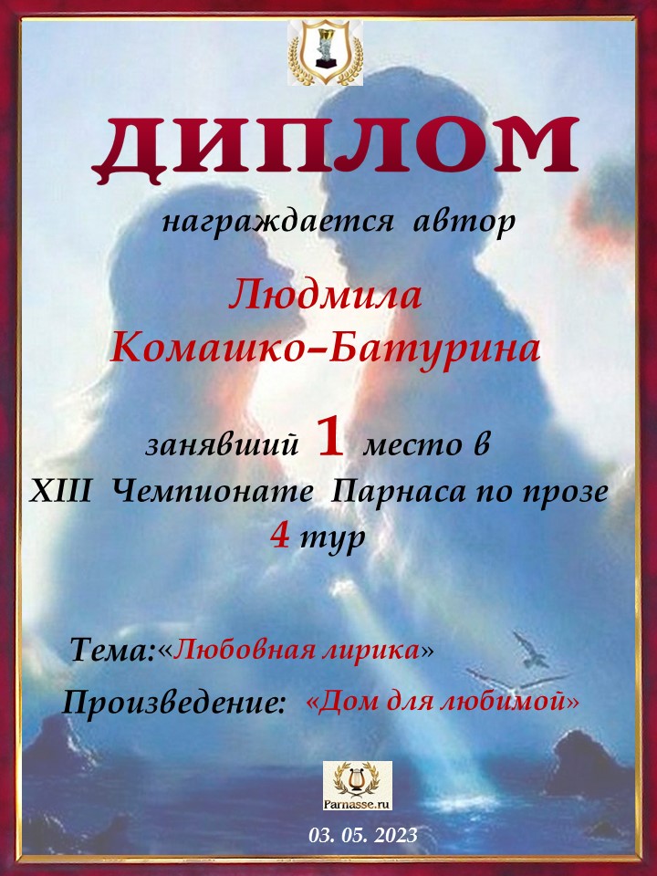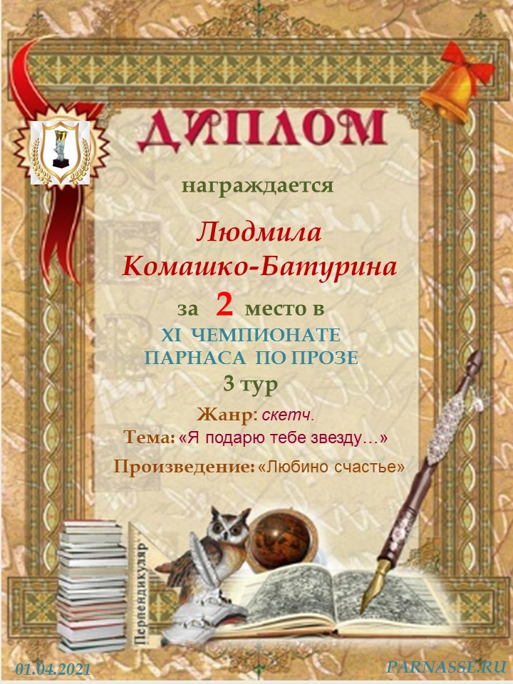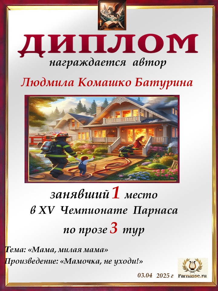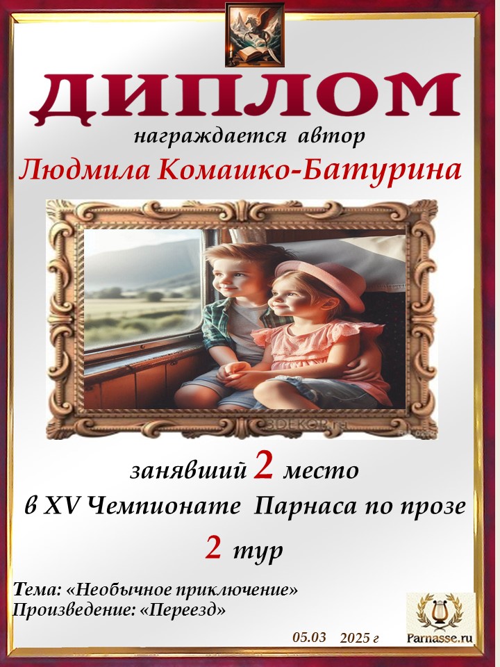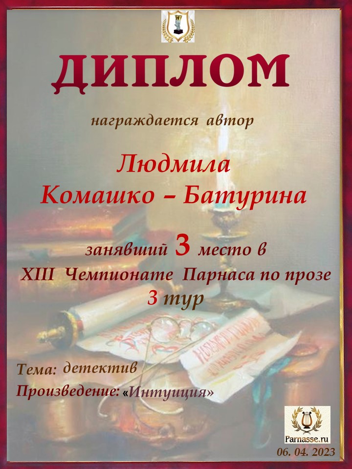 Поздравляю с 1 местом в конкурсе "Литературная Комета - Полёт № 24" номинация Проза! Спасибо за творчество!