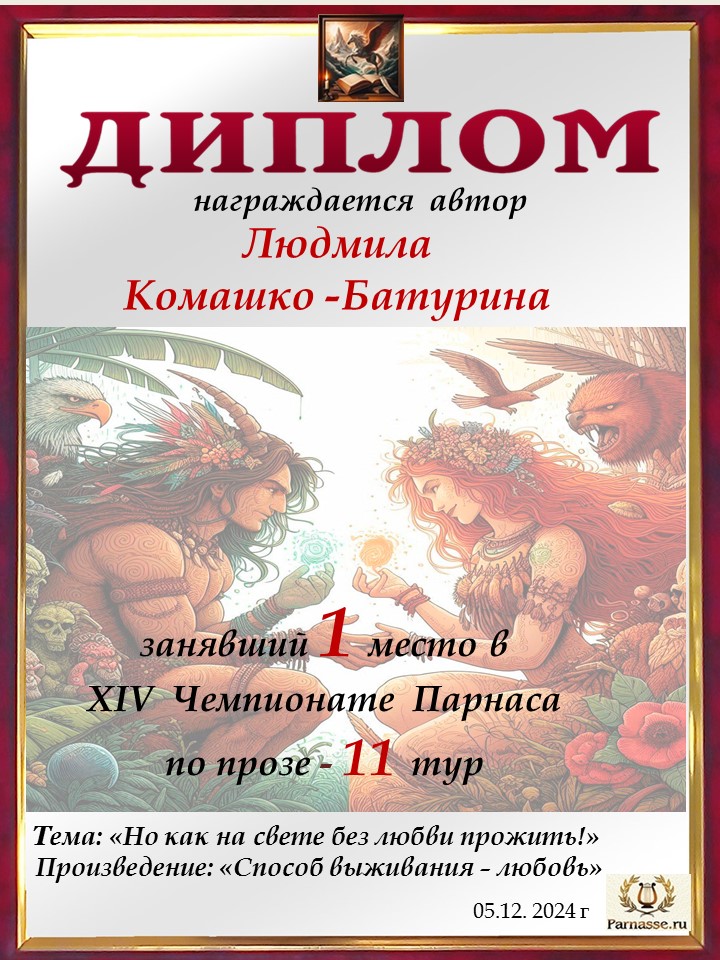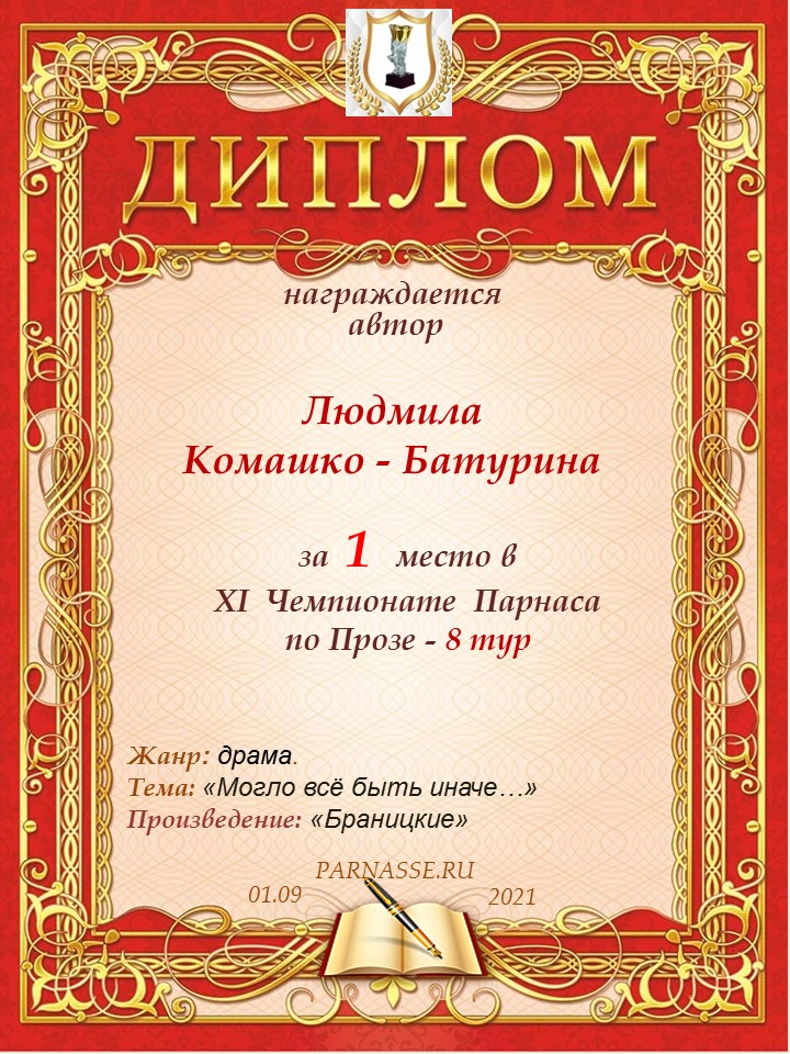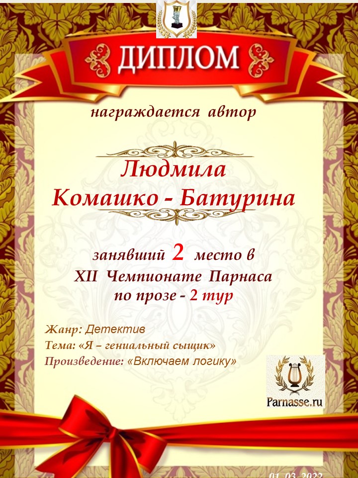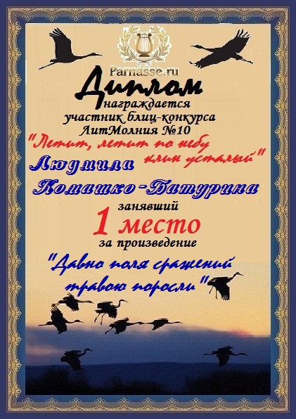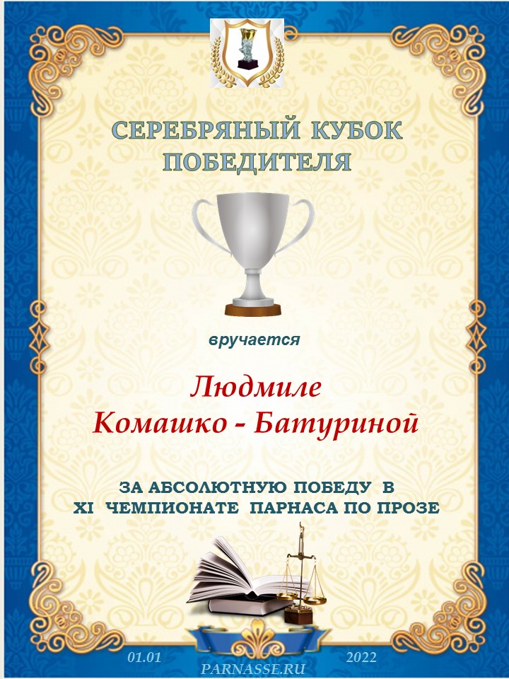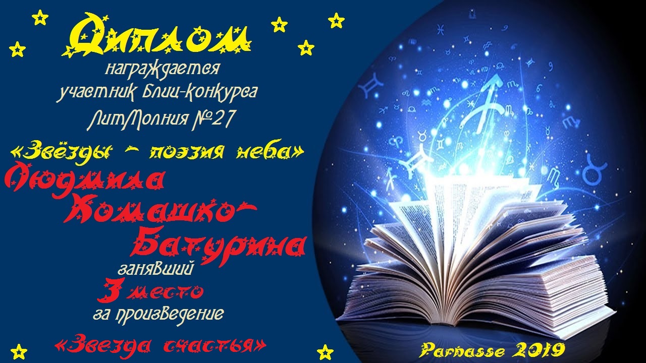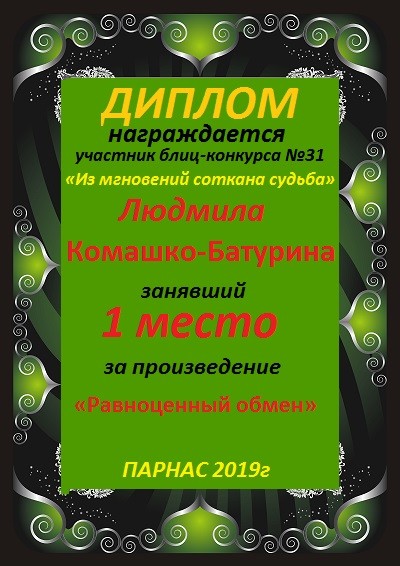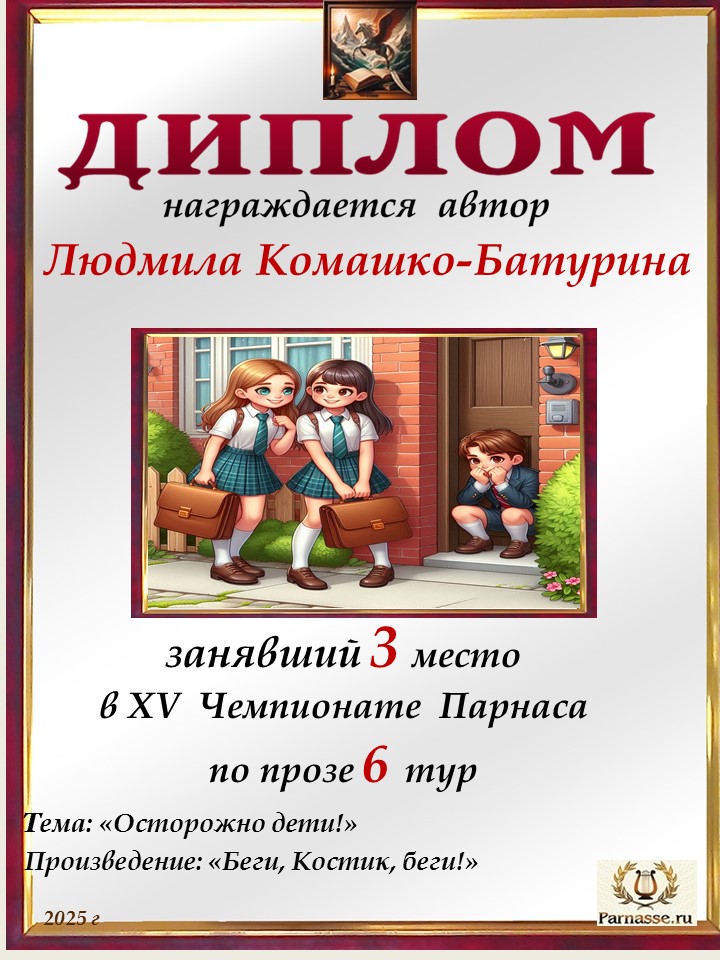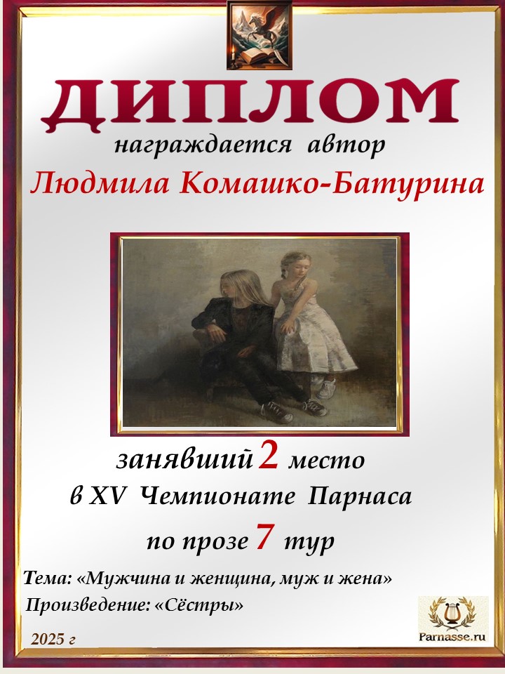 Поздравляю с 1 местом в конкурсе "Литературная Комета - Полёт № 24" номинация Проза! Спасибо за творчество!