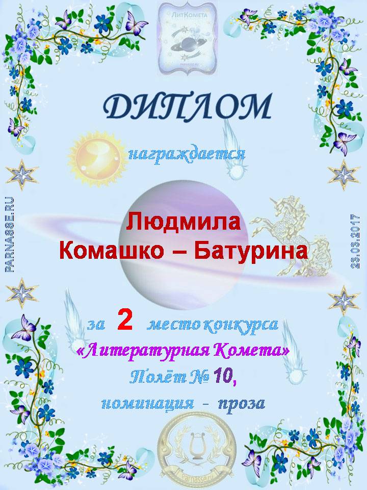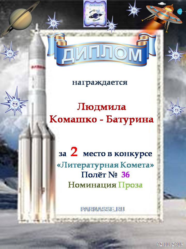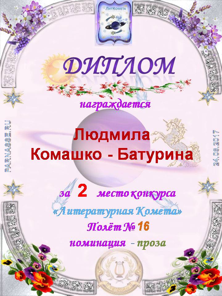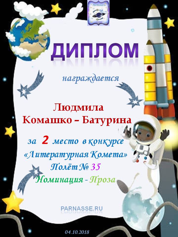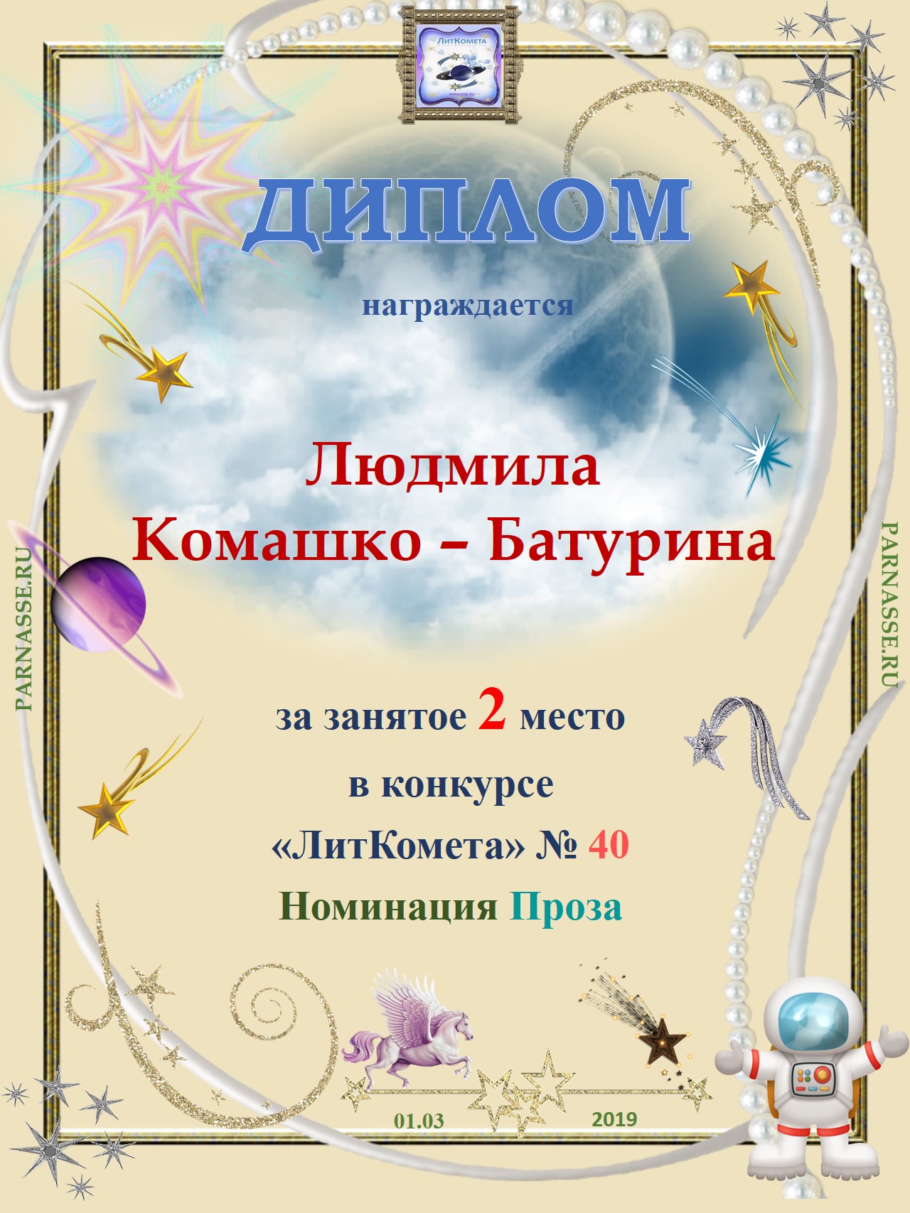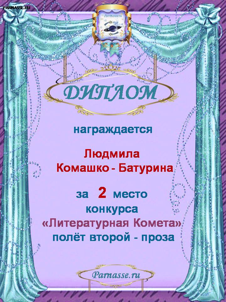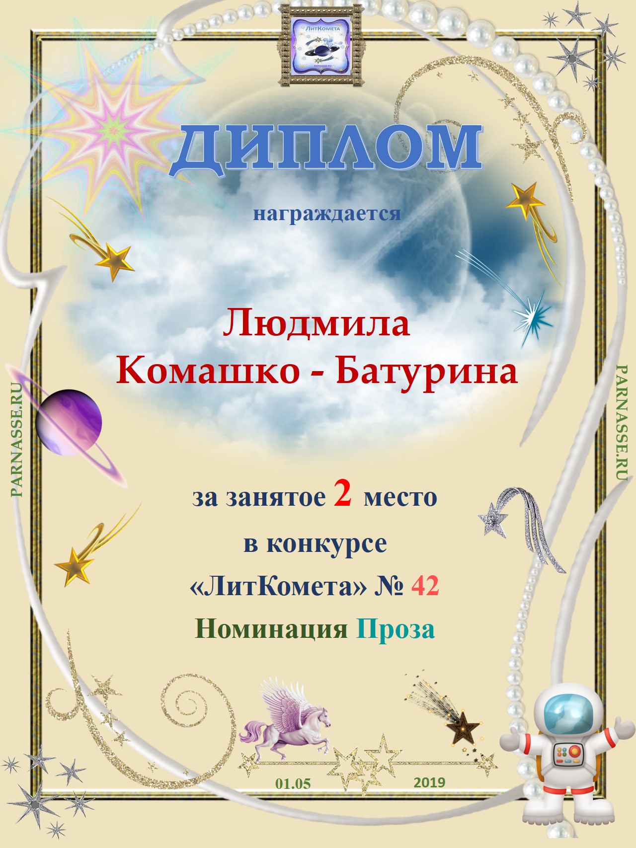 Диплом за 2 место в конкурсе "ЛитКомета"- Полёт № 13 - проза