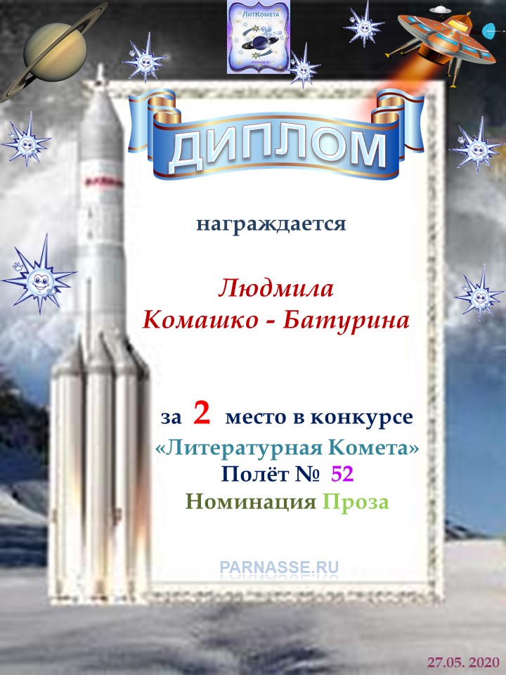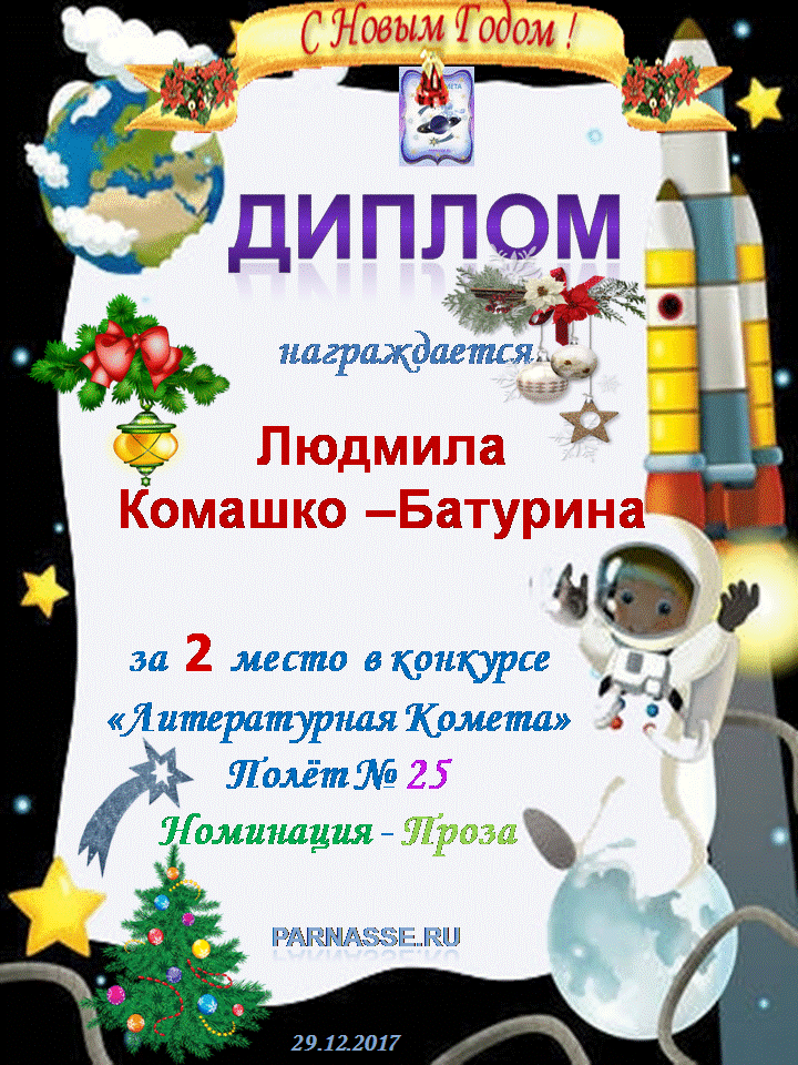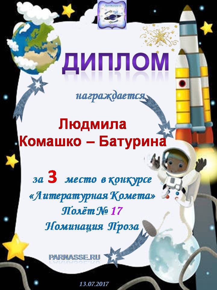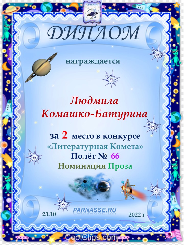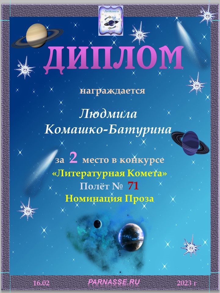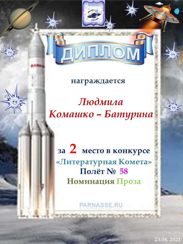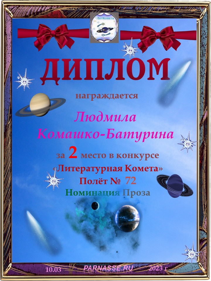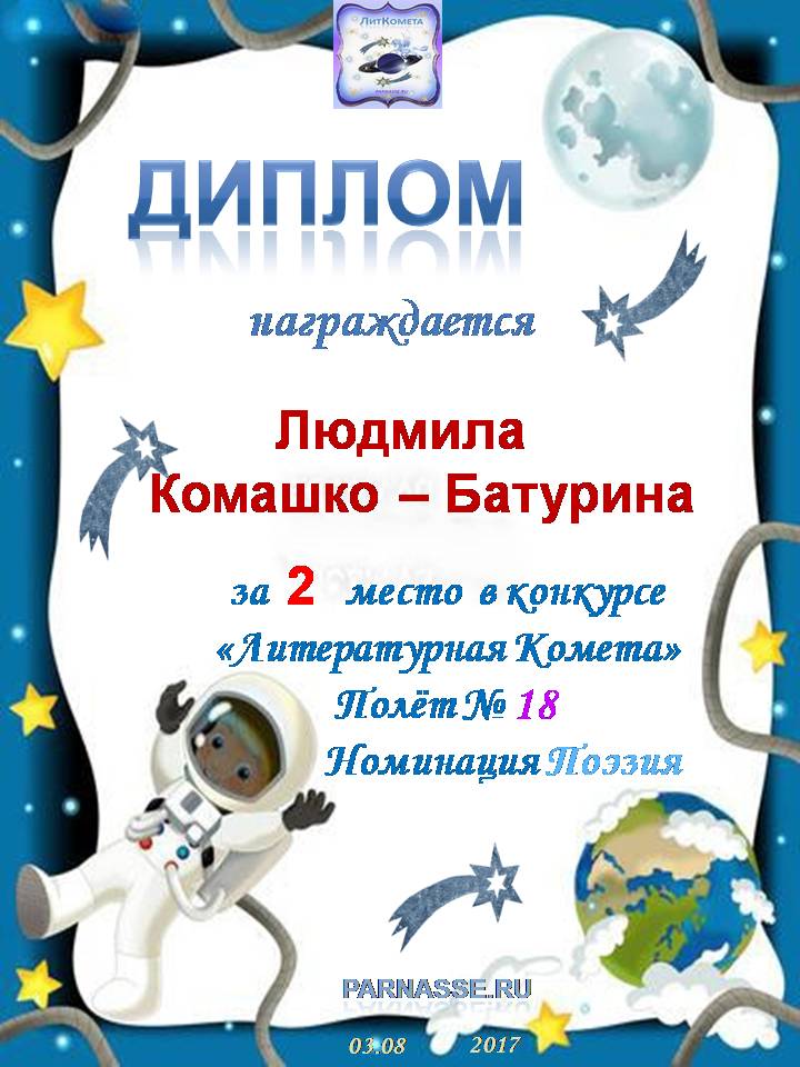 Диплом за 2 место в конкурсе "ЛитКомета"- Полёт № 13 - проза