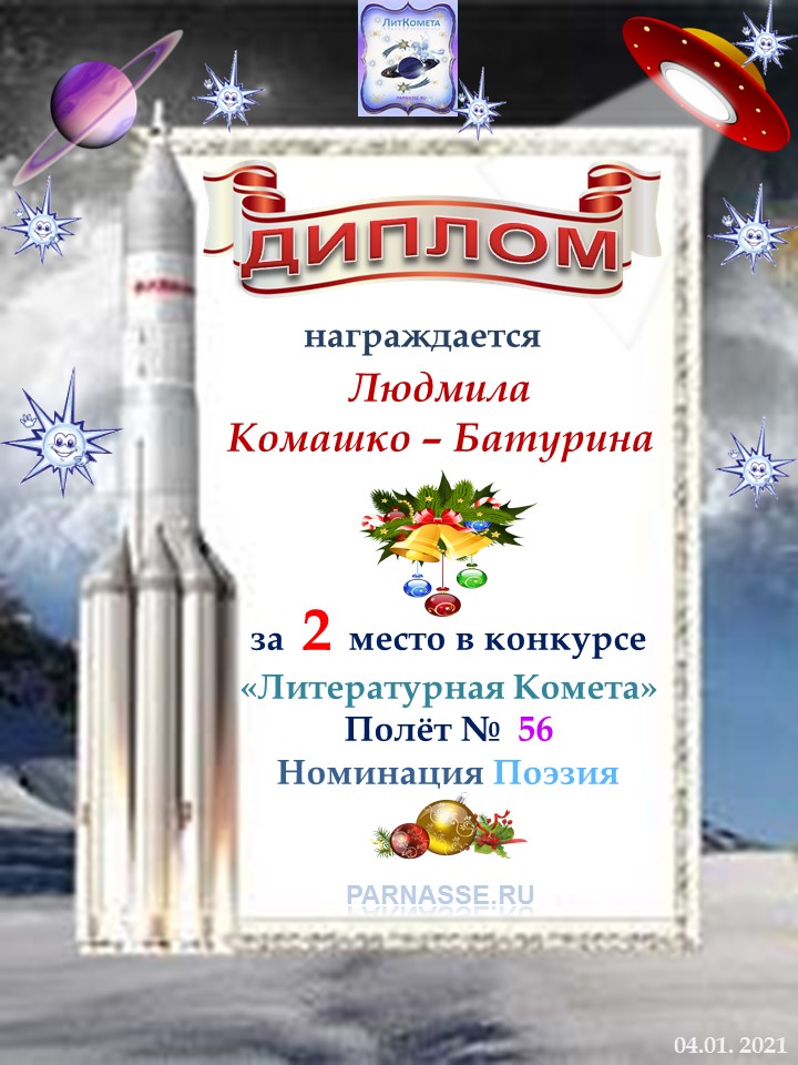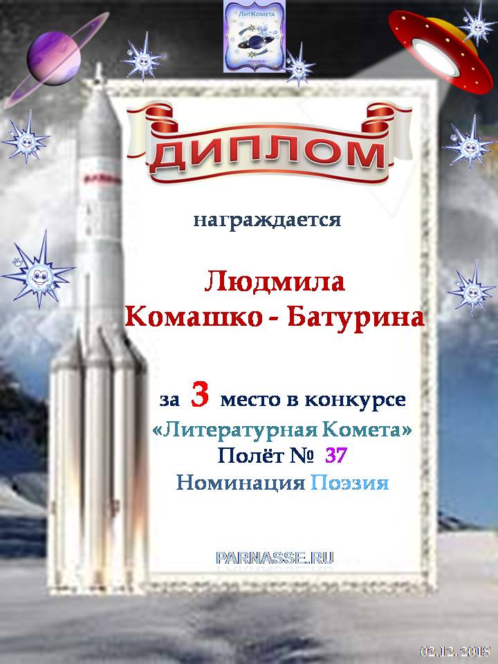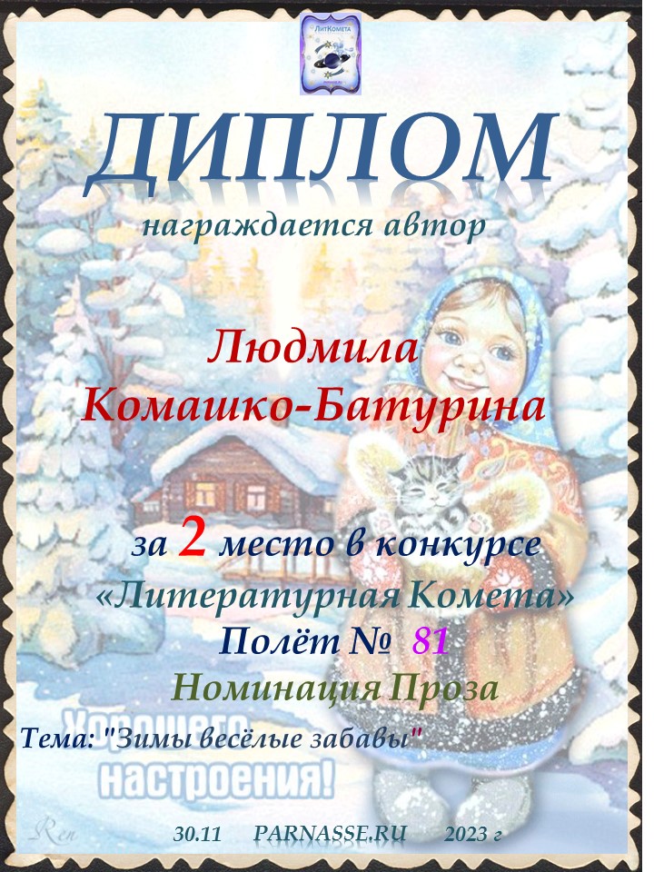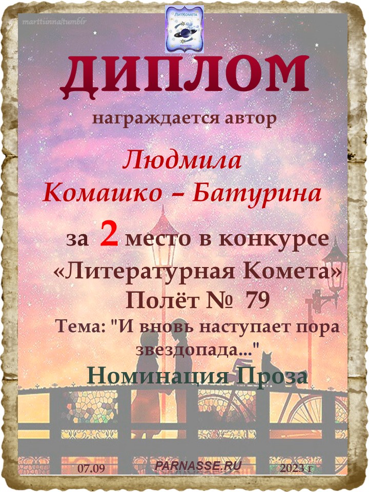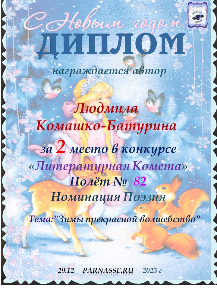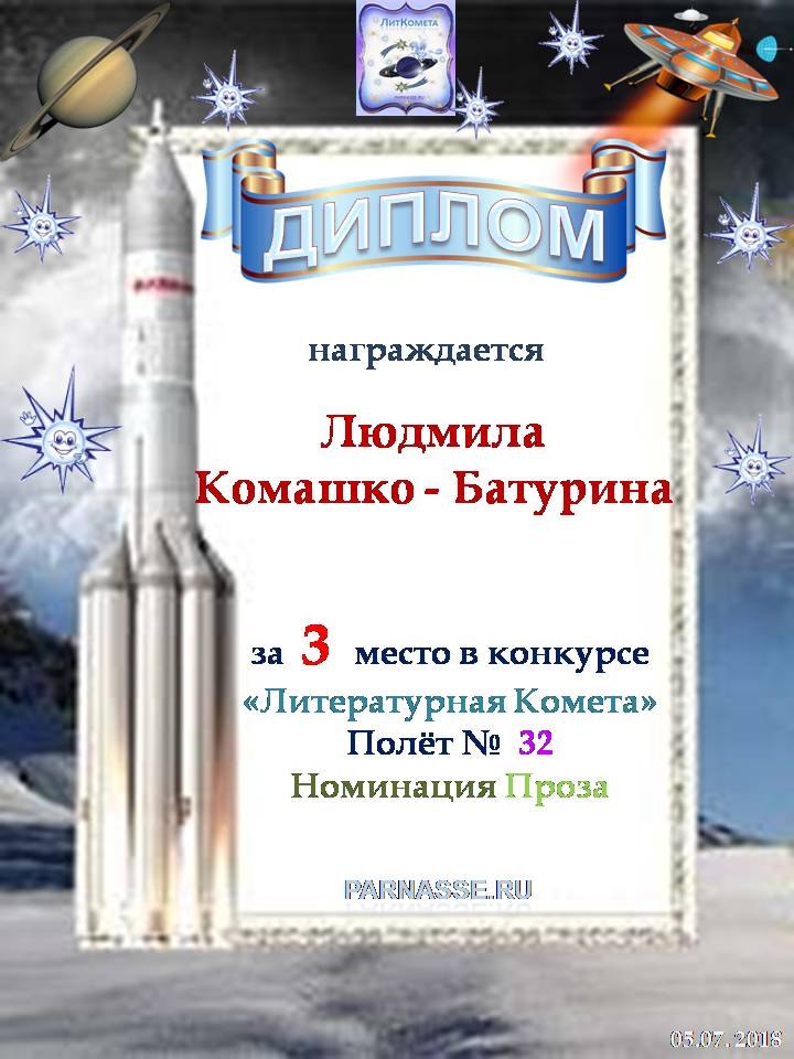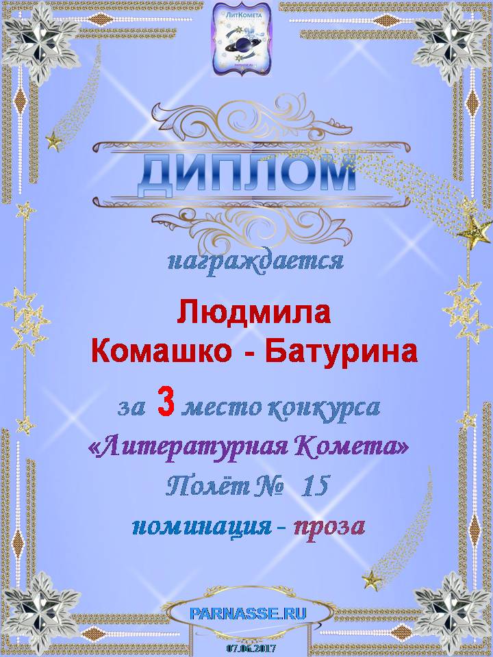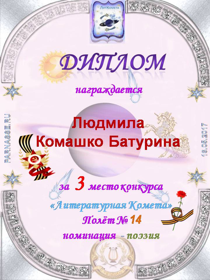 Диплом за 2 место в конкурсе "ЛитКомета"- Полёт № 13 - проза