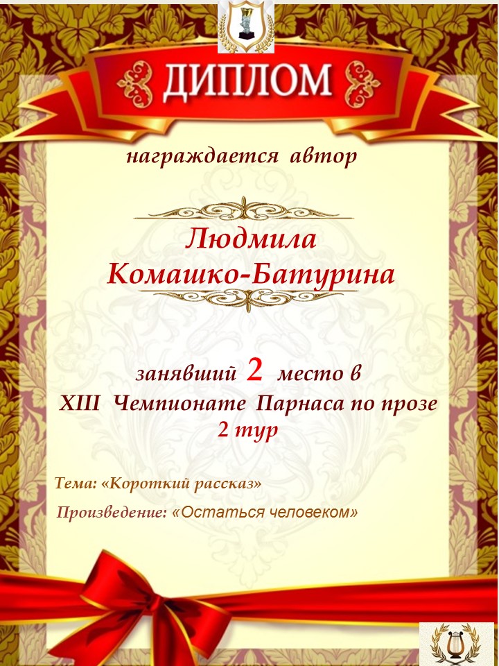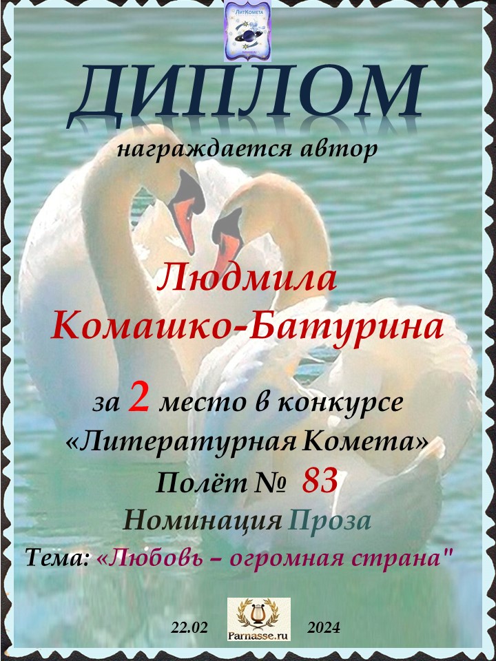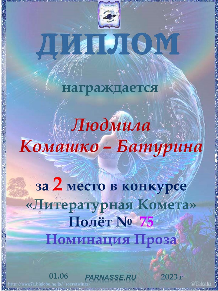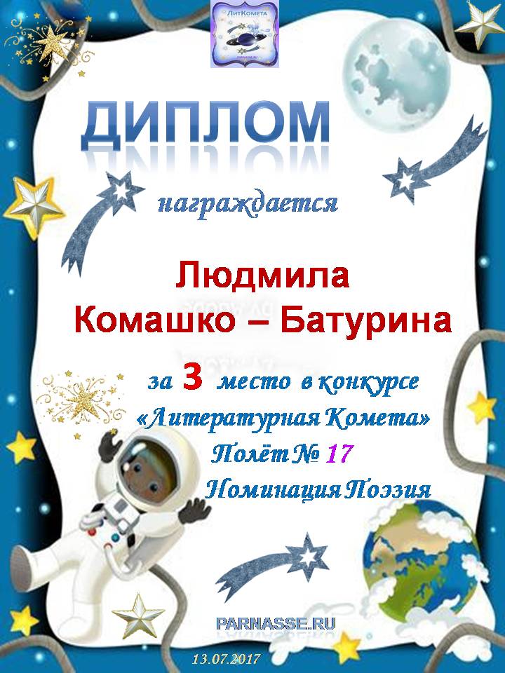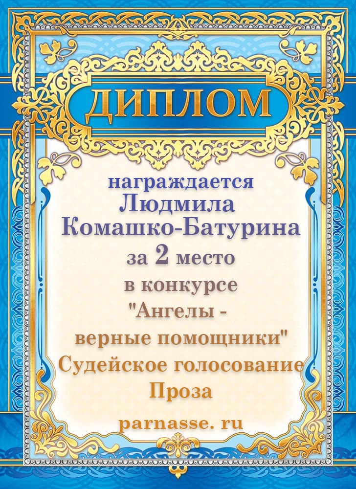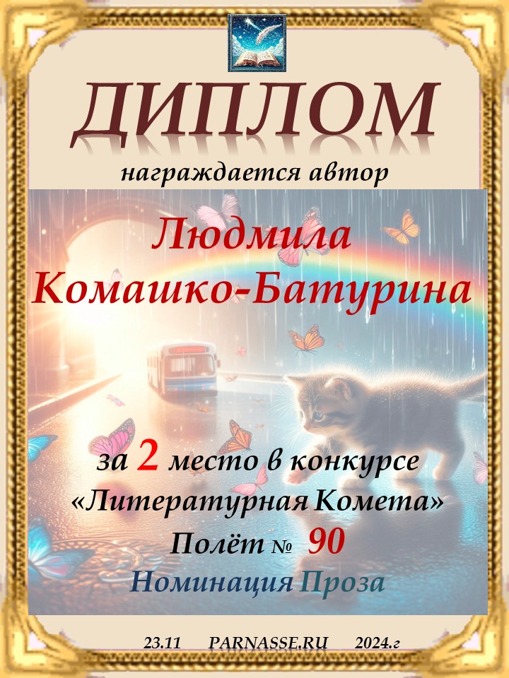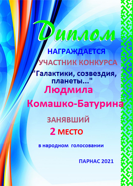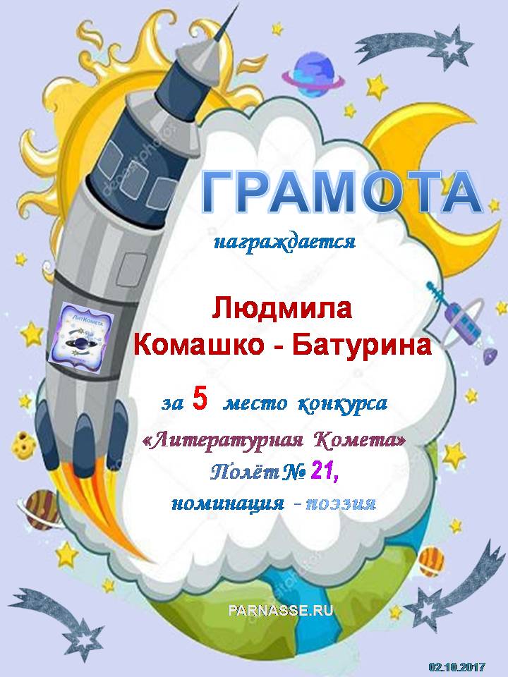 Диплом за 2 место в конкурсе "ЛитКомета"- Полёт № 13 - проза