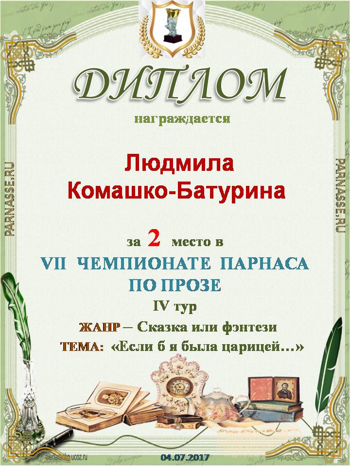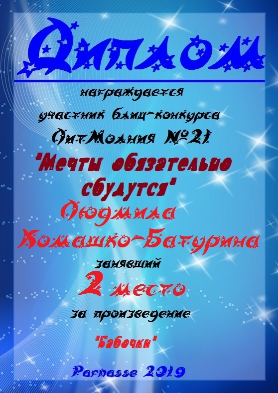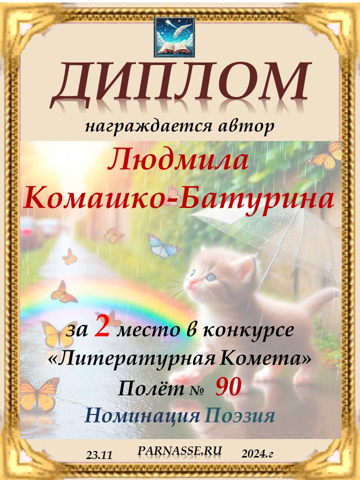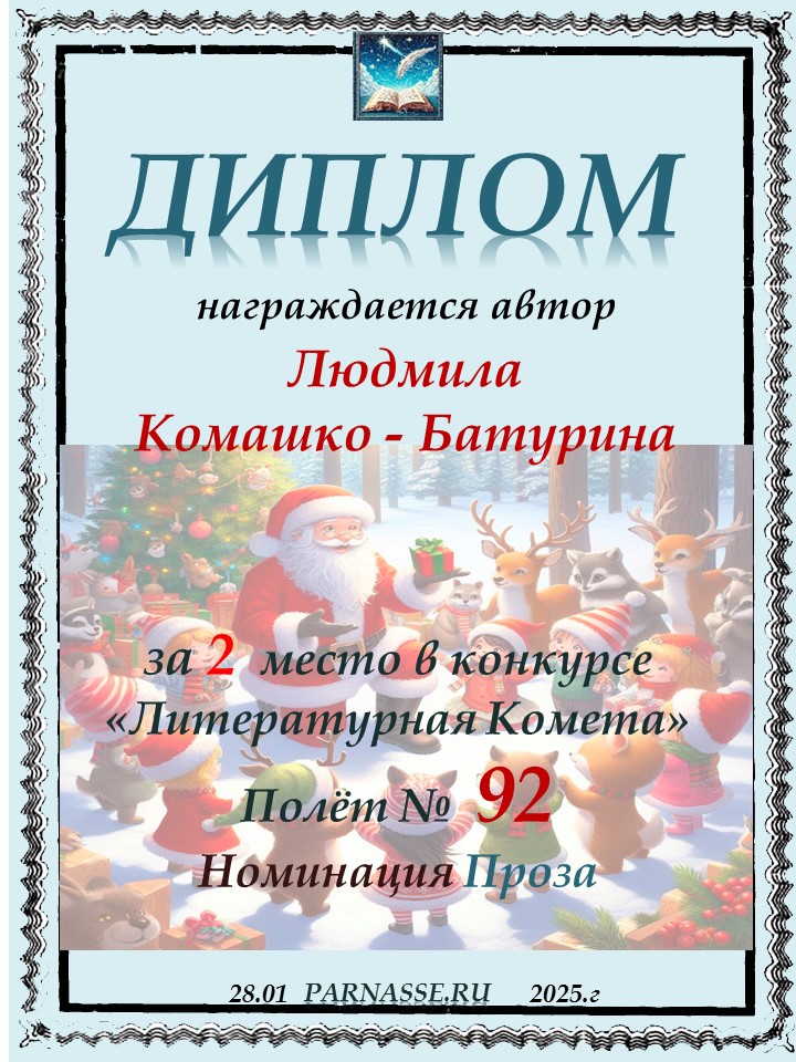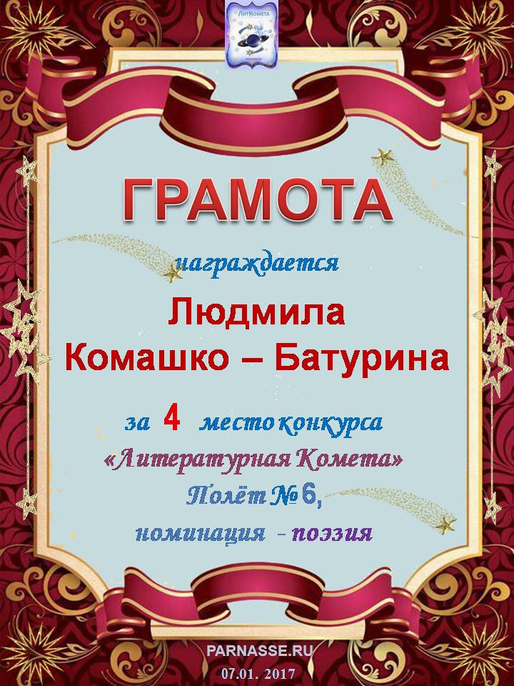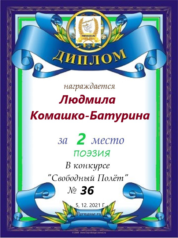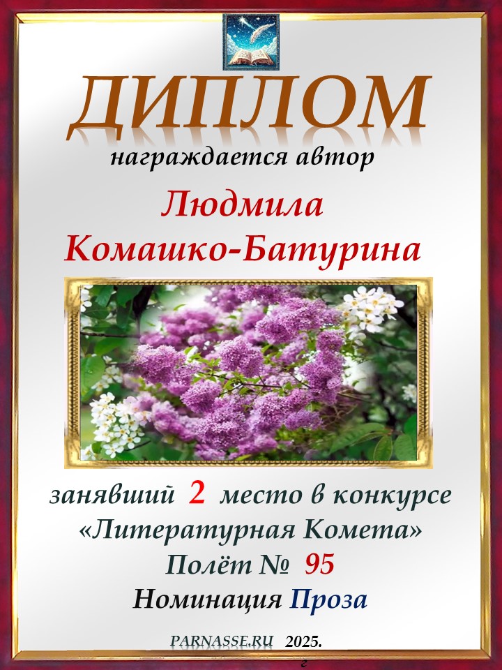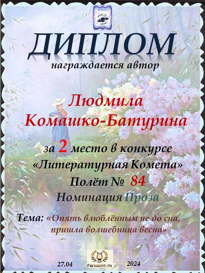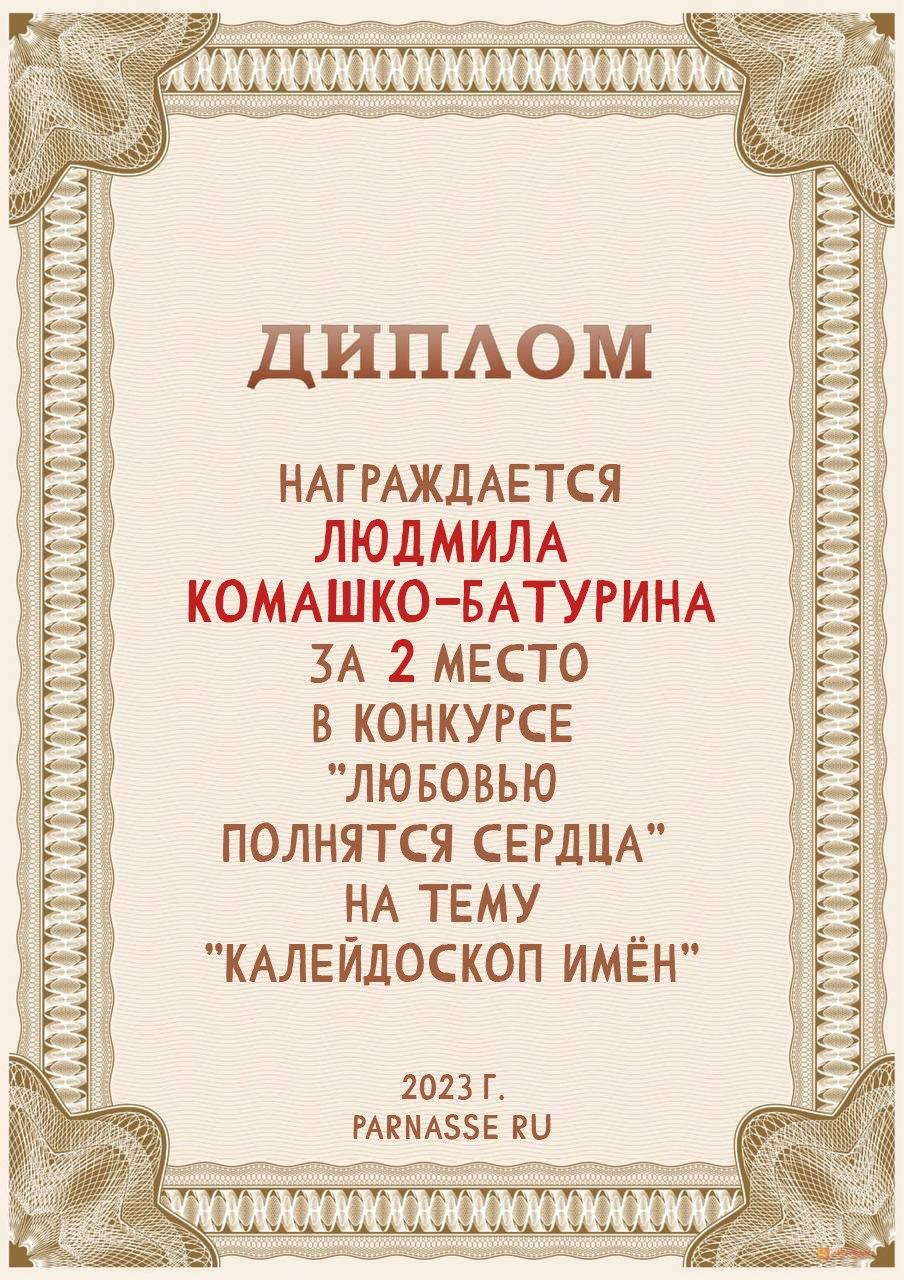 Диплом за 2 место в конкурсе "ЛитКомета"- Полёт № 13 - проза