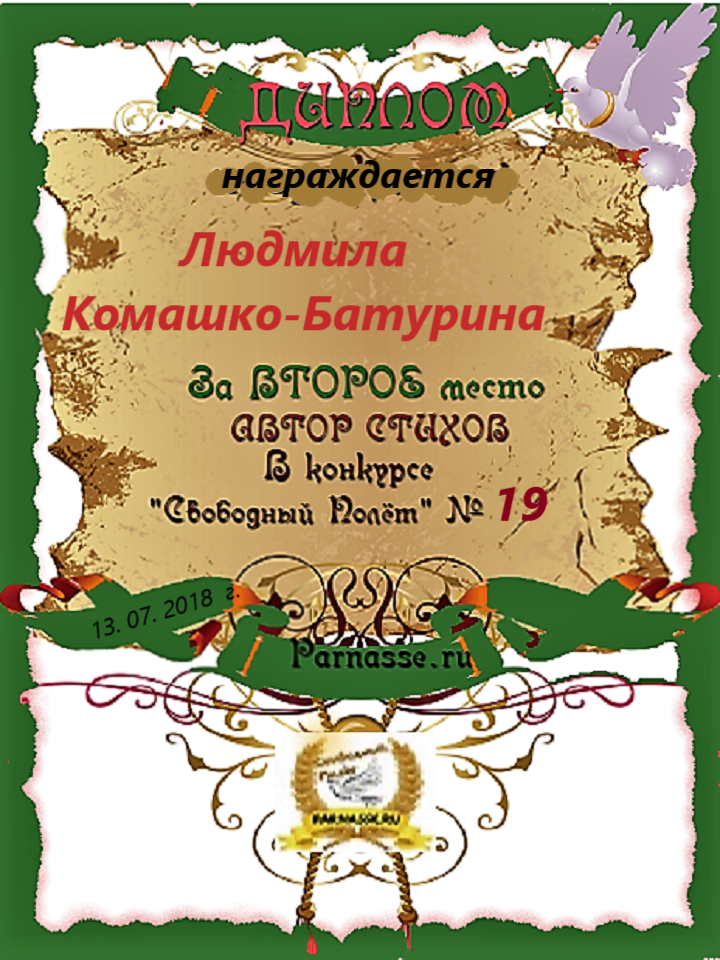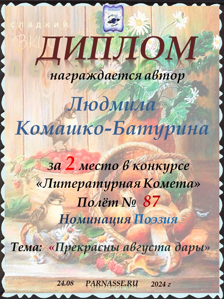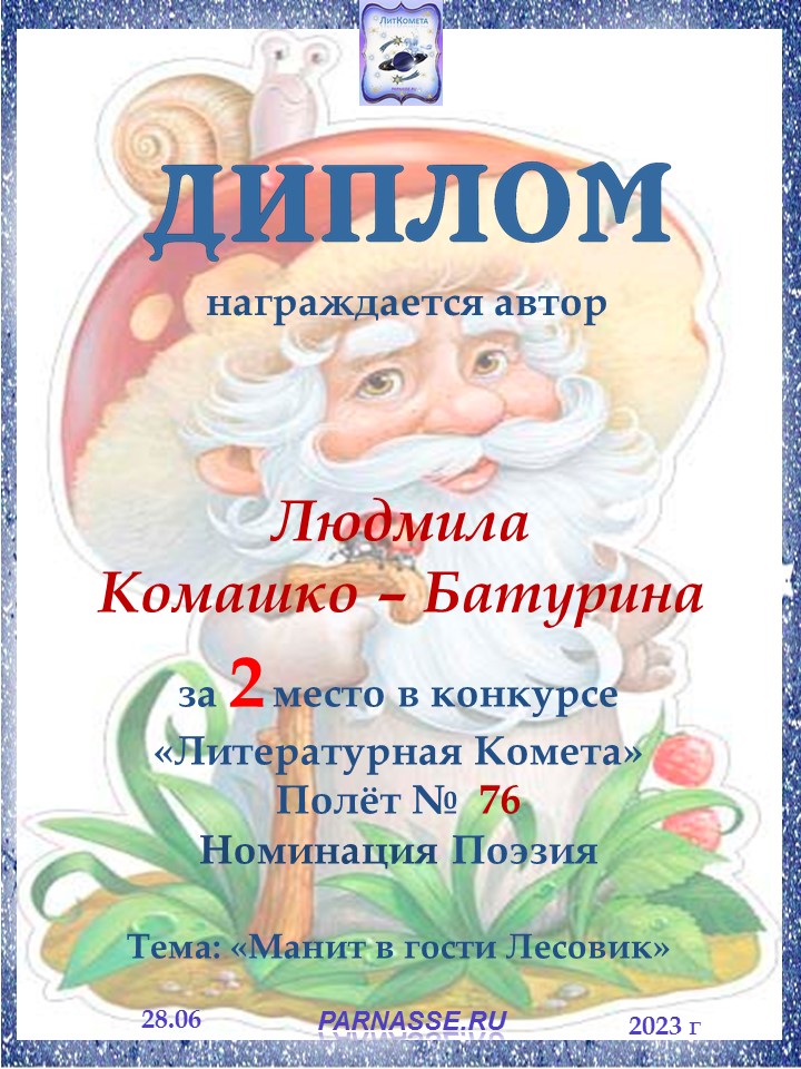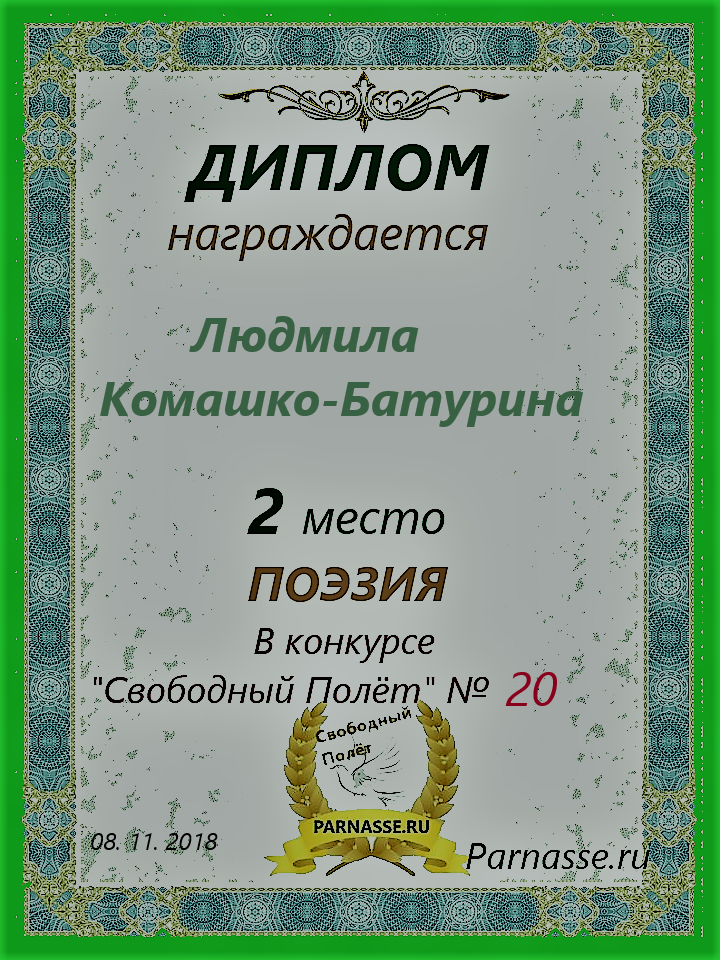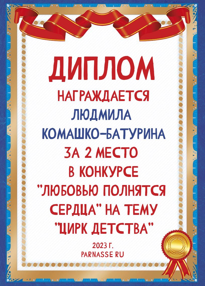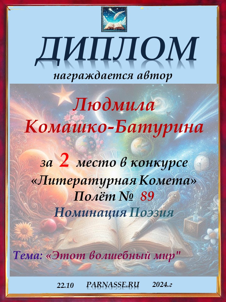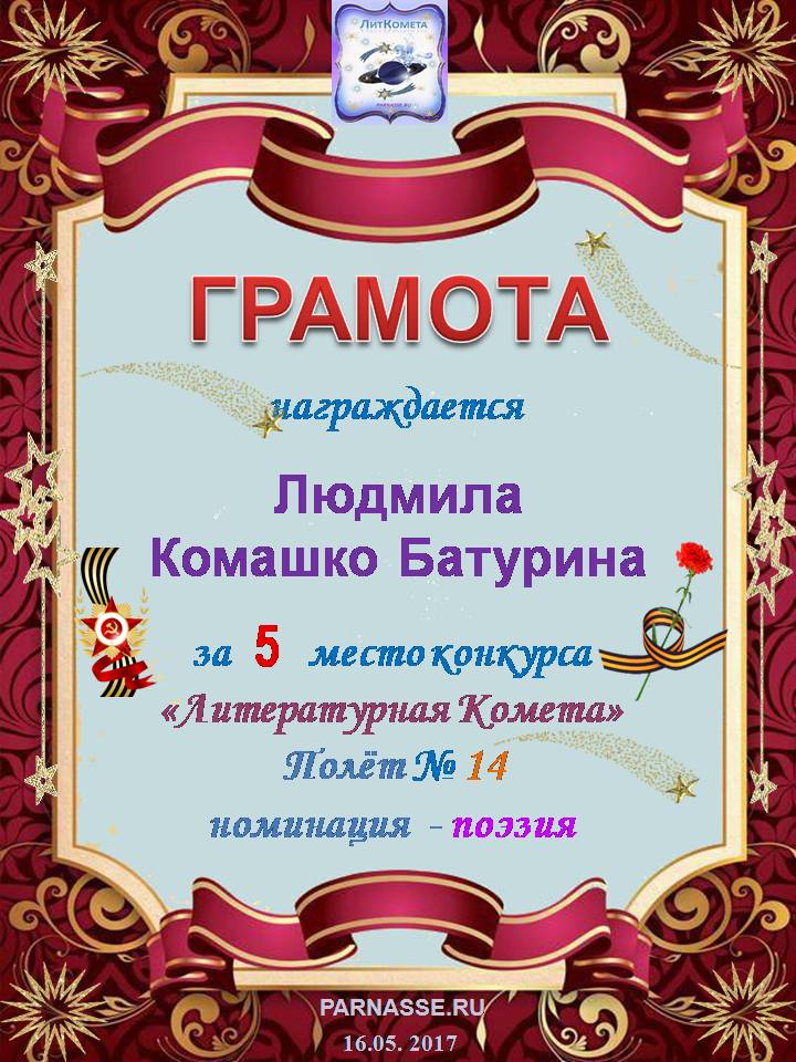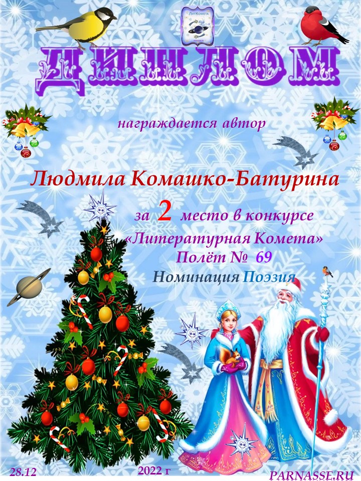 Диплом за 2 место в конкурсе "ЛитКомета"- Полёт № 13 - проза