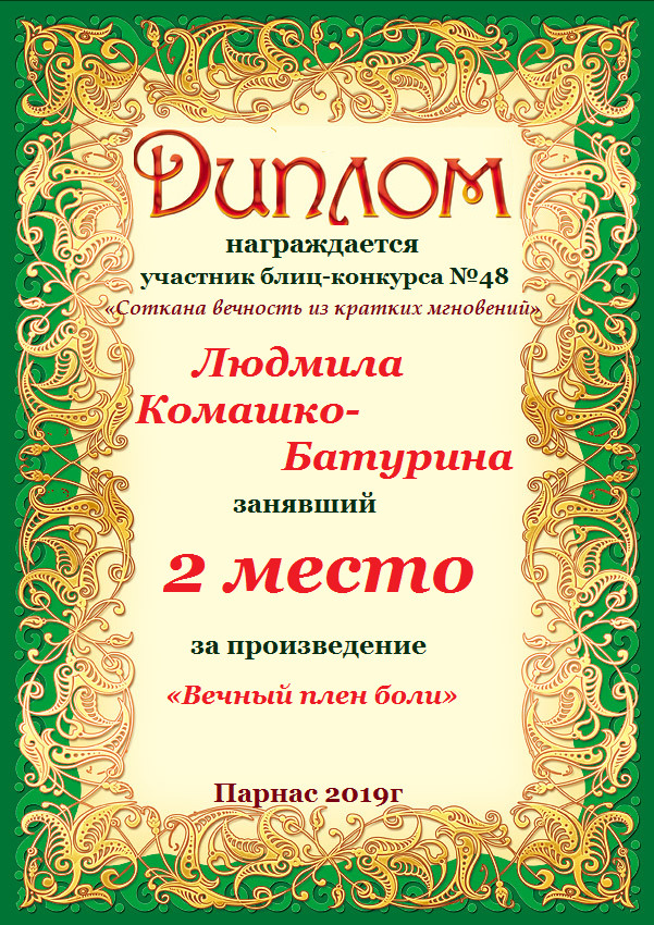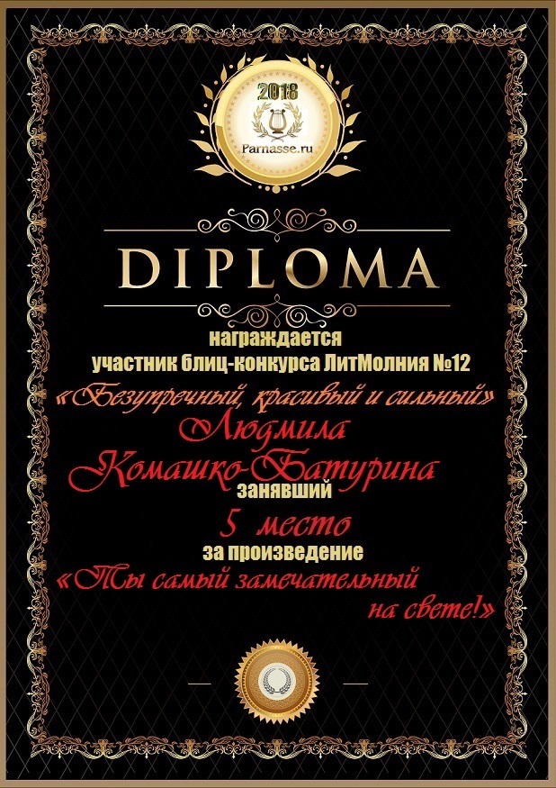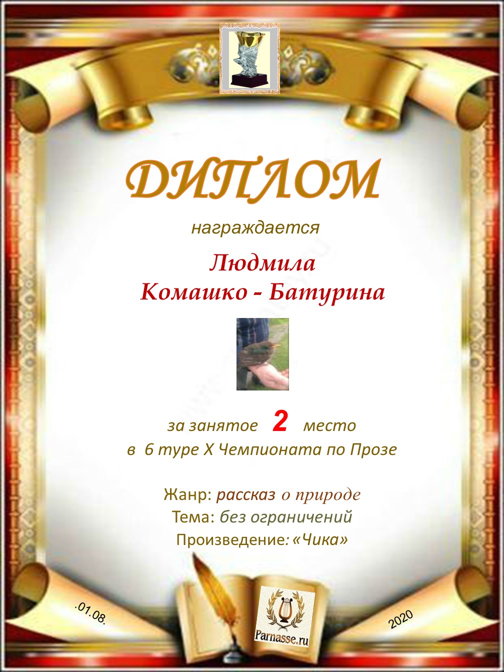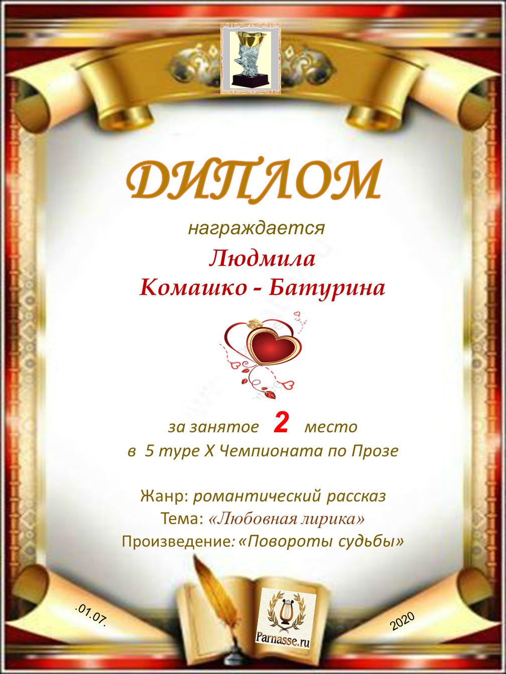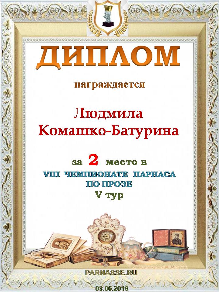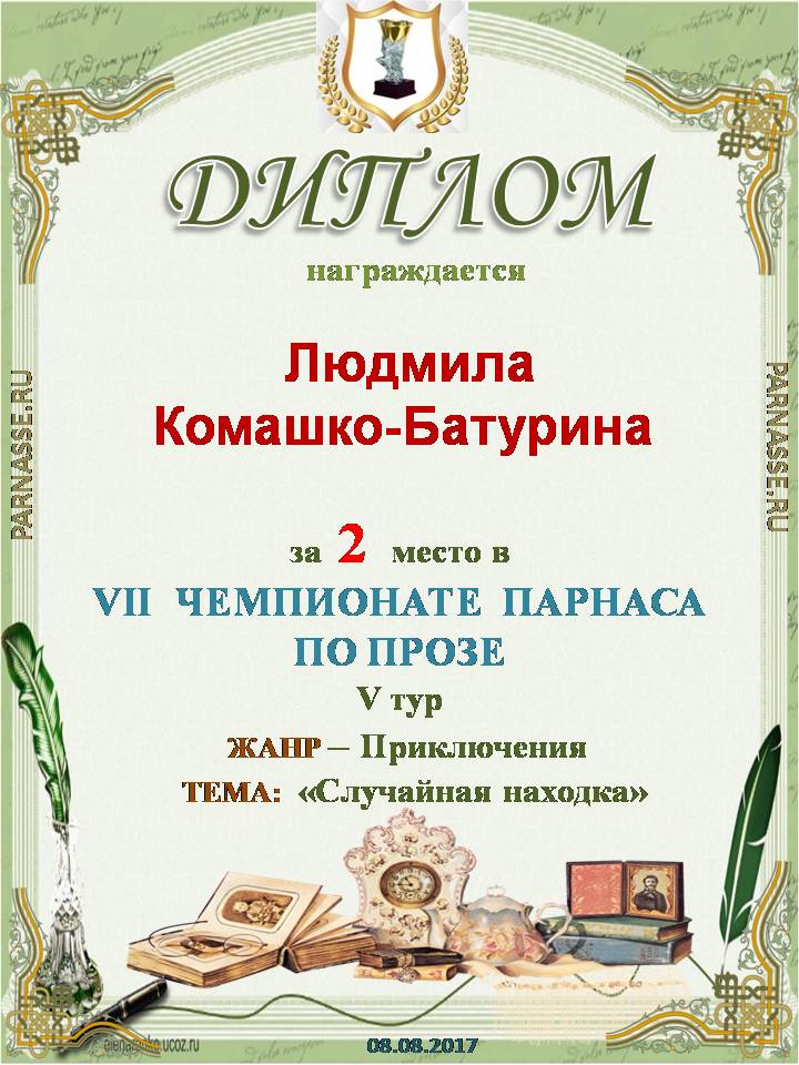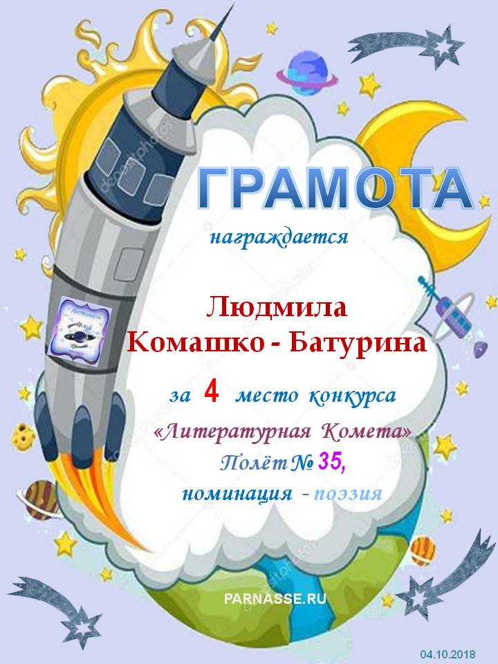 Диплом за 2 место в конкурсе "ЛитКомета"- Полёт № 13 - проза