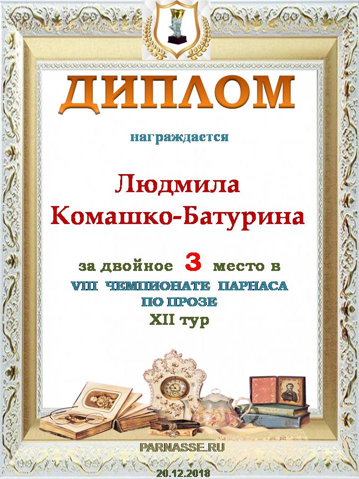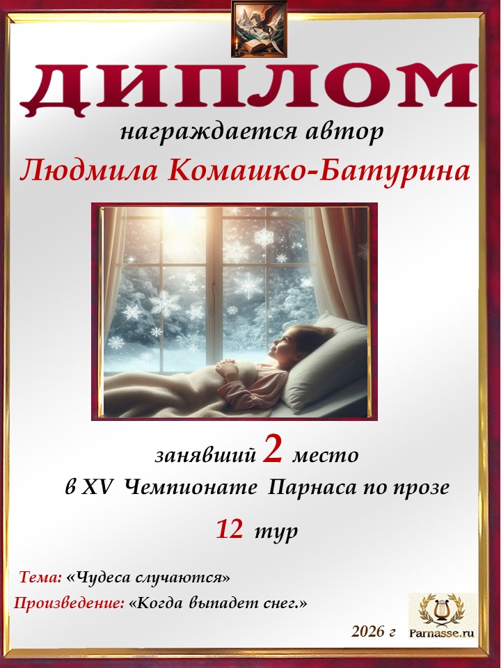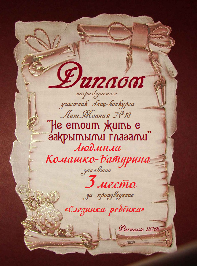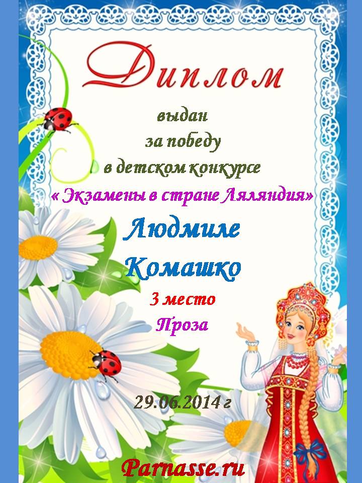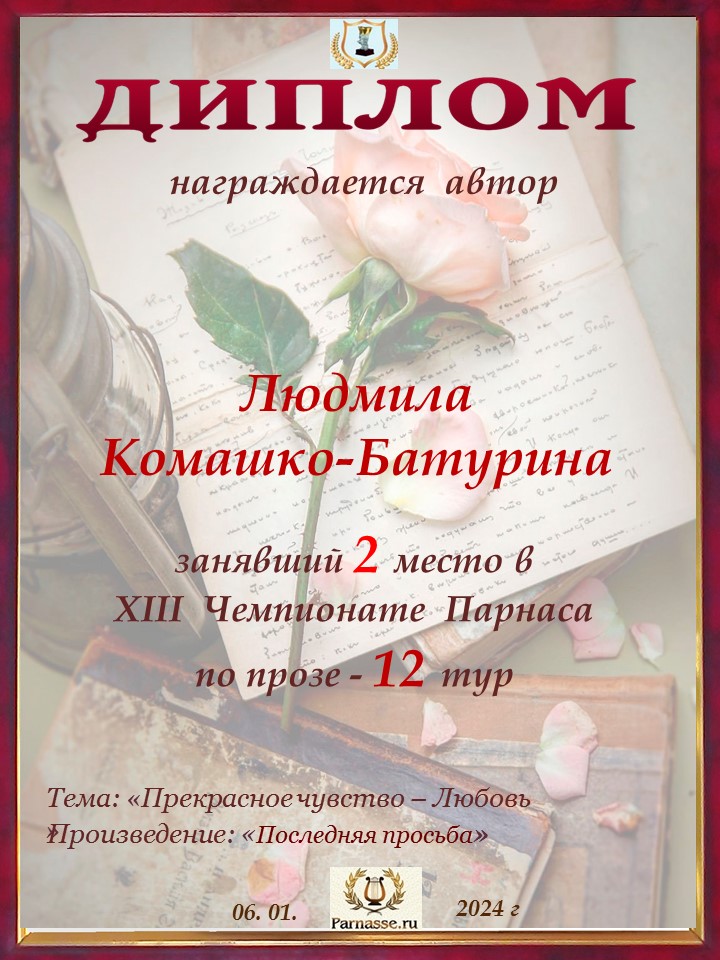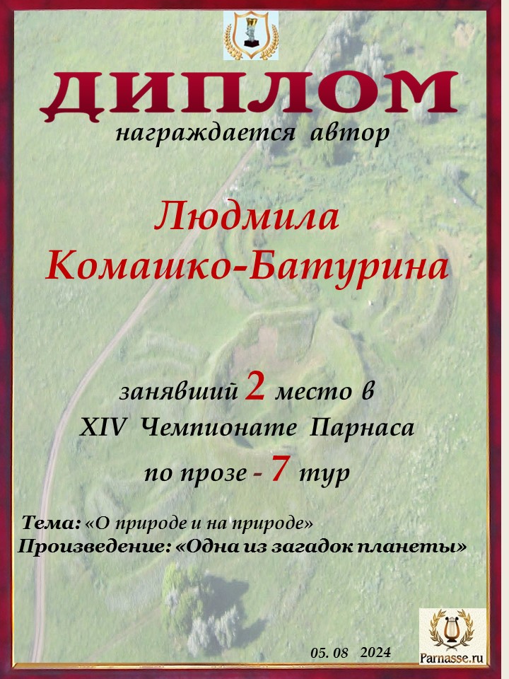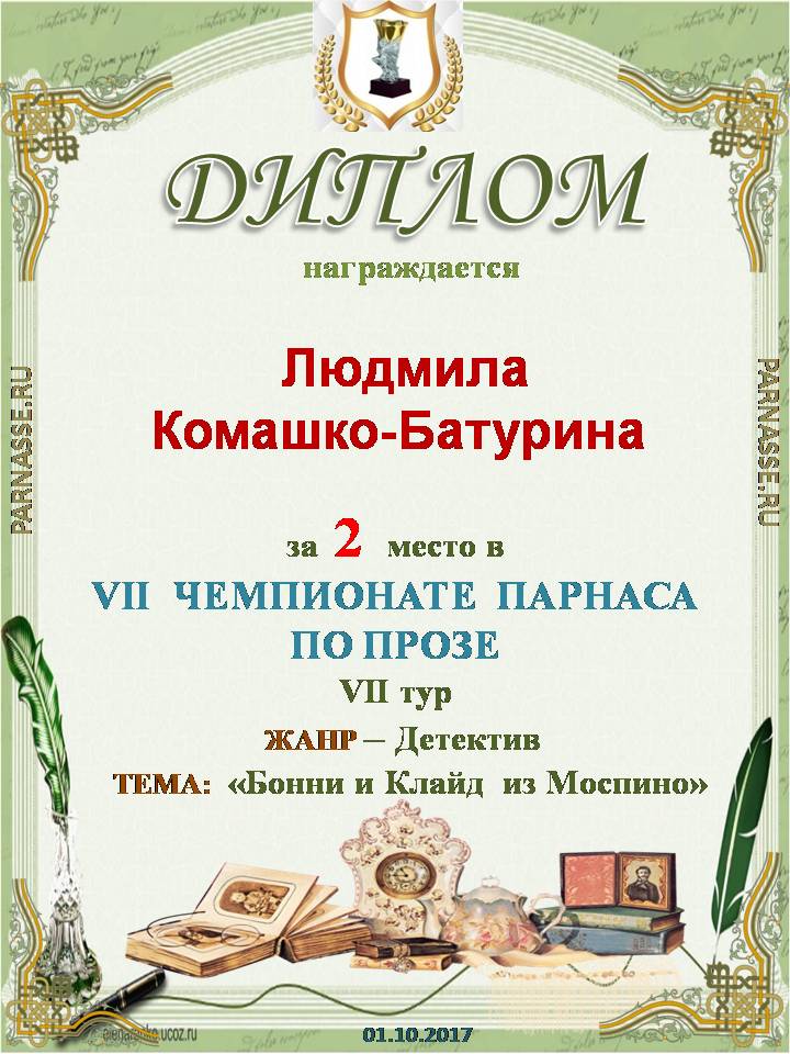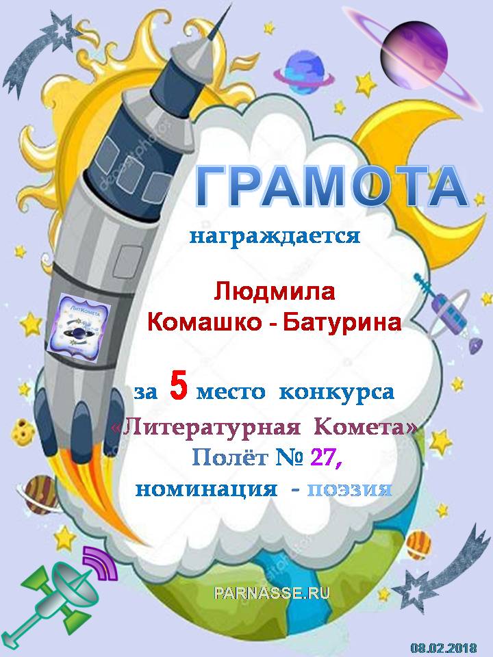 Диплом за 2 место в конкурсе "ЛитКомета"- Полёт № 13 - проза