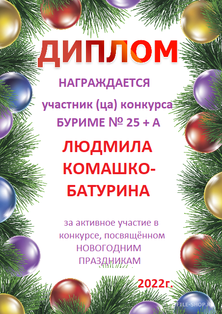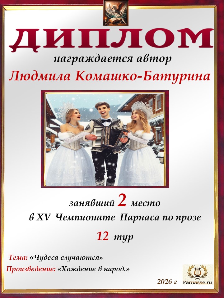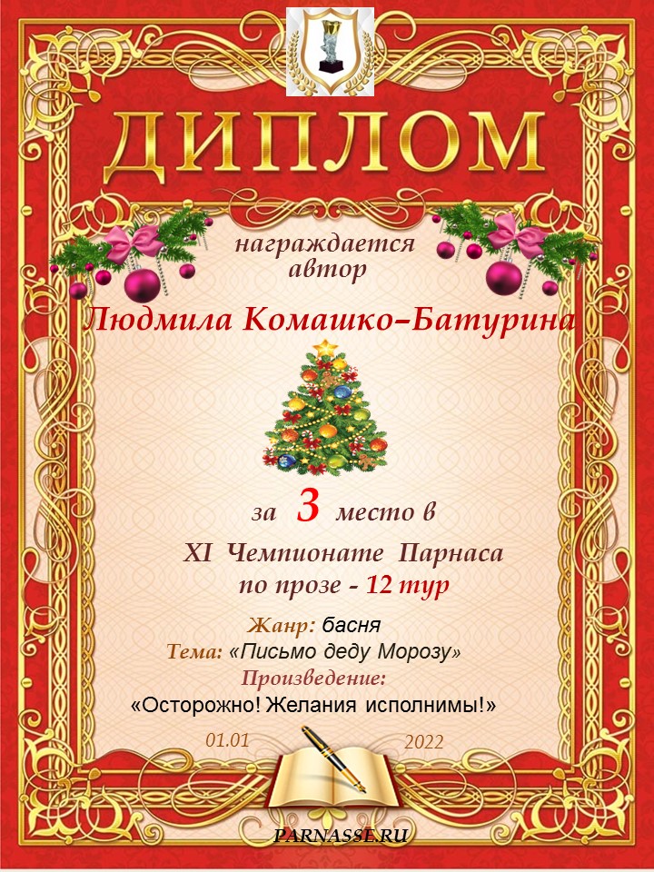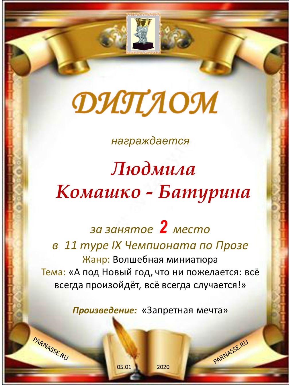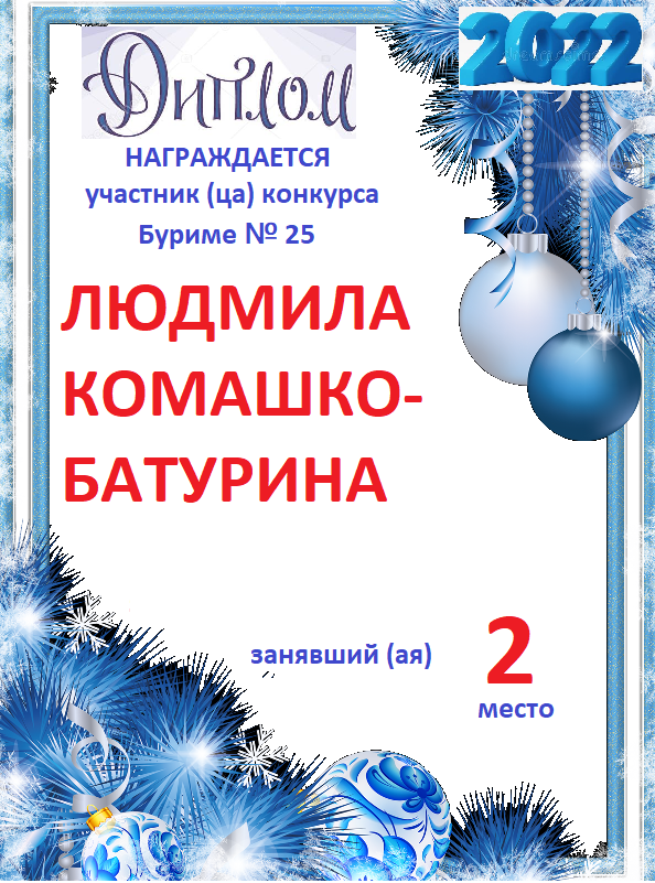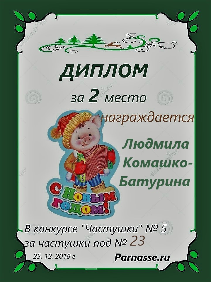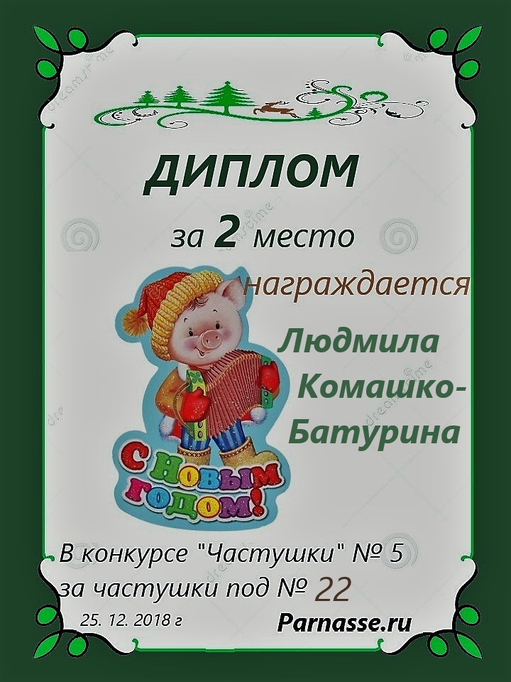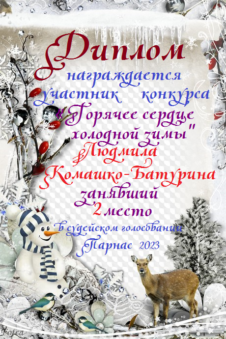 Поздравляю с победой - 2 местом в номинации Проза! Желаю счастья, благополучия и здоровья в наступающем году!