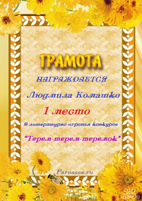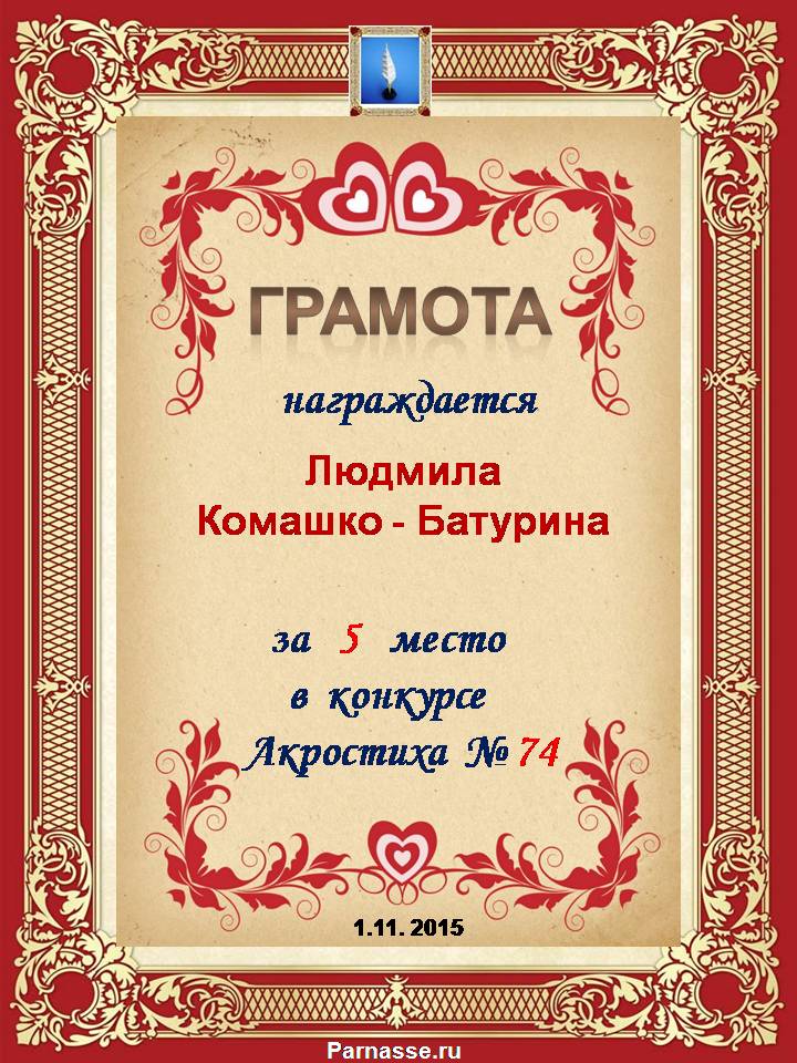 Грамота за 5 место в 104 конкурсе АКРОСТИХА (Альтернатива)! ПОЗДРАВЛЯЮ!