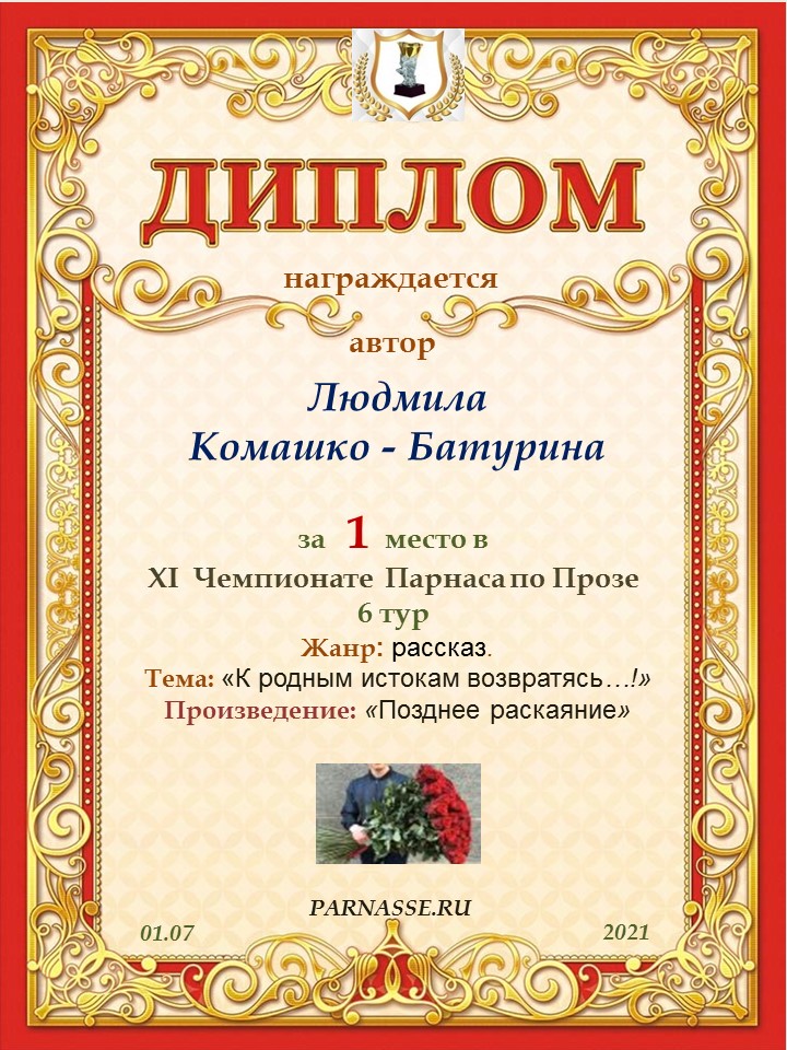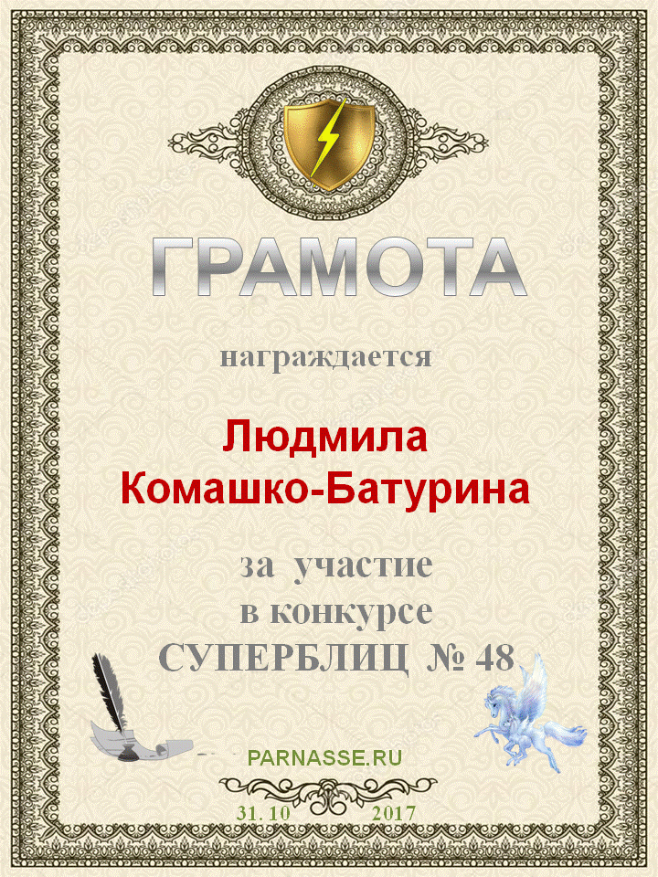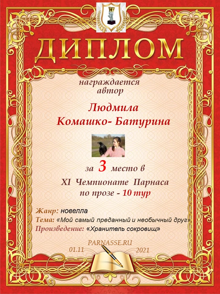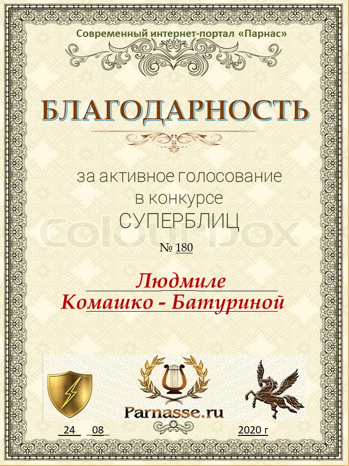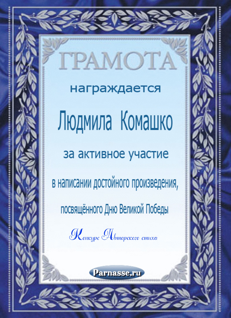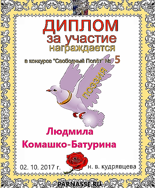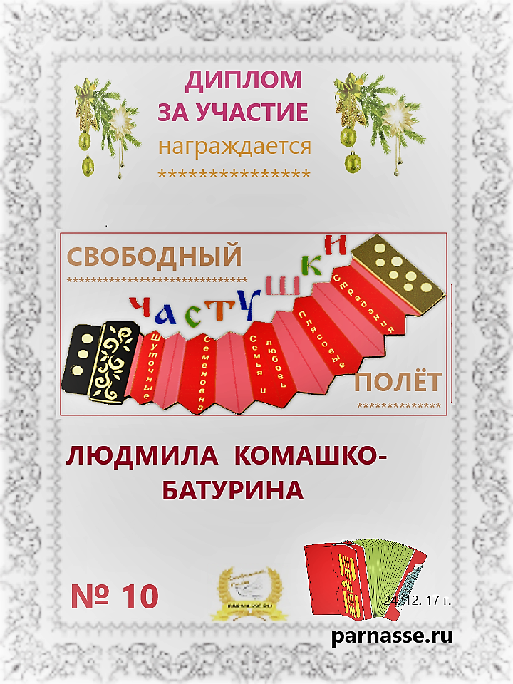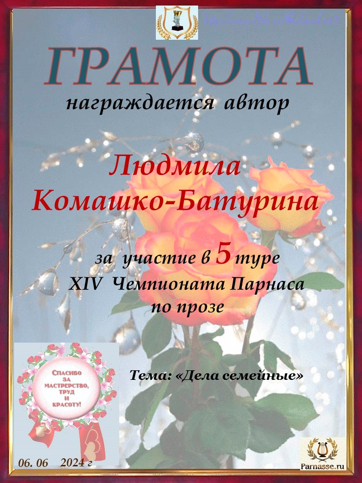 Номинация "Лучшее поздравление Парнасу в прозе".Искренне и от всего сердца благодарим Вас, ЛЮДМИЛА, за участие в юбилейном конкурсе, за Ваши прекрасные, ярчайшие слова благодарности нашему порталу! Мы желаем Вам крепкого здоровья, жизнелюбия, творческой Музы и исполнения самых заветных желаний, которые только у Вас есть!