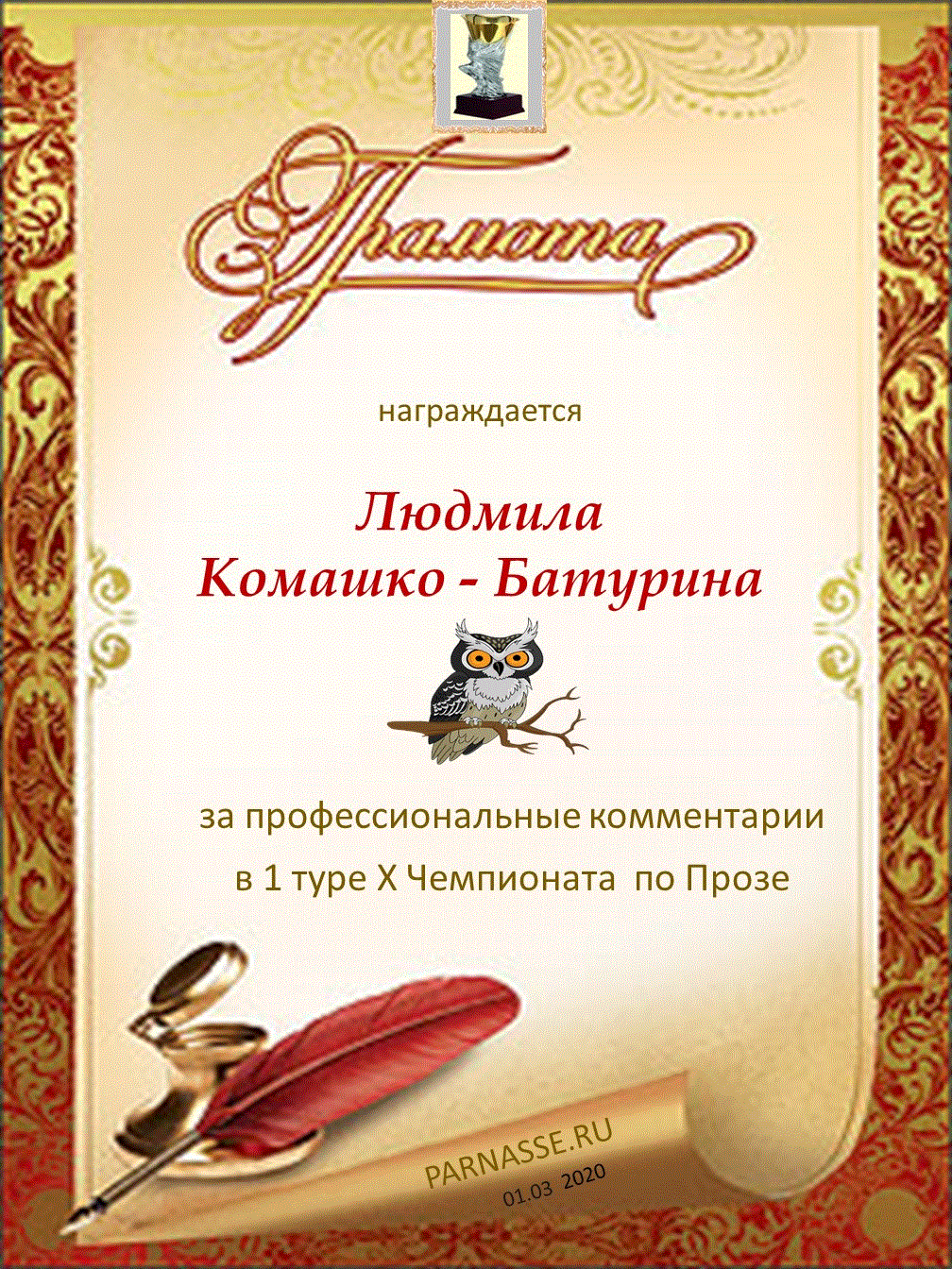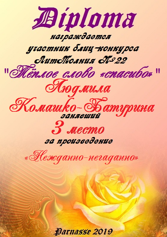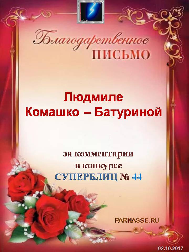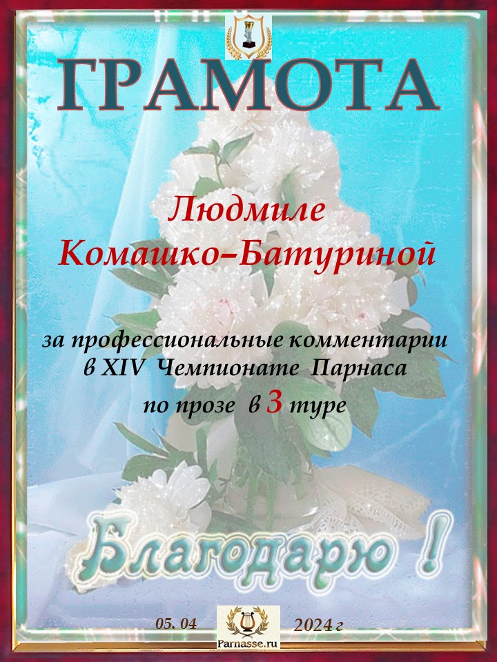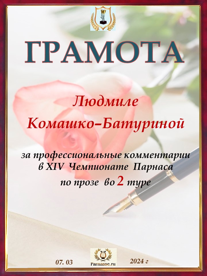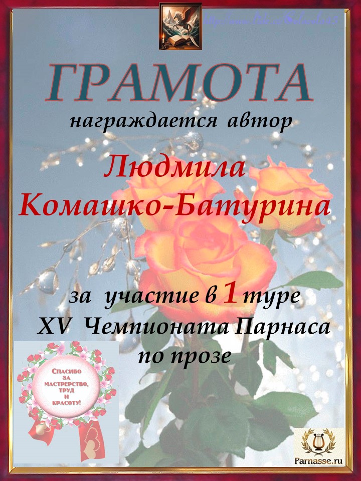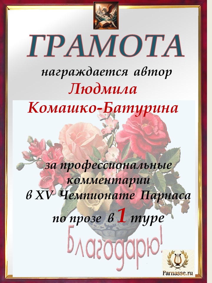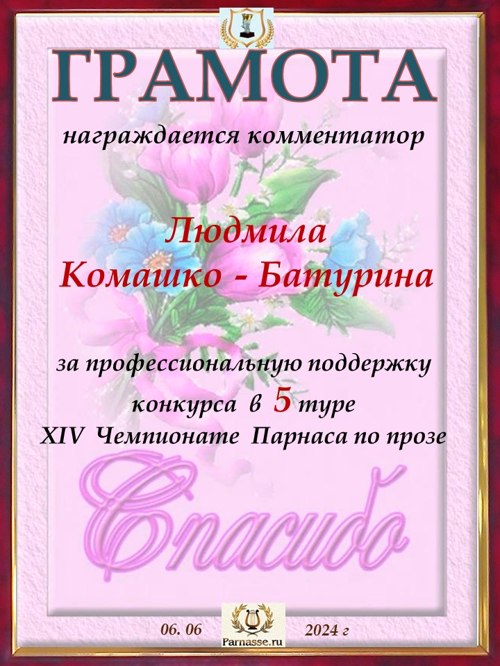 Людмила, примите благодарность за объективное судейство в конкурсе - номинация Проза!