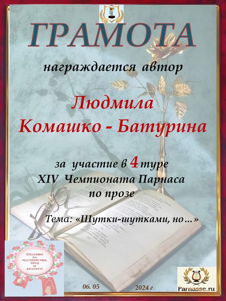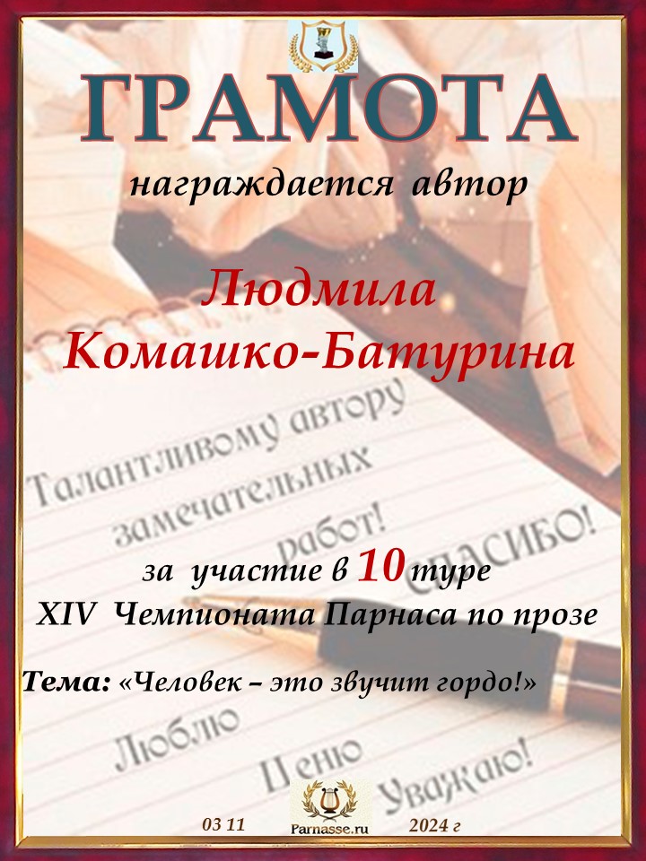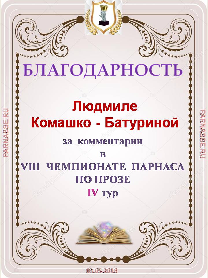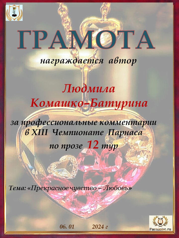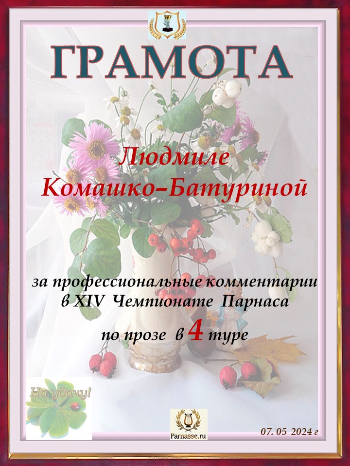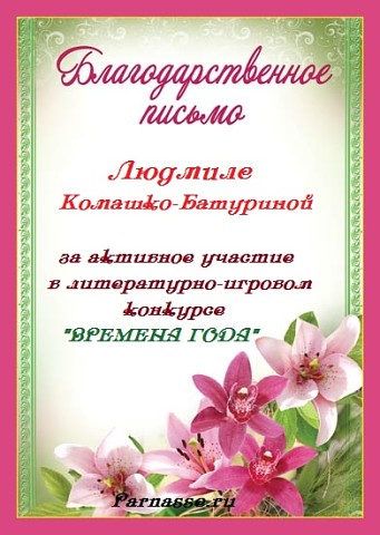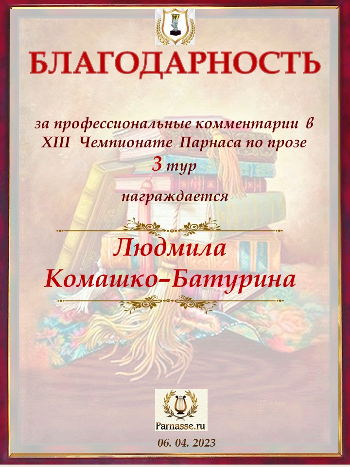 Людмила, примите благодарность за объективное судейство в конкурсе - номинация Проза!