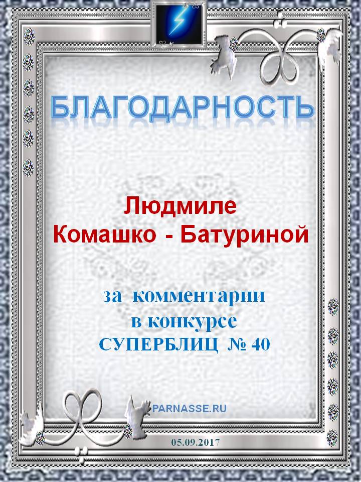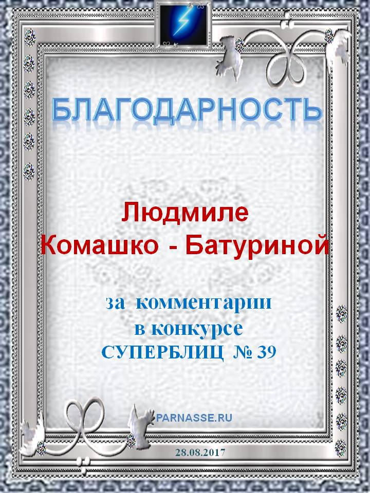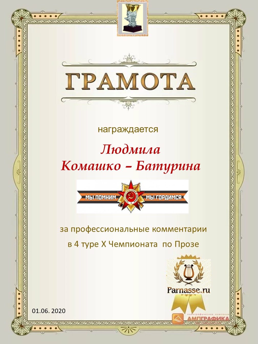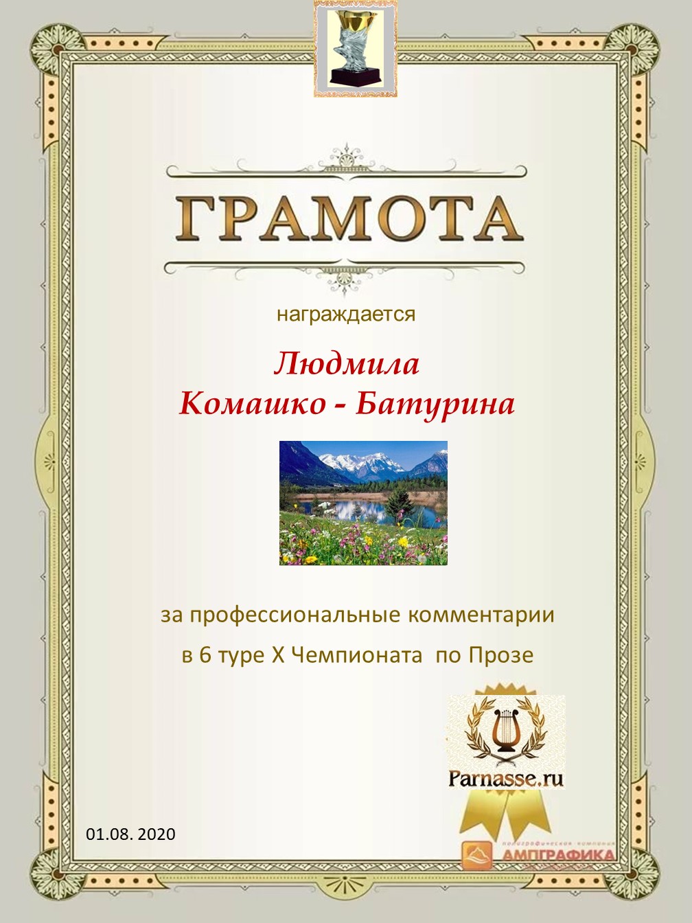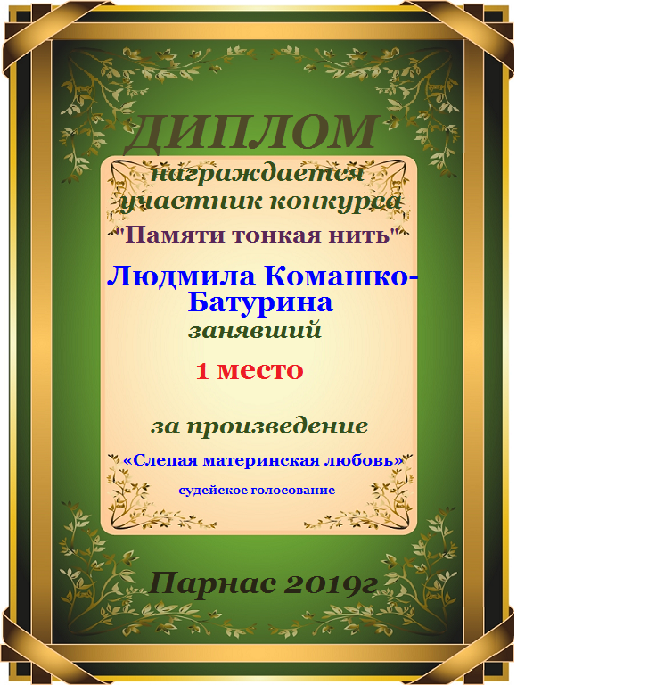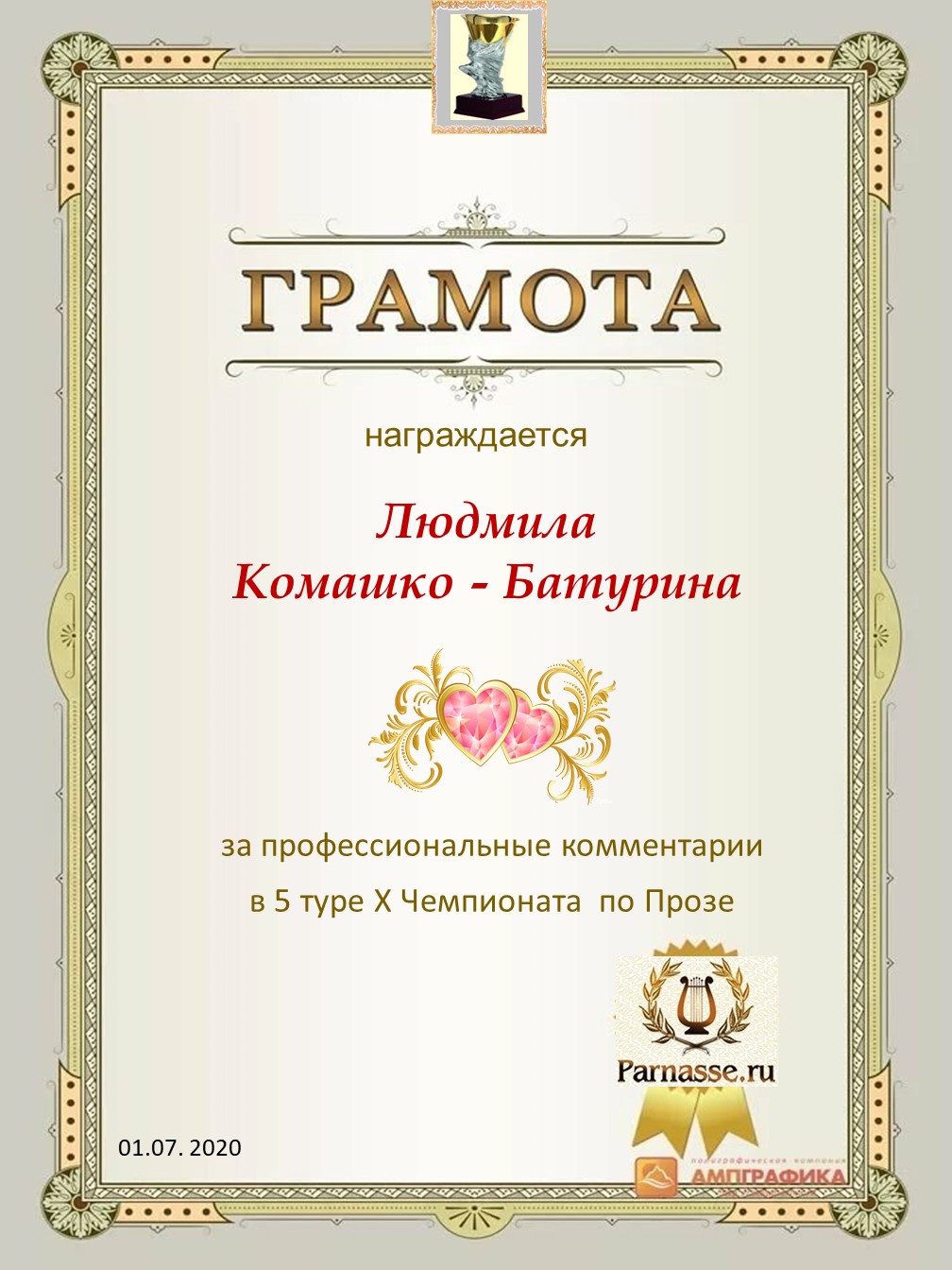 Людмила, примите благодарность за объективное судейство в конкурсе - номинация Проза!