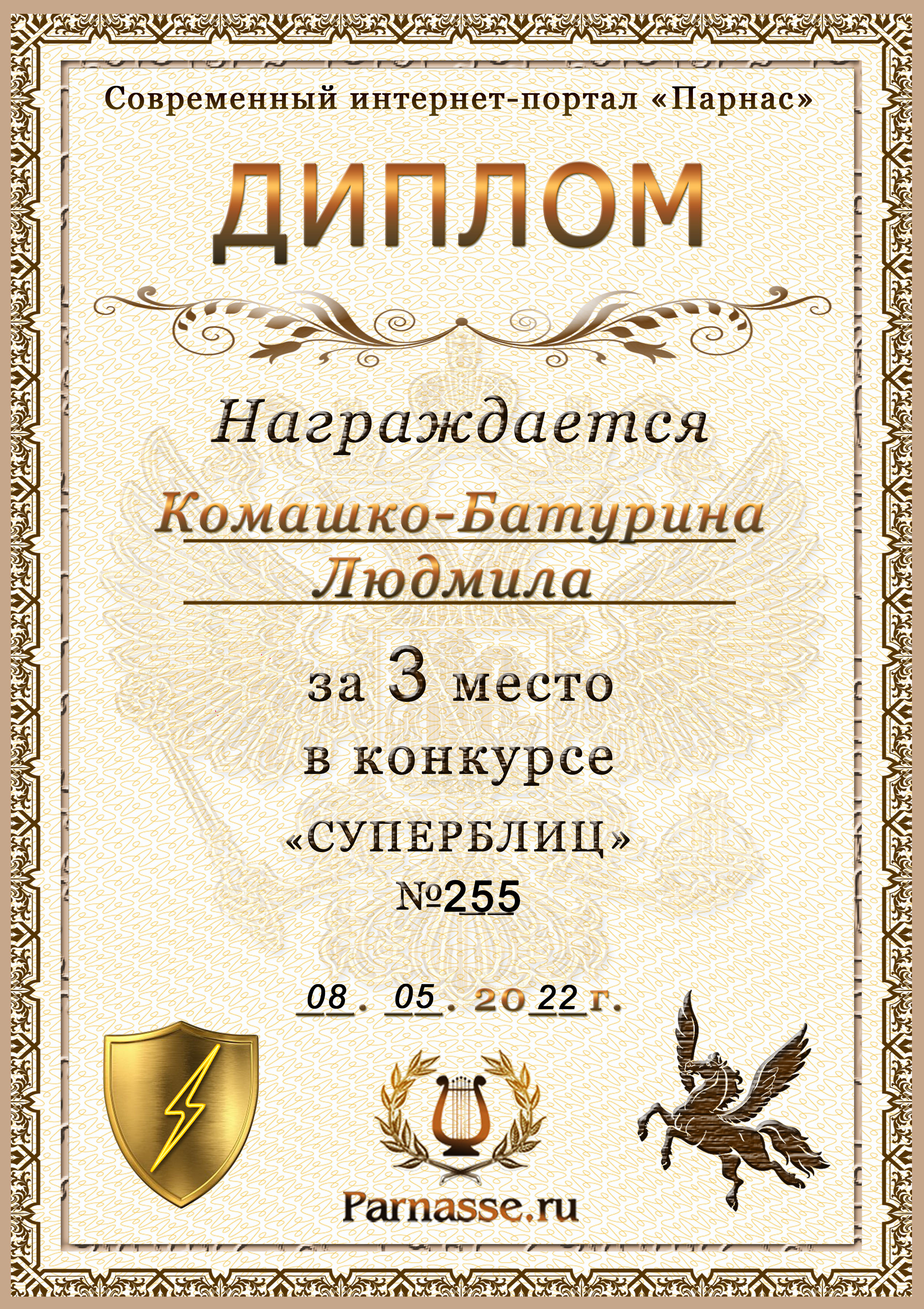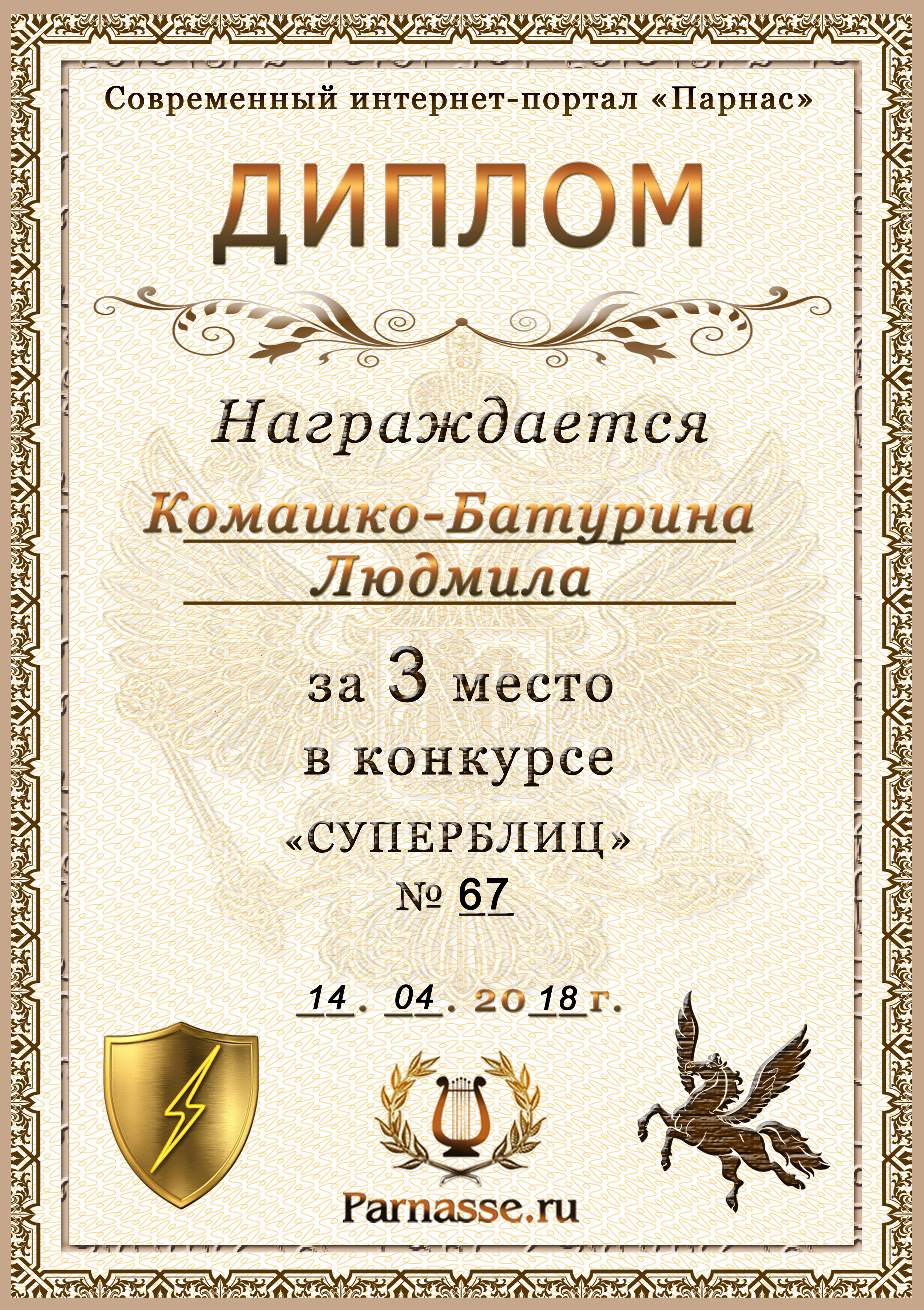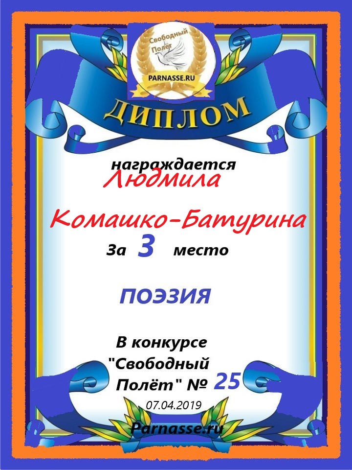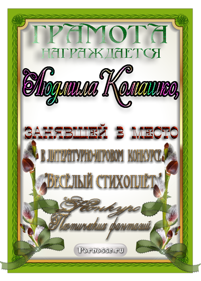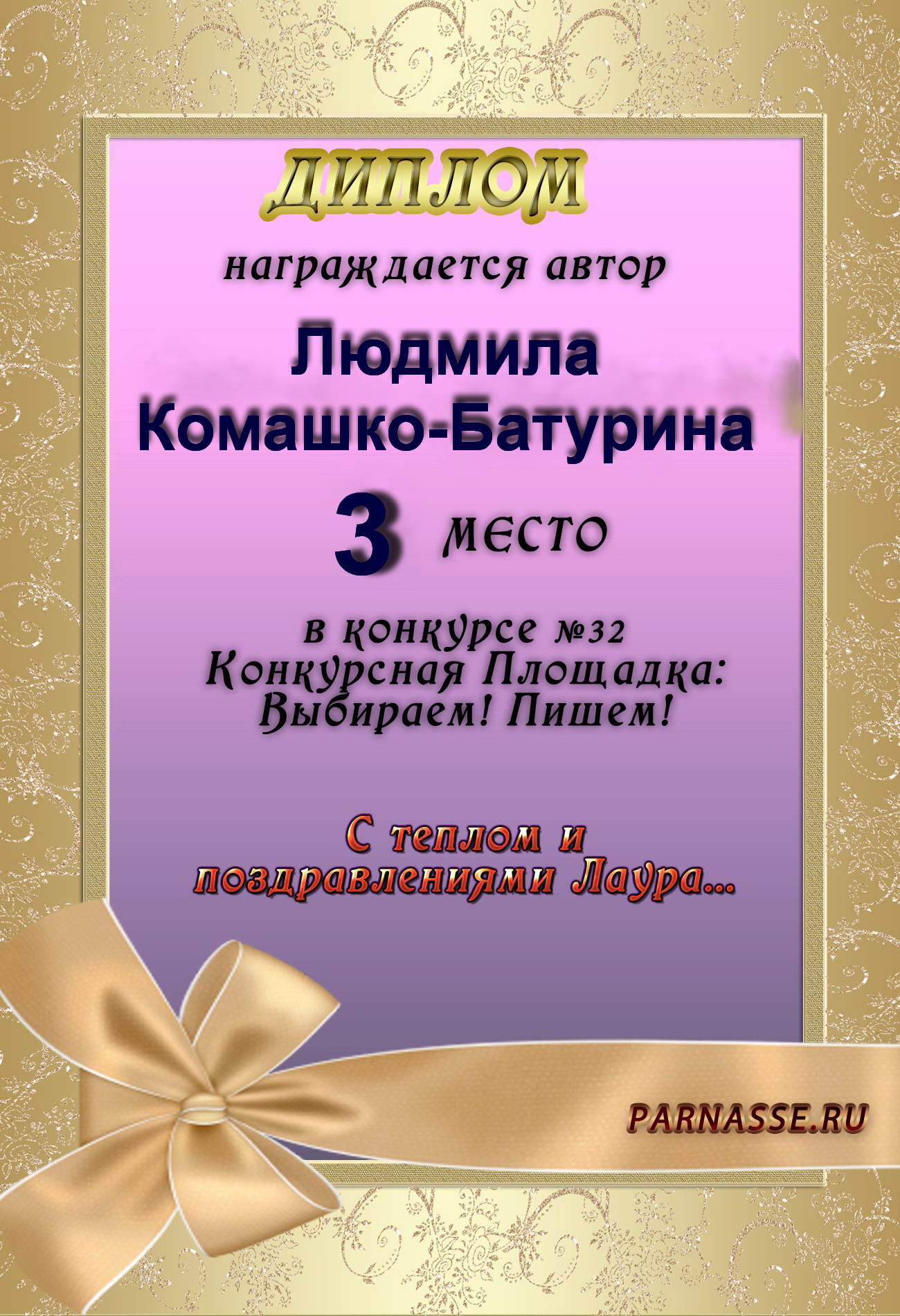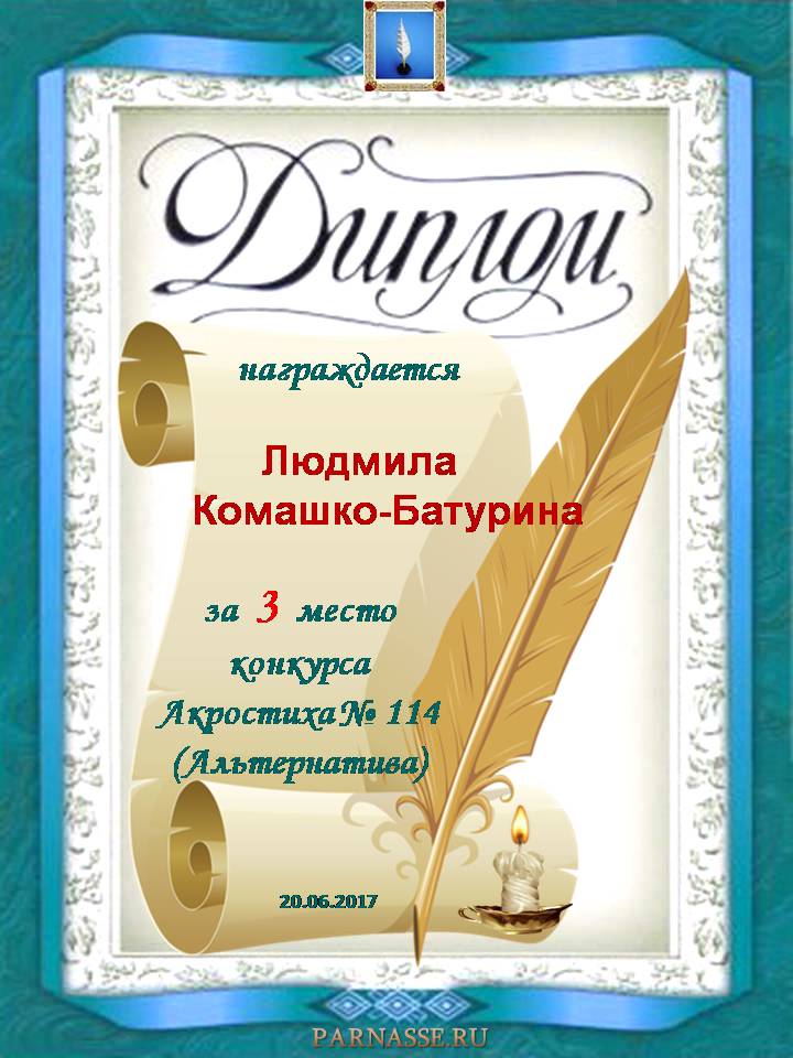 Диплом за 3 место в 114 конкурсе АКРОСТИХА (Альтернатива)! ПОЗДРАВЛЯЮ!