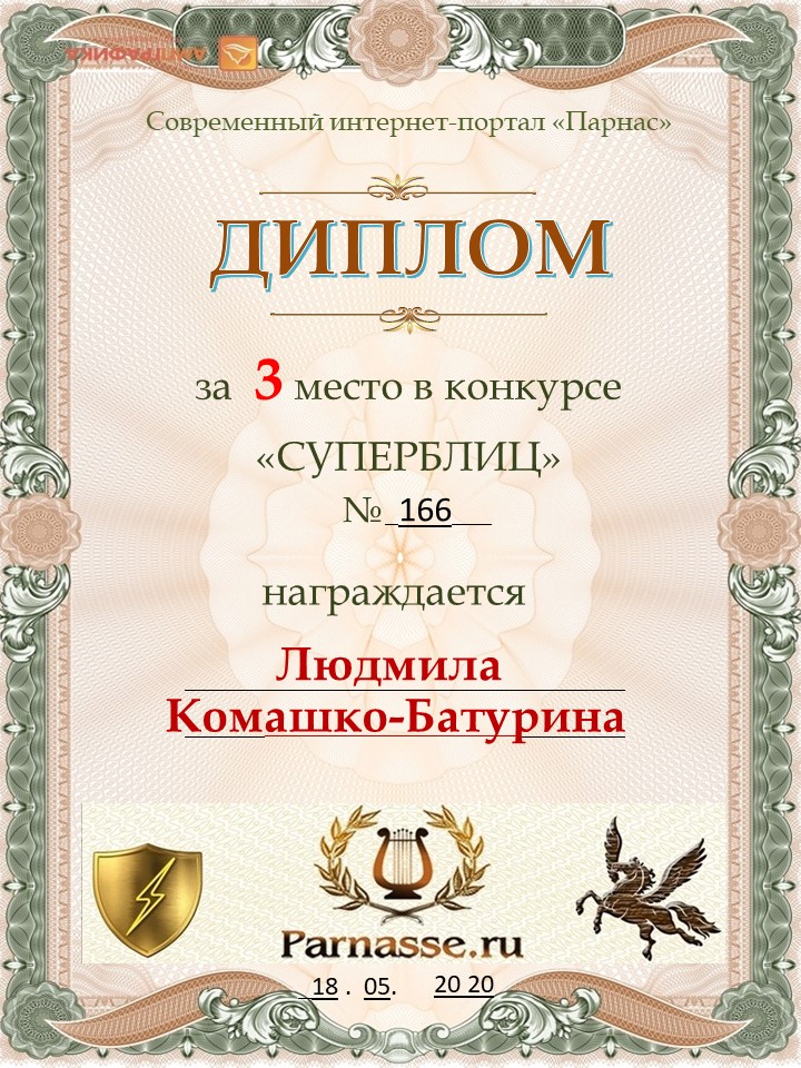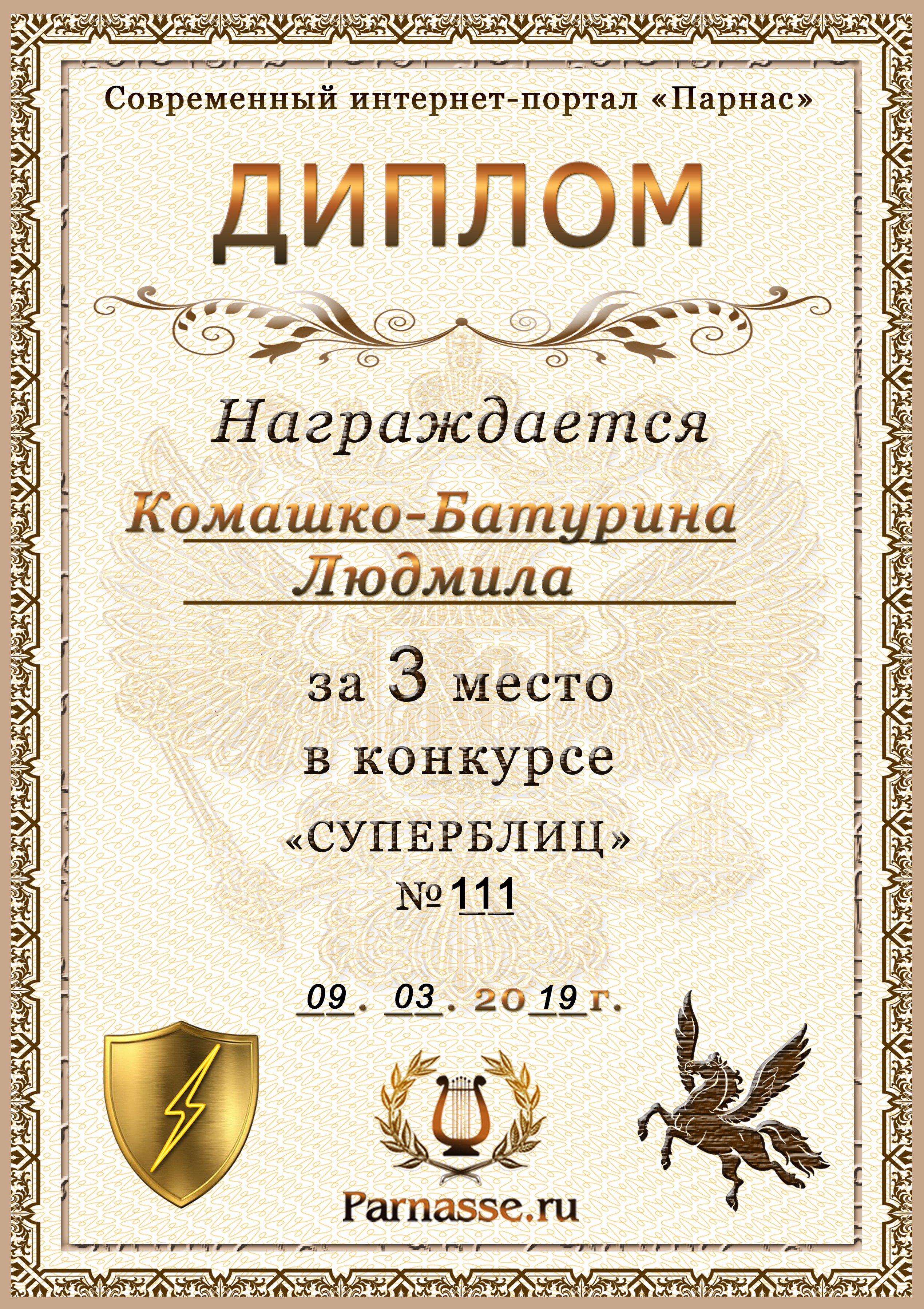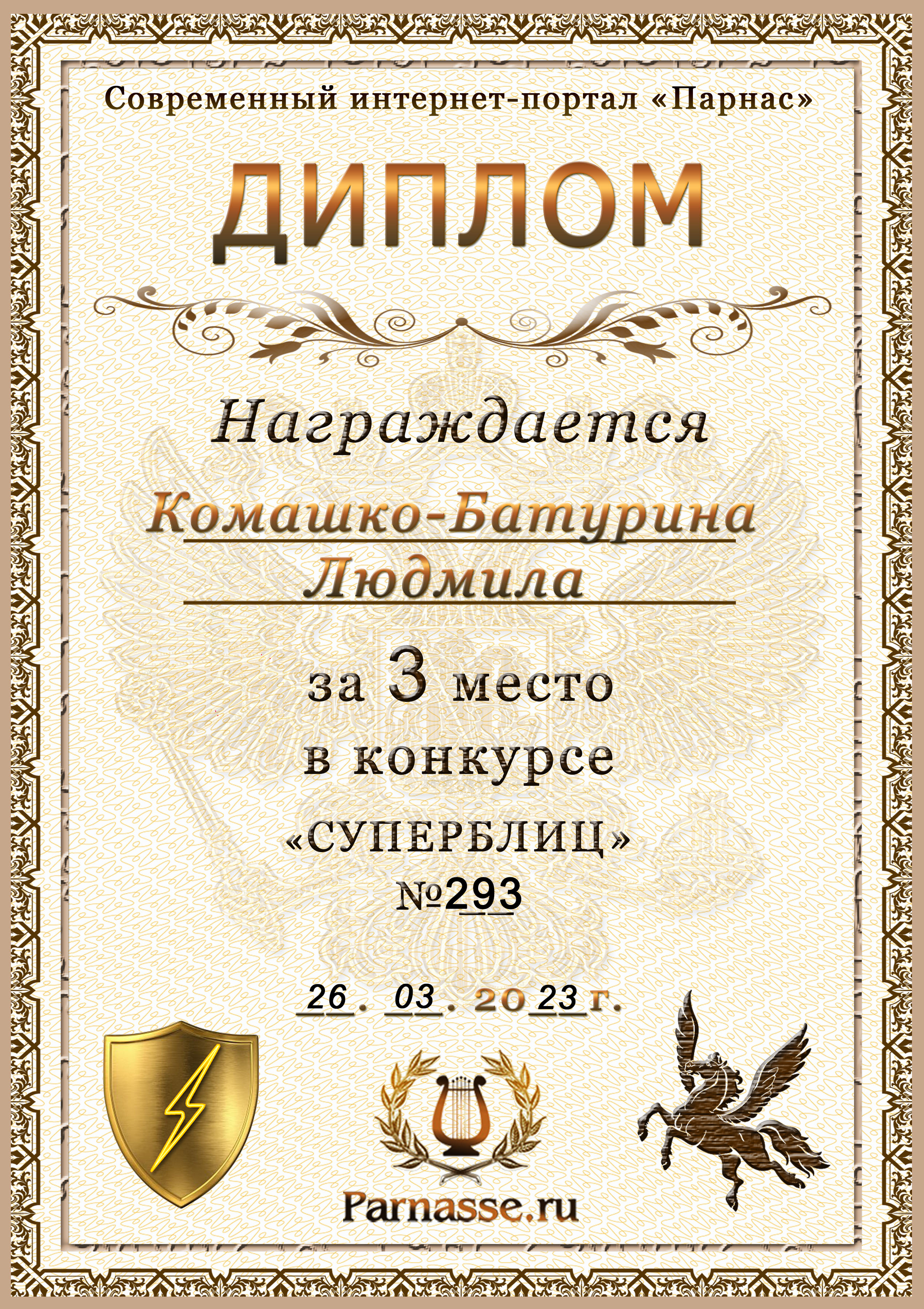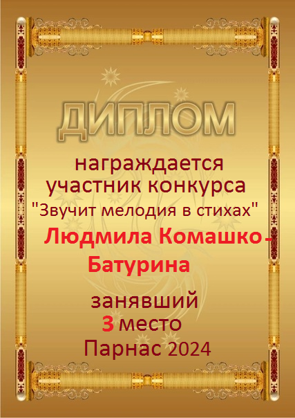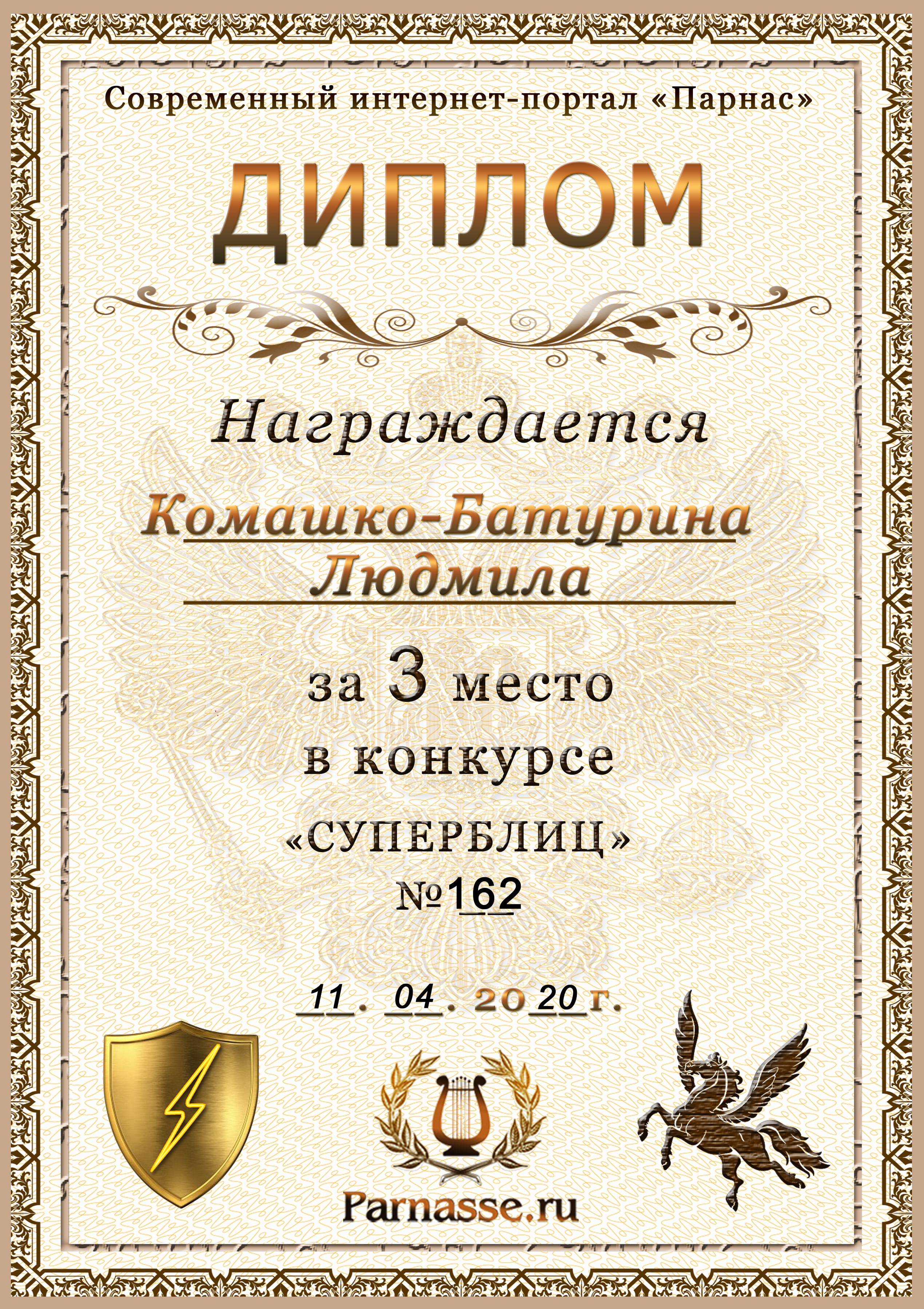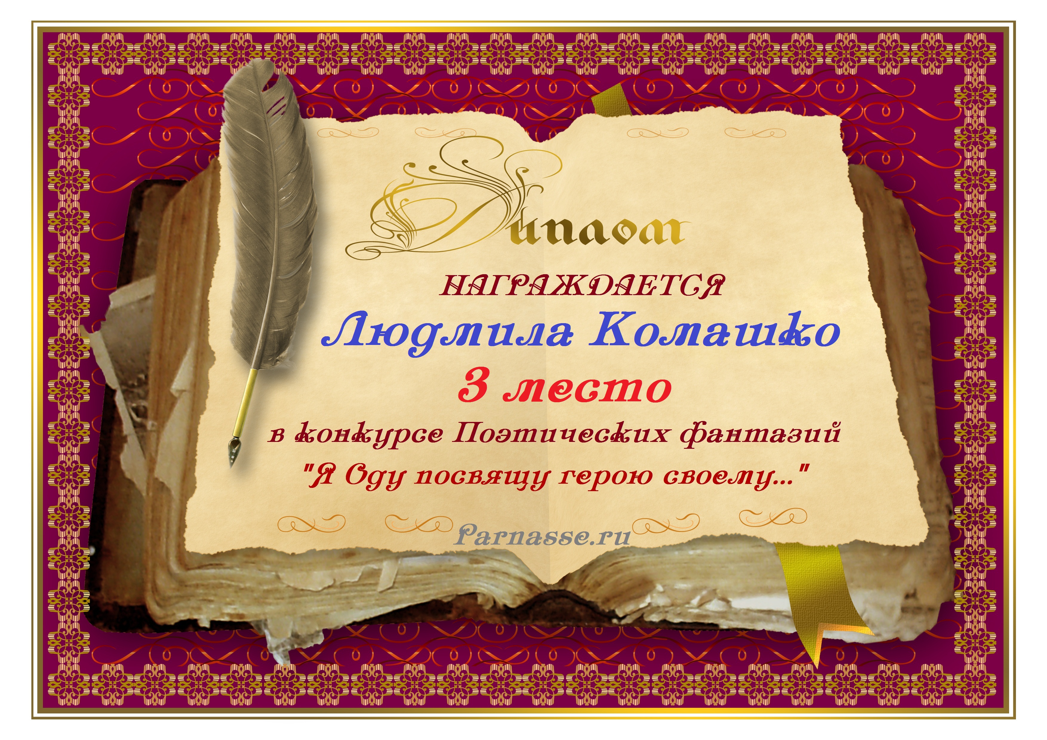 Диплом за 3 место в 114 конкурсе АКРОСТИХА (Альтернатива)! ПОЗДРАВЛЯЮ!