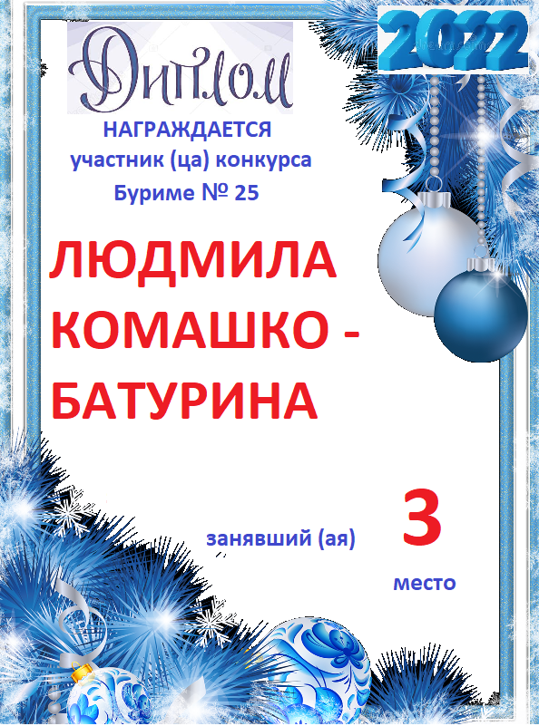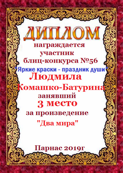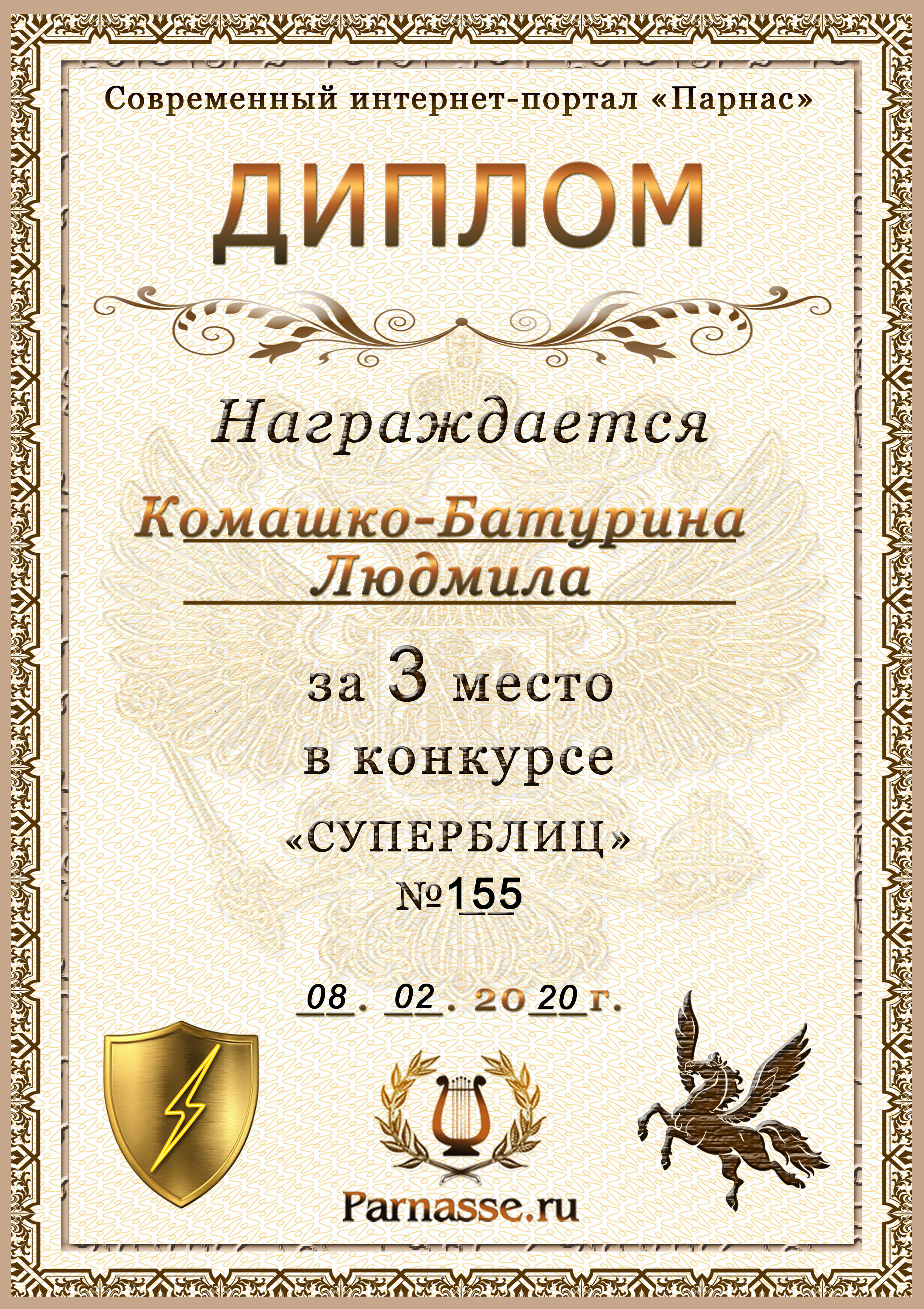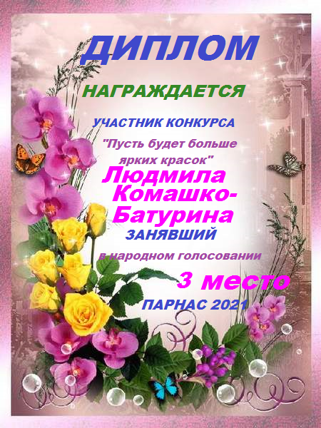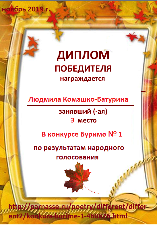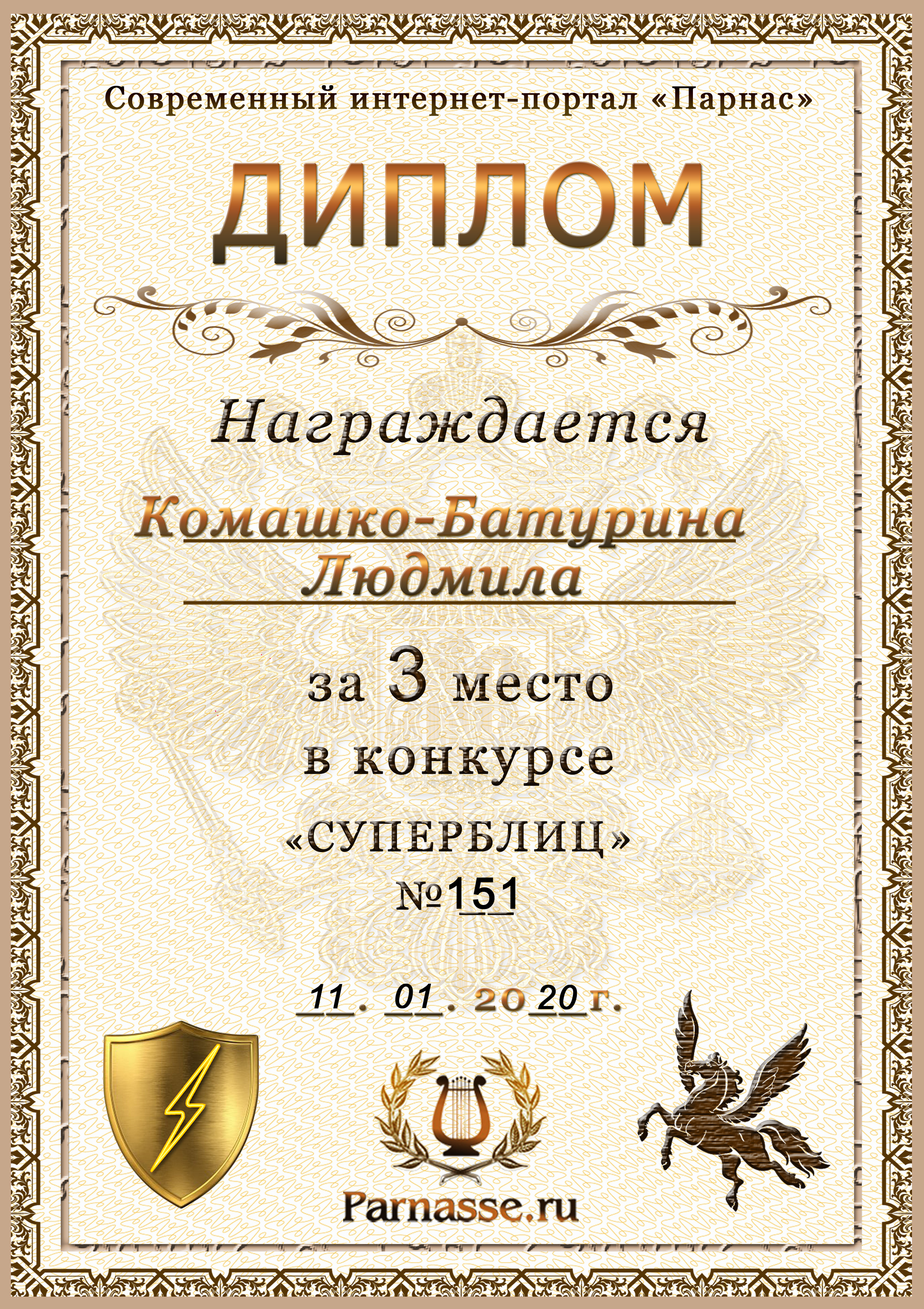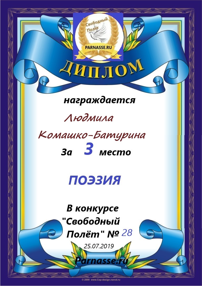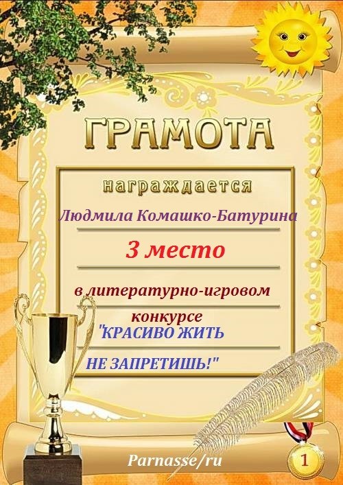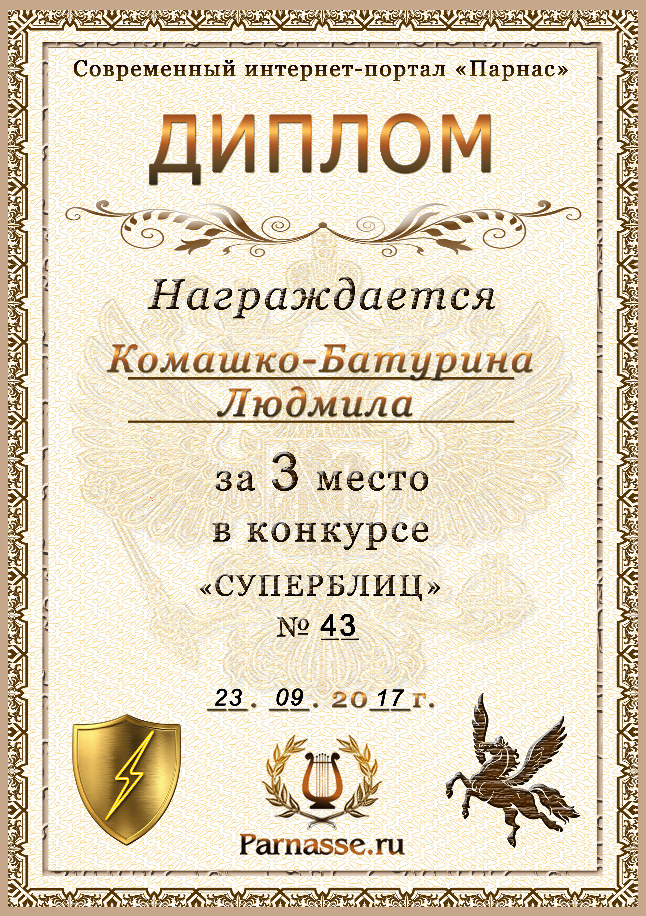 Диплом за 3 место в 114 конкурсе АКРОСТИХА (Альтернатива)! ПОЗДРАВЛЯЮ!