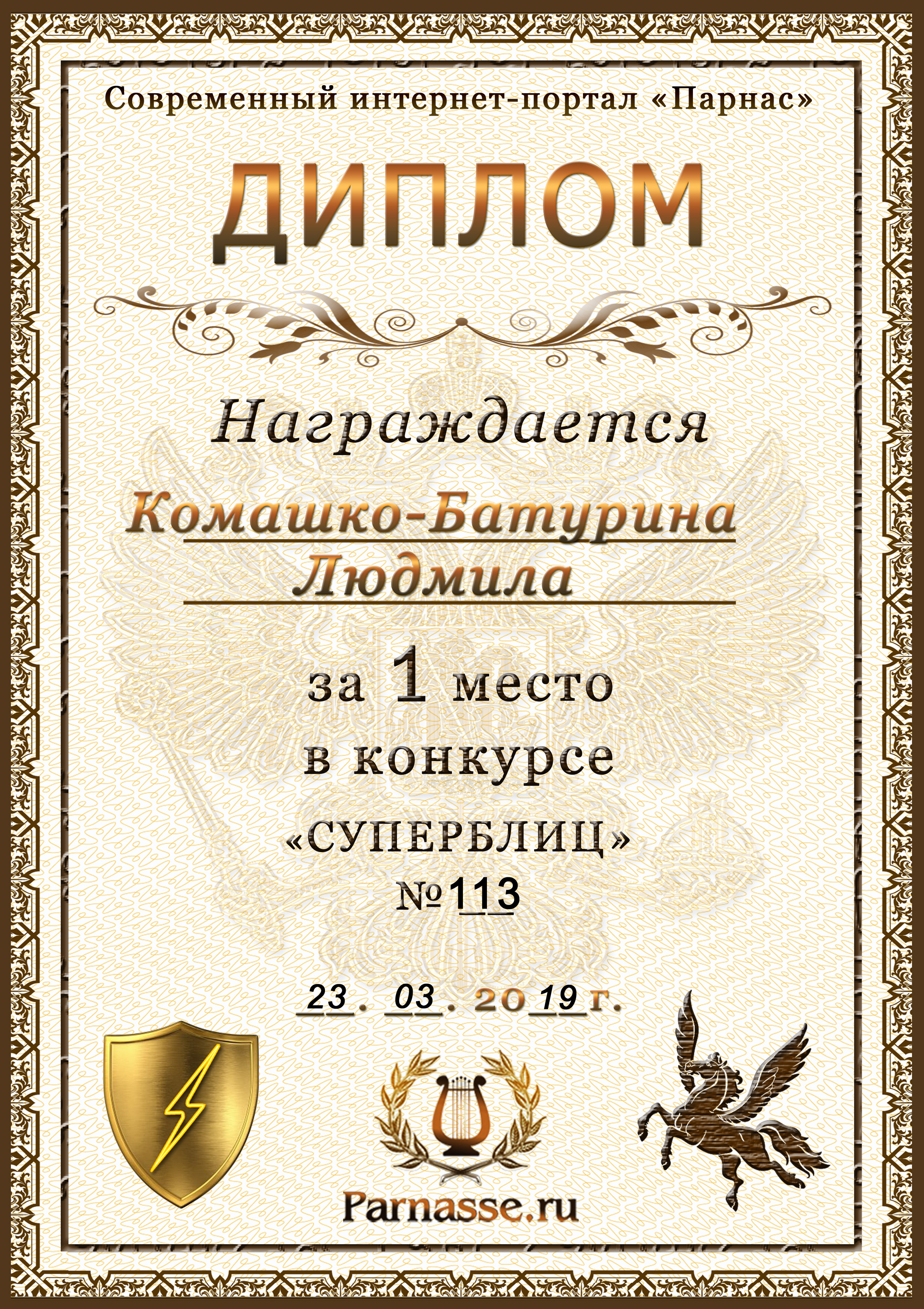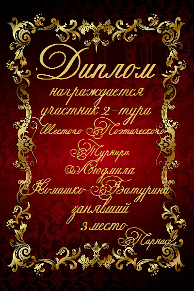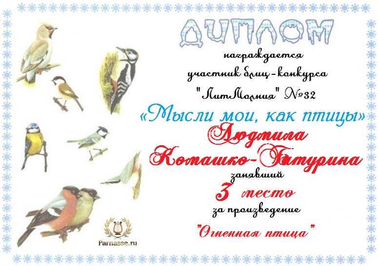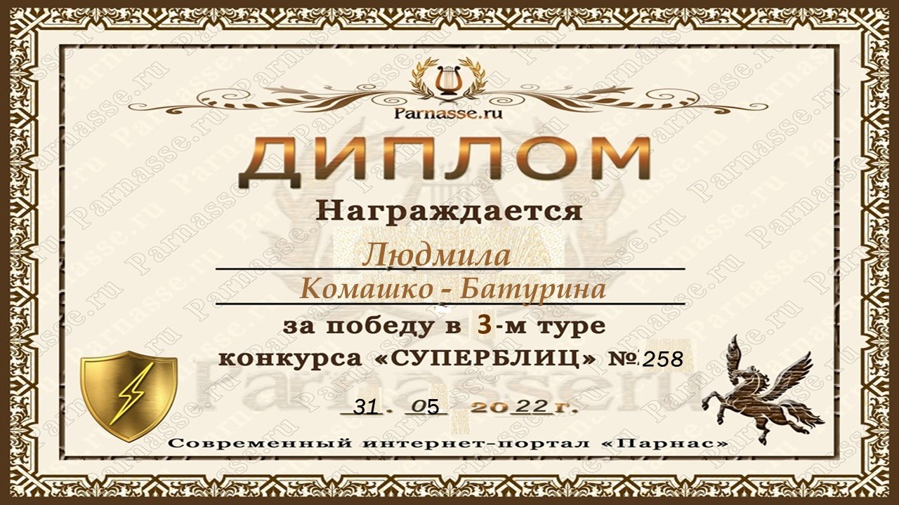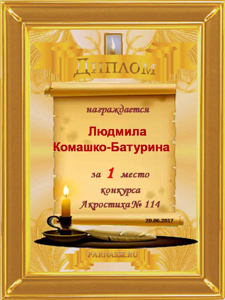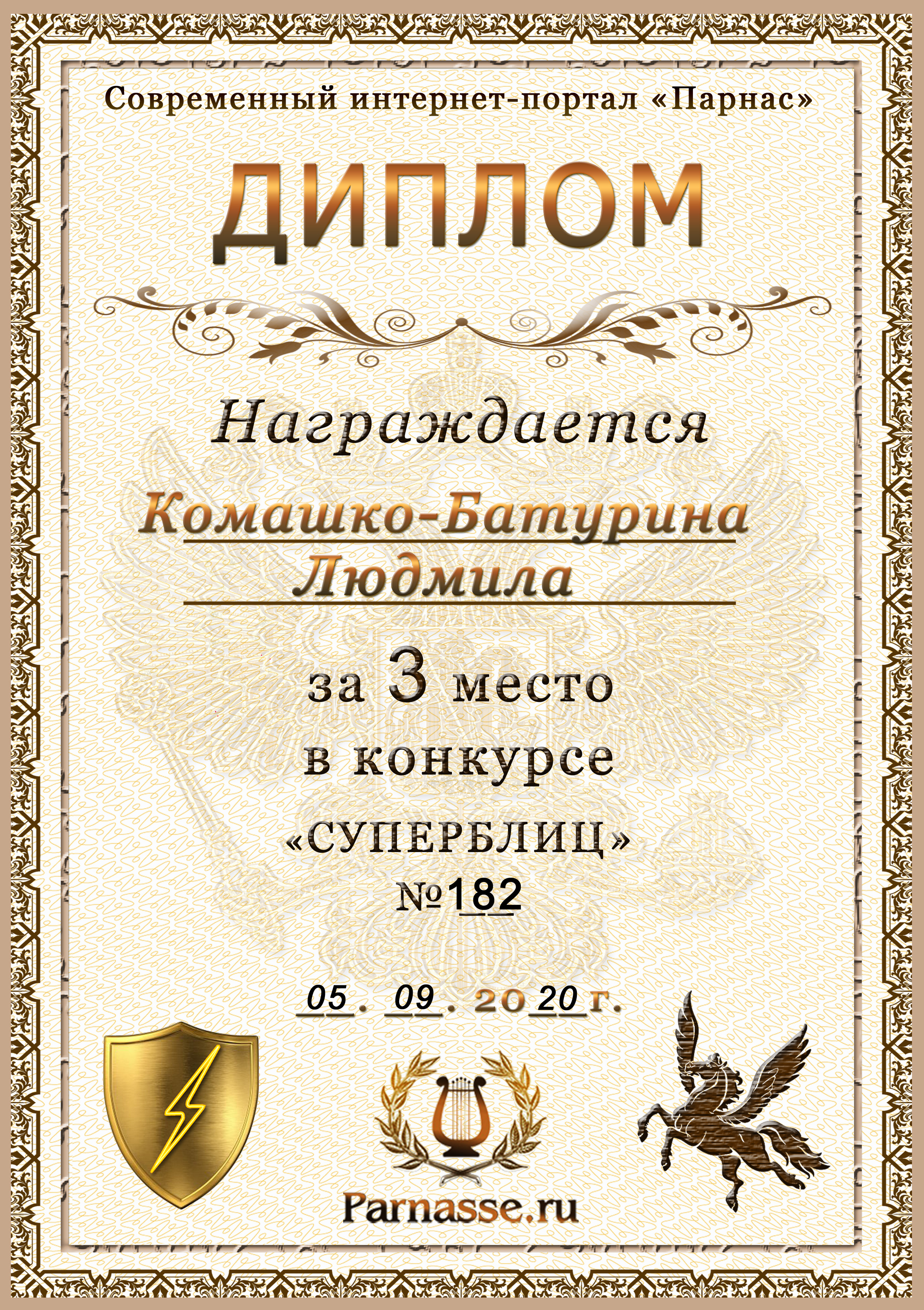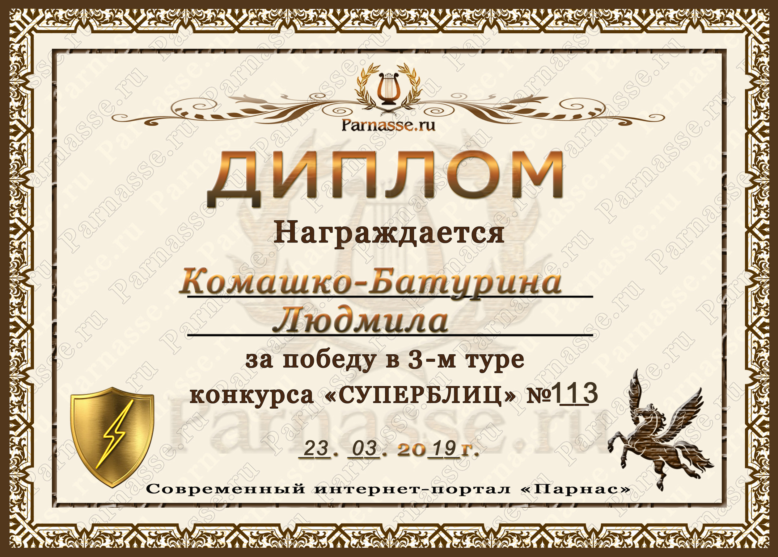 Диплом за 3 место в 114 конкурсе АКРОСТИХА (Альтернатива)! ПОЗДРАВЛЯЮ!