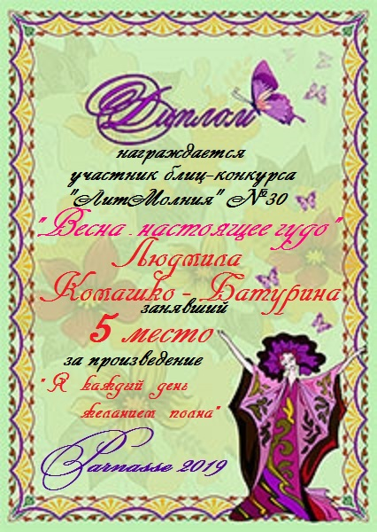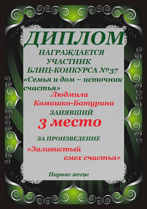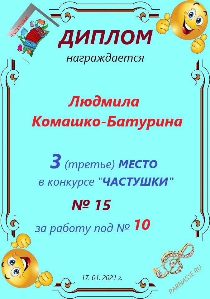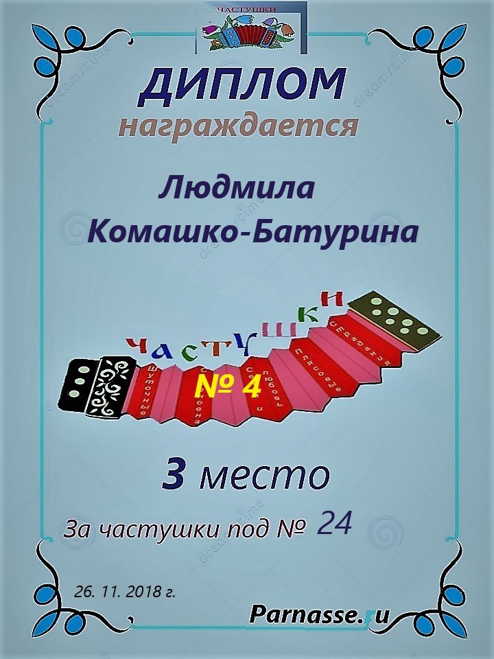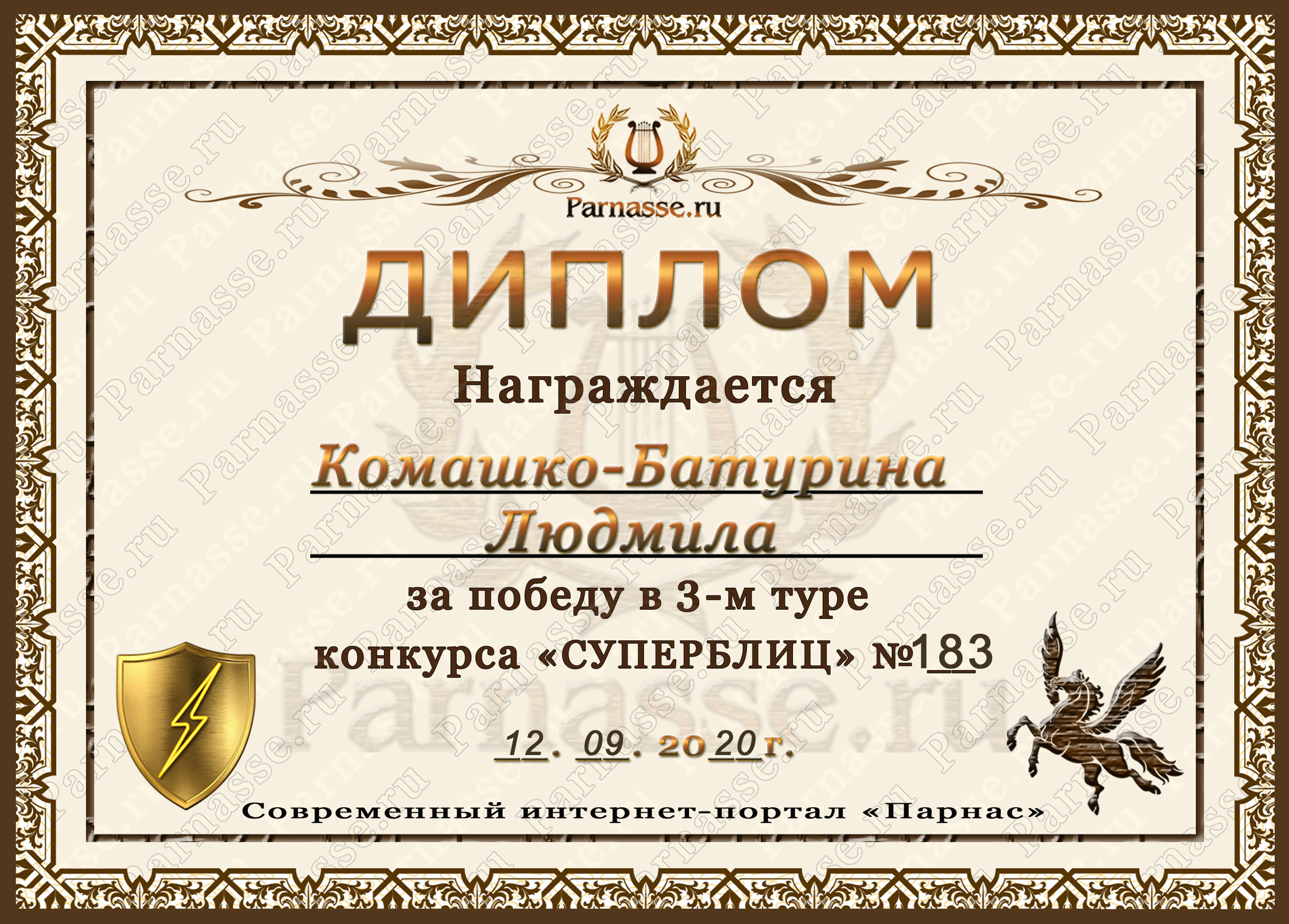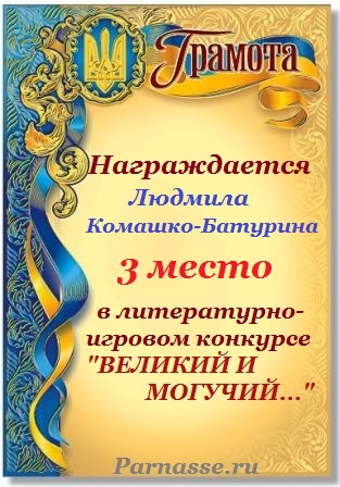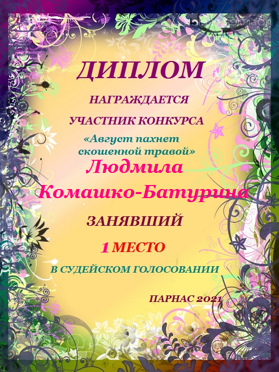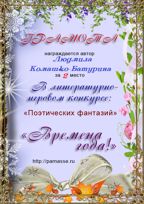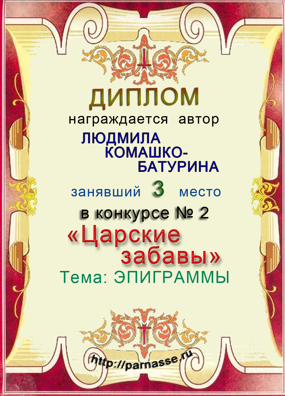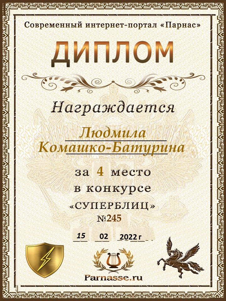 Диплом за 3 место в 114 конкурсе АКРОСТИХА (Альтернатива)! ПОЗДРАВЛЯЮ!