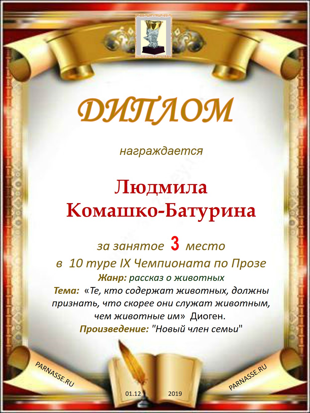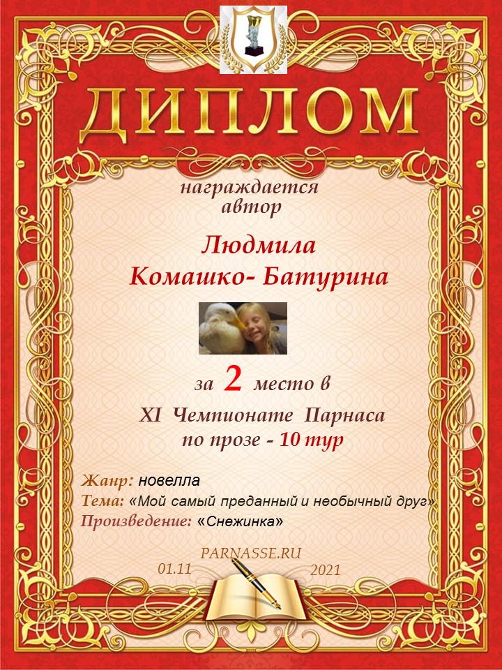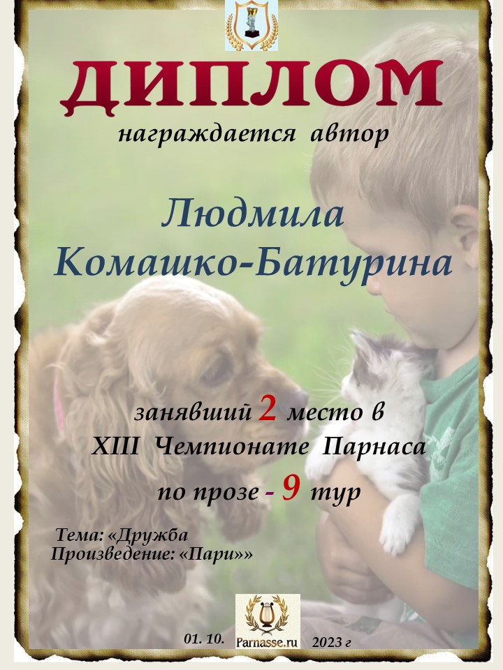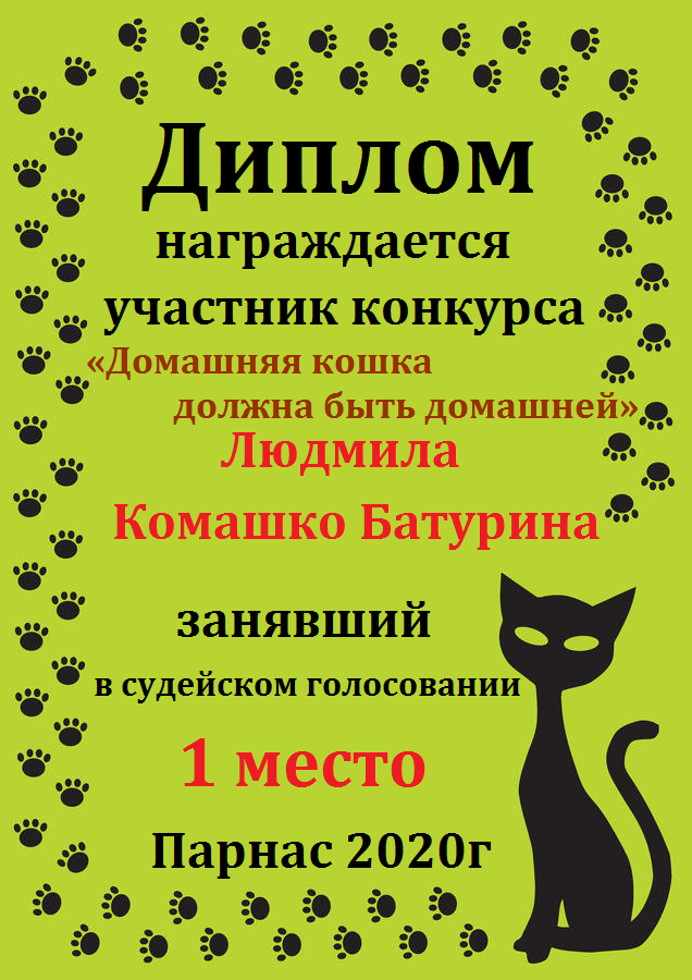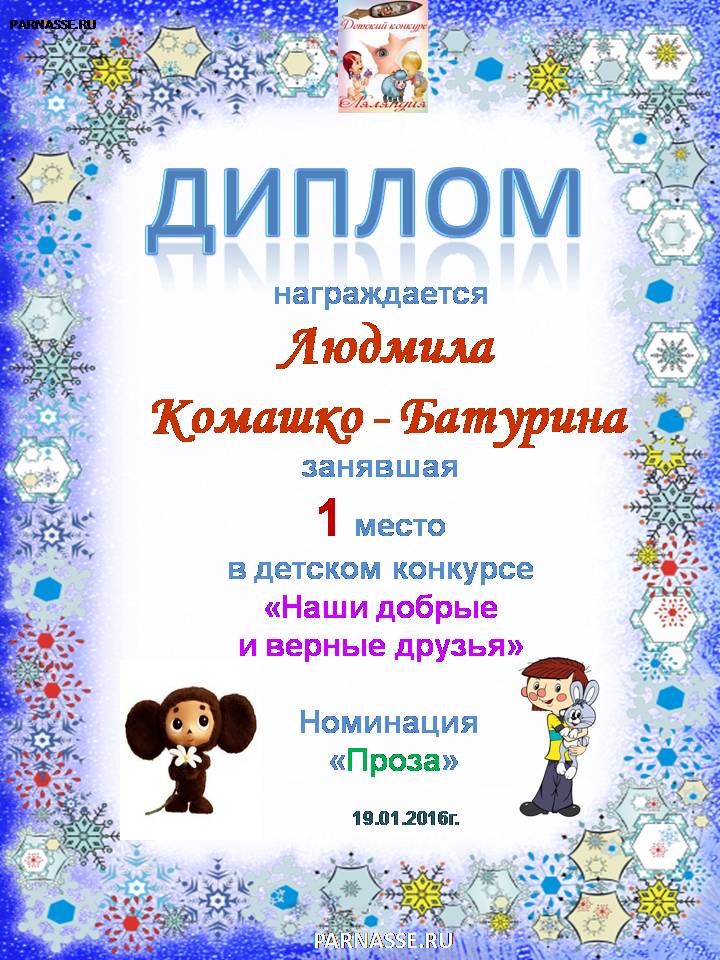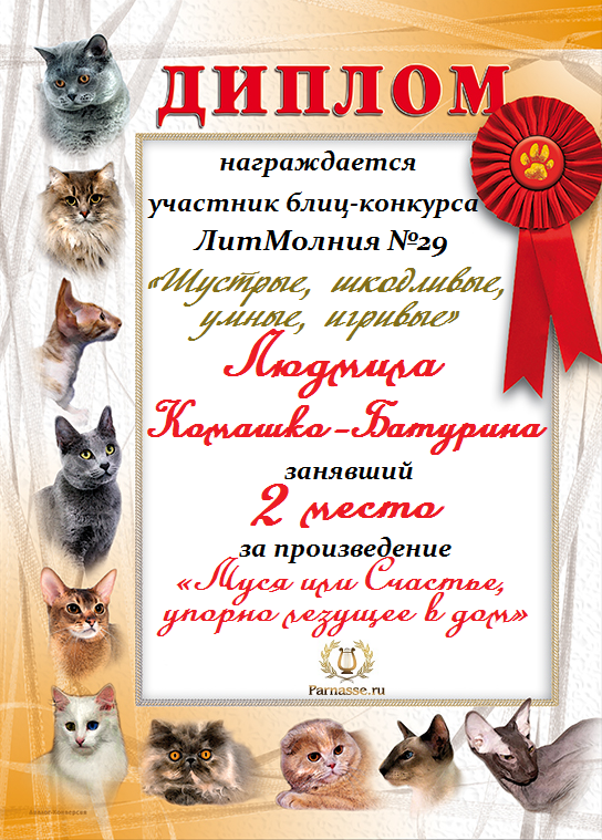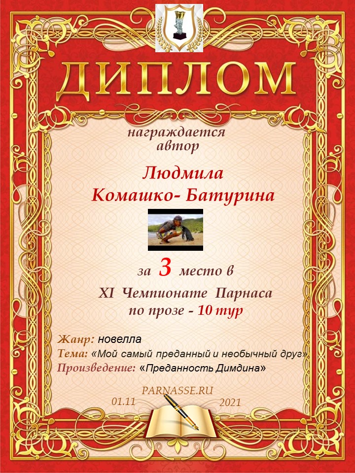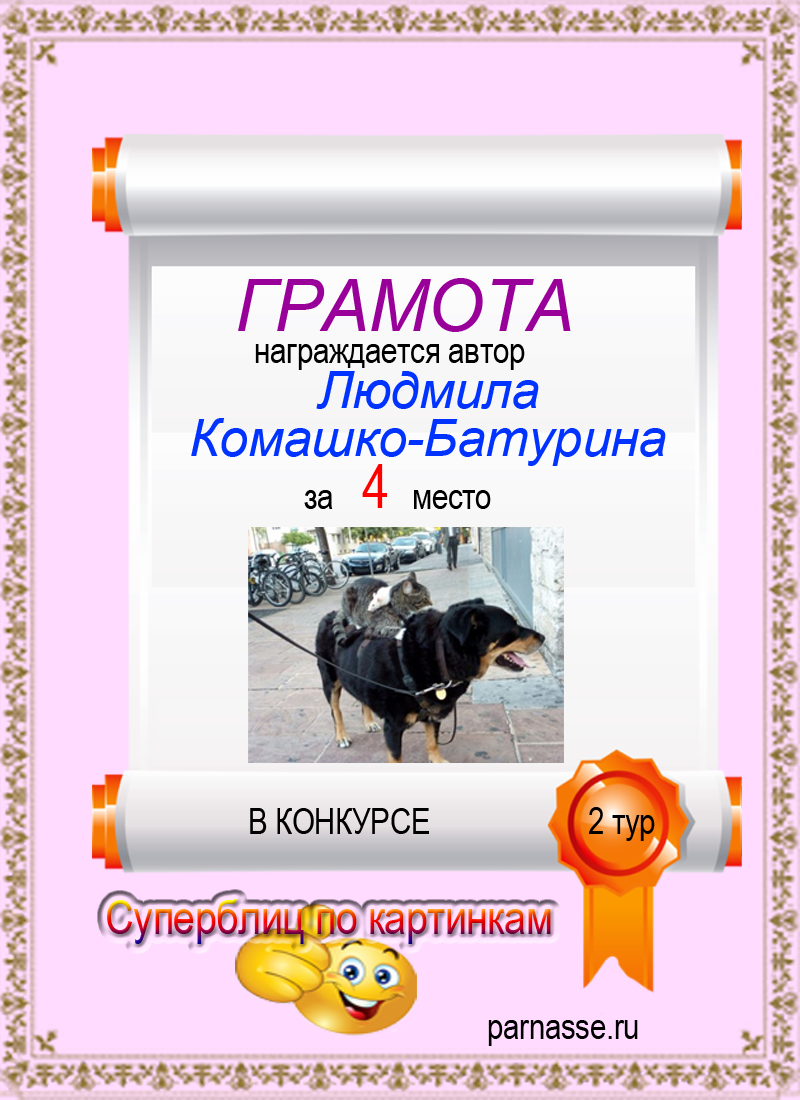 Первое место по итогам конкурса "Мой нежный и ласковый друг"