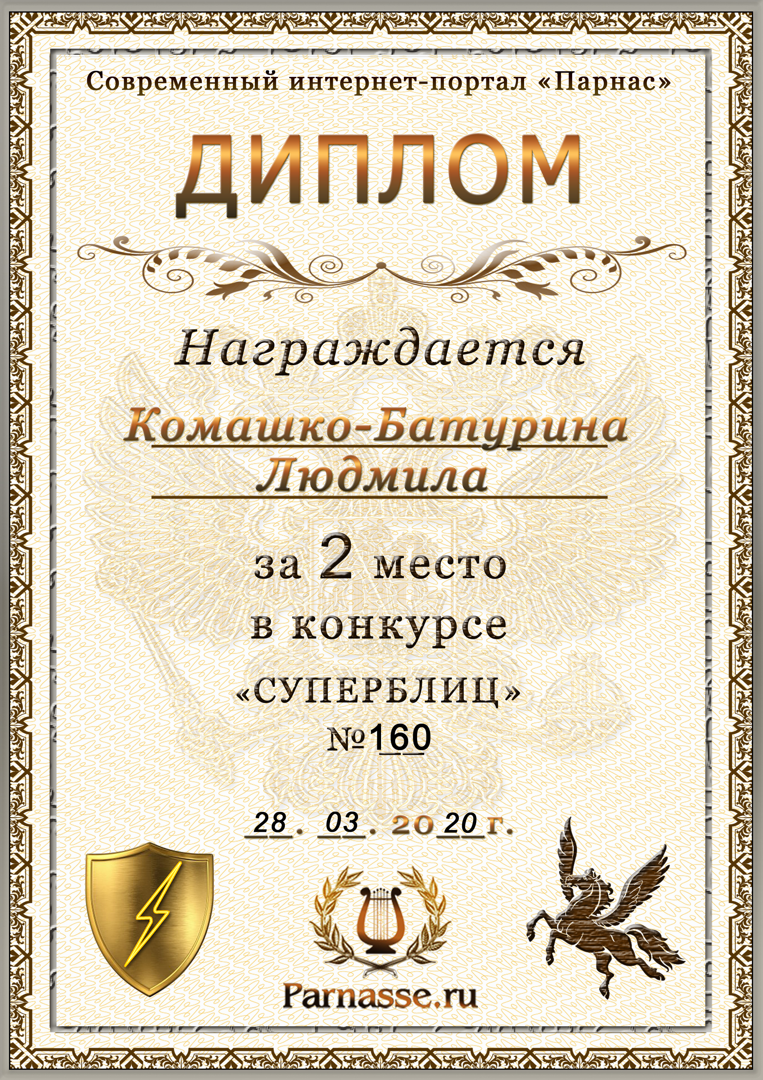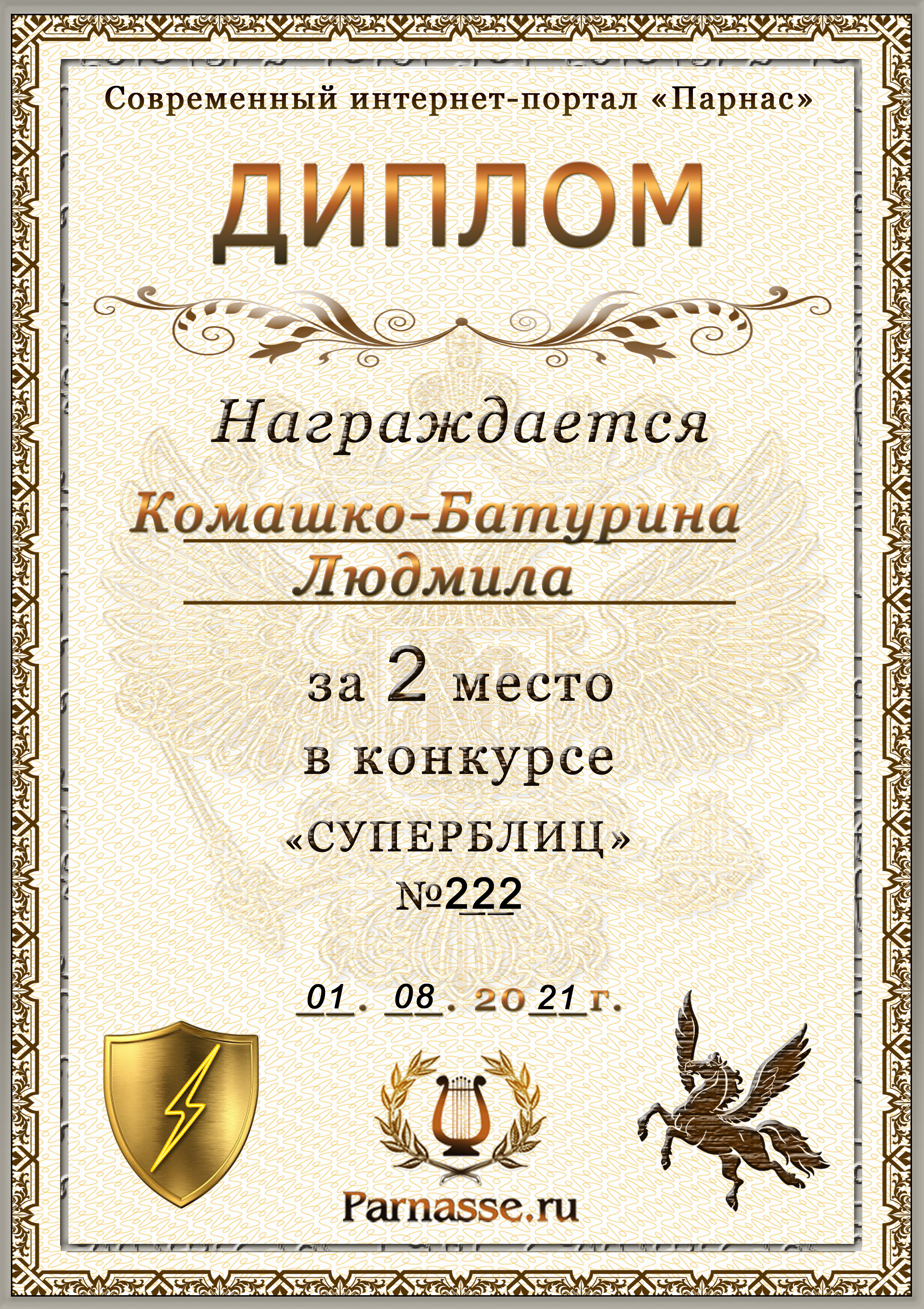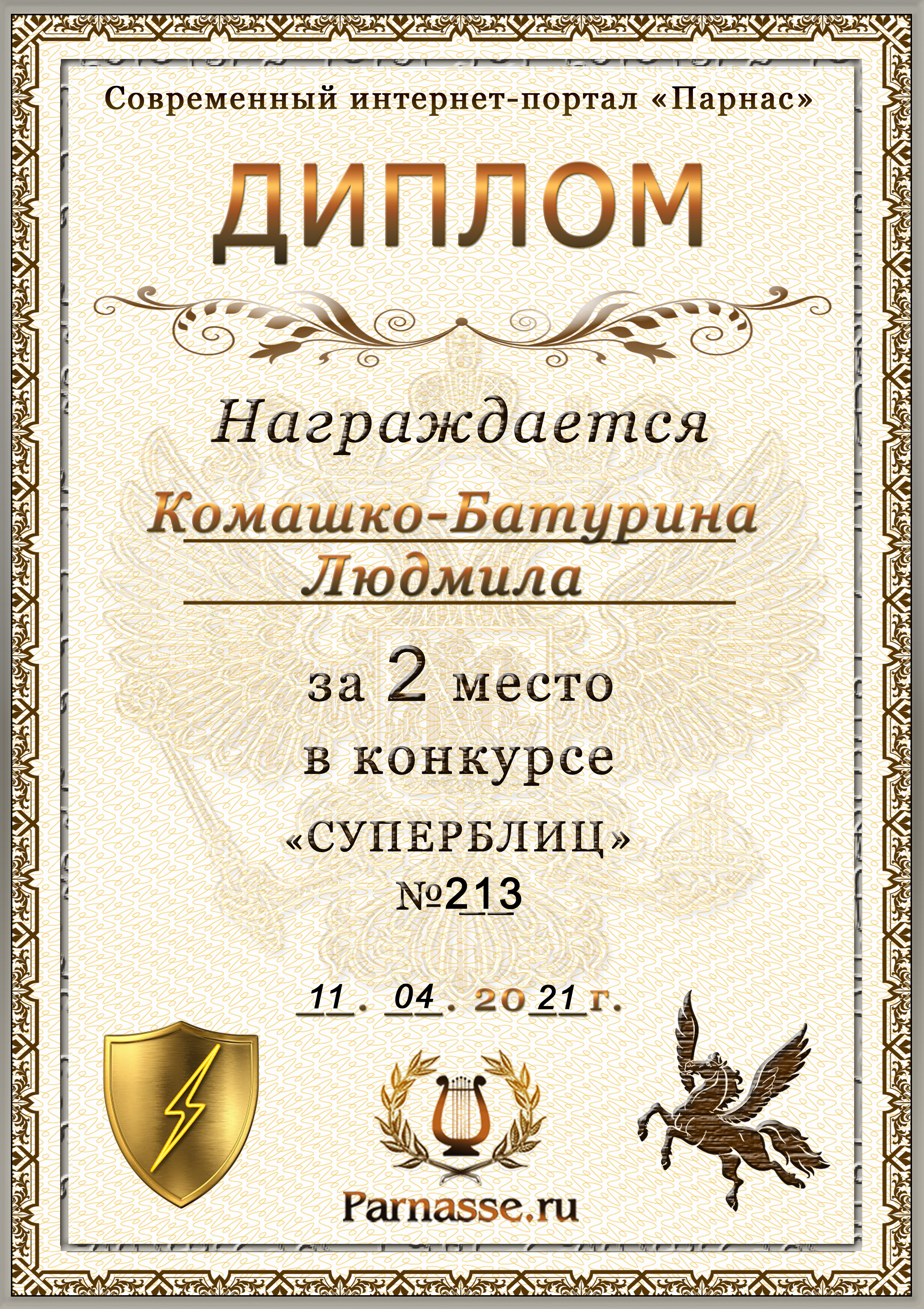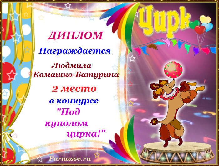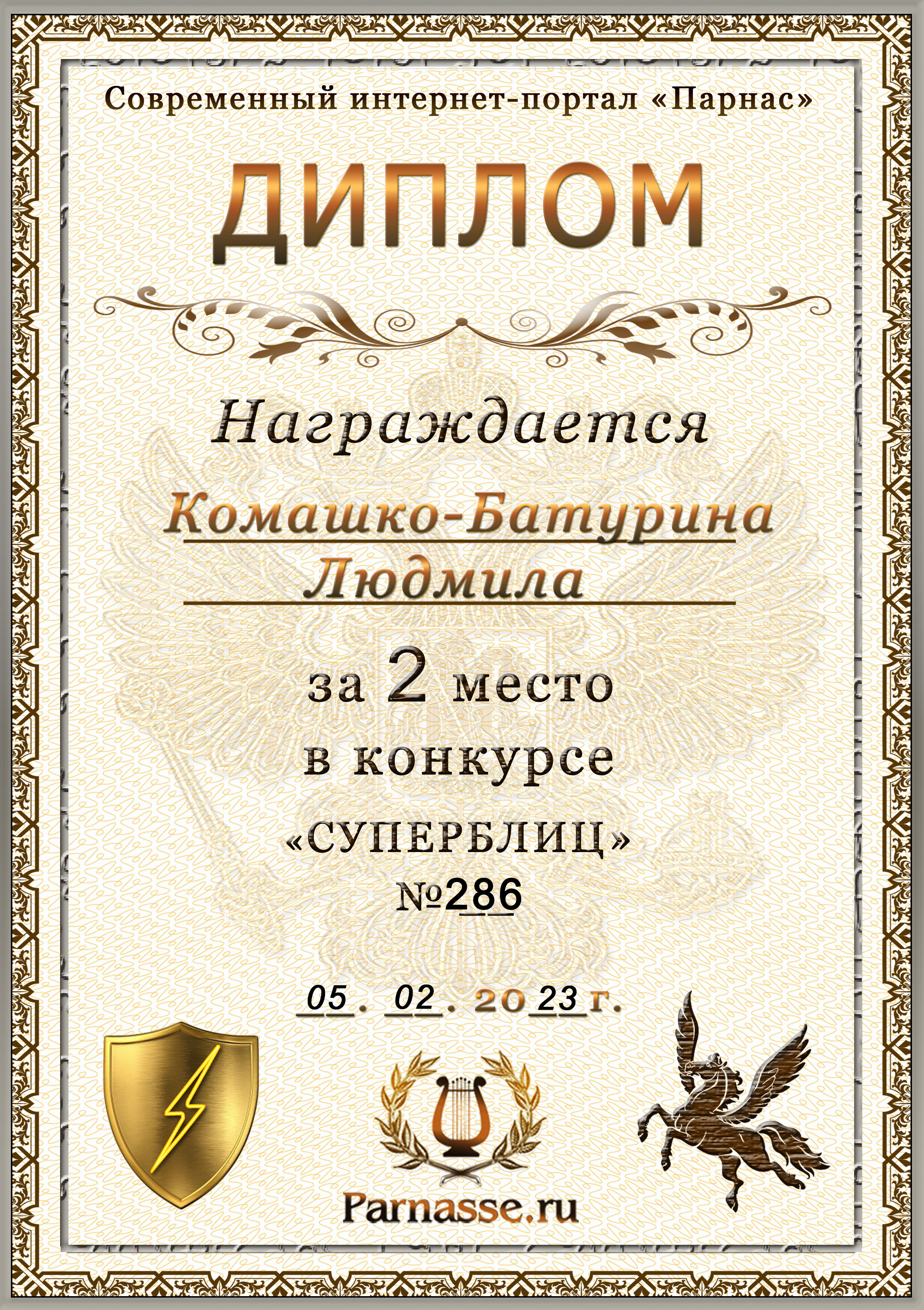 Диплом за 2 место во 2 туре в конкурсе СУПЕРБЛИЦА № 27!ПОЗДРАВЛЯЮ!