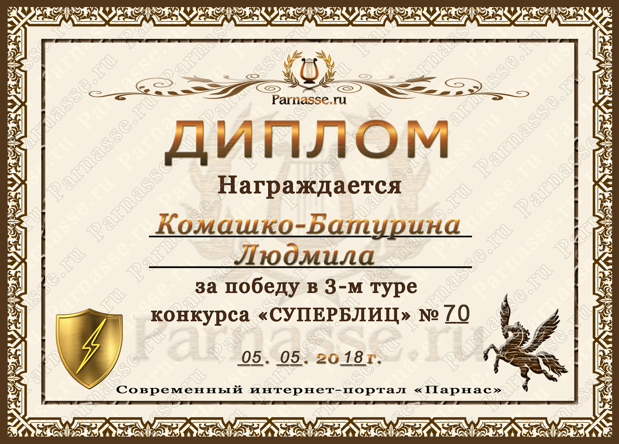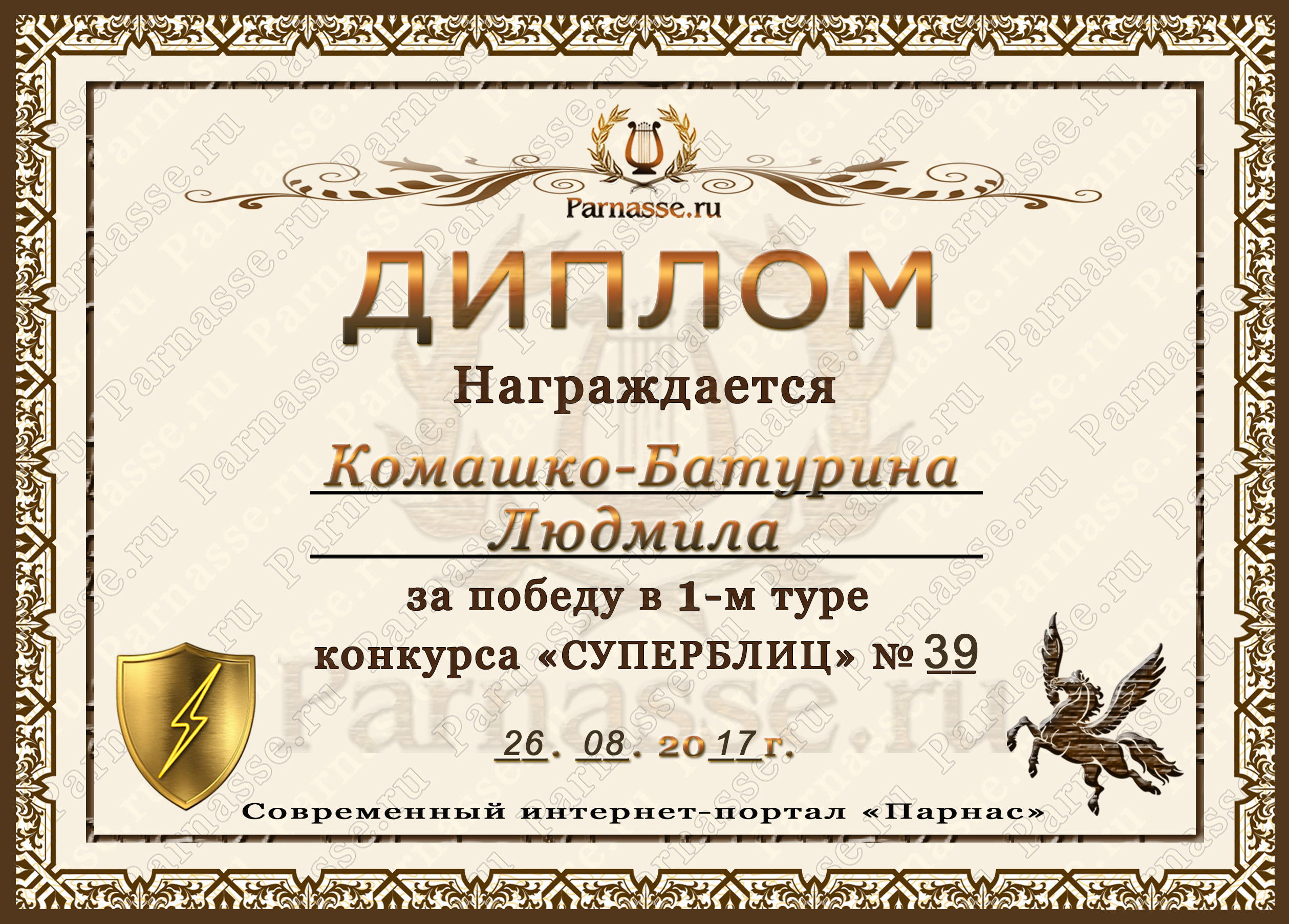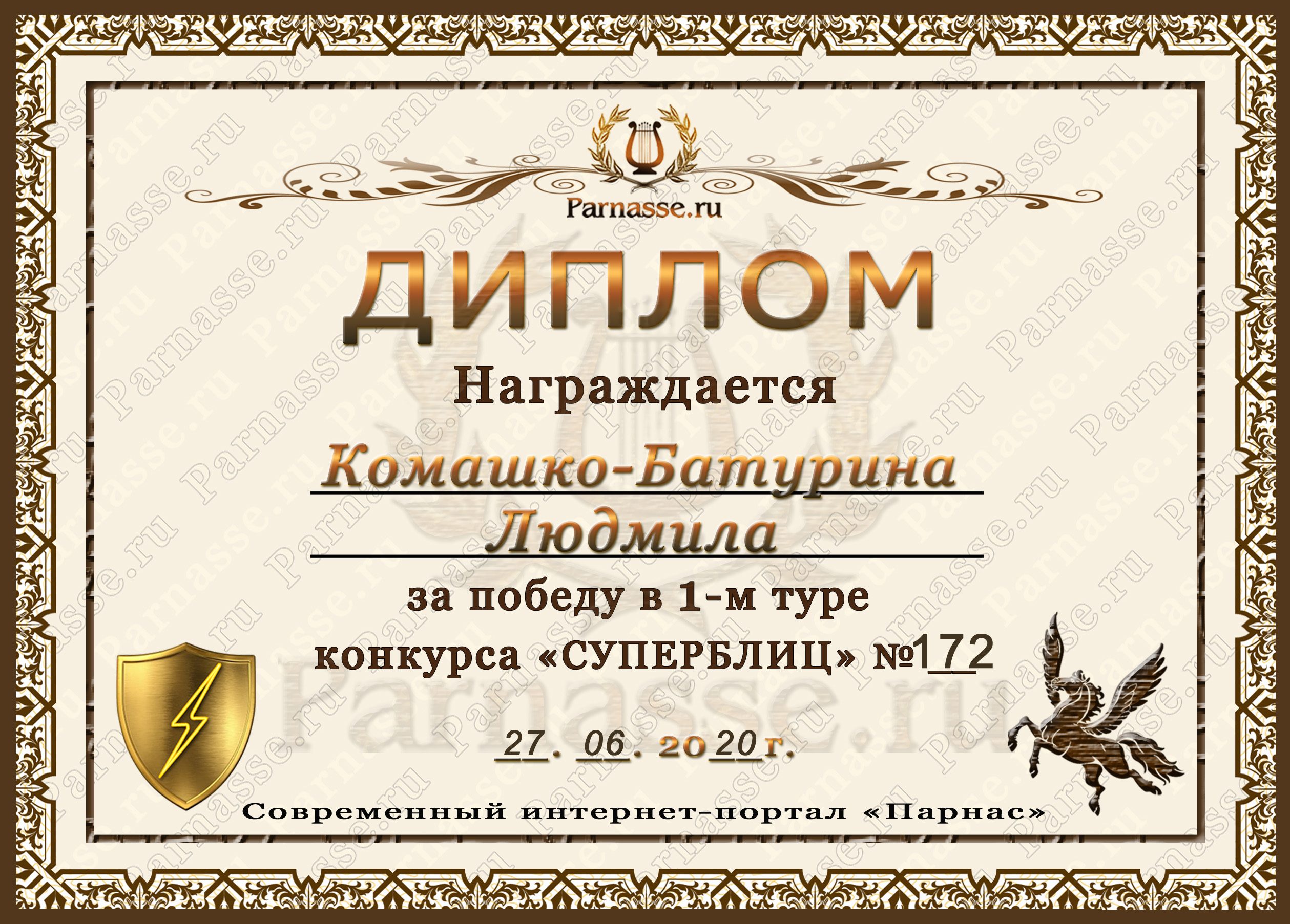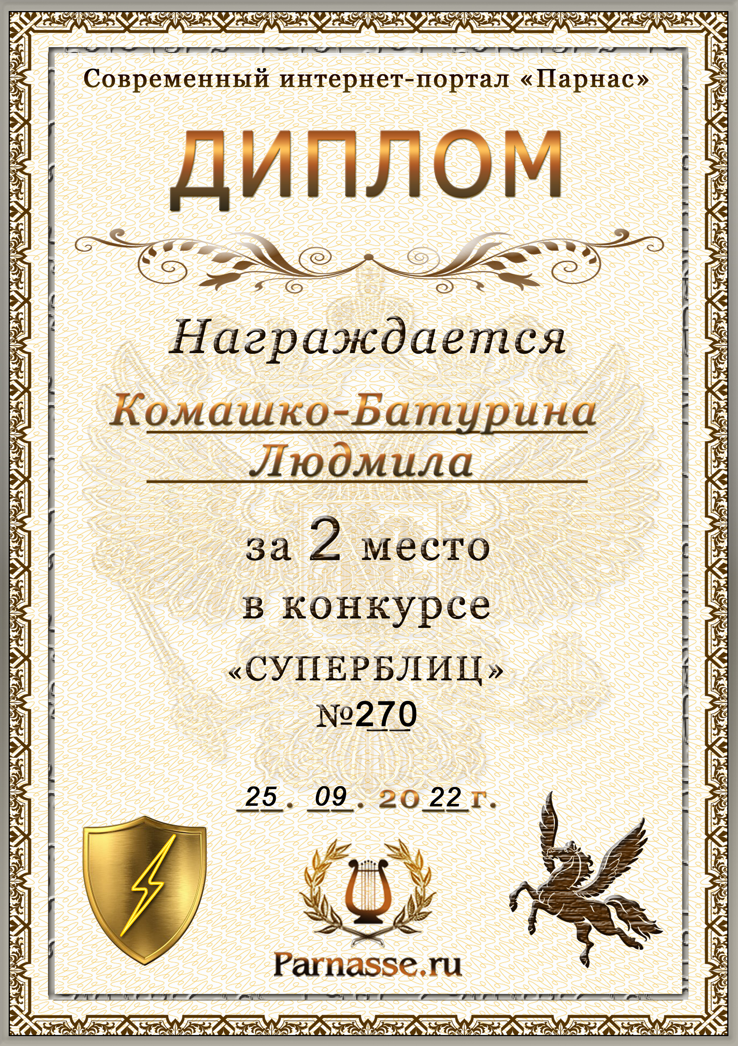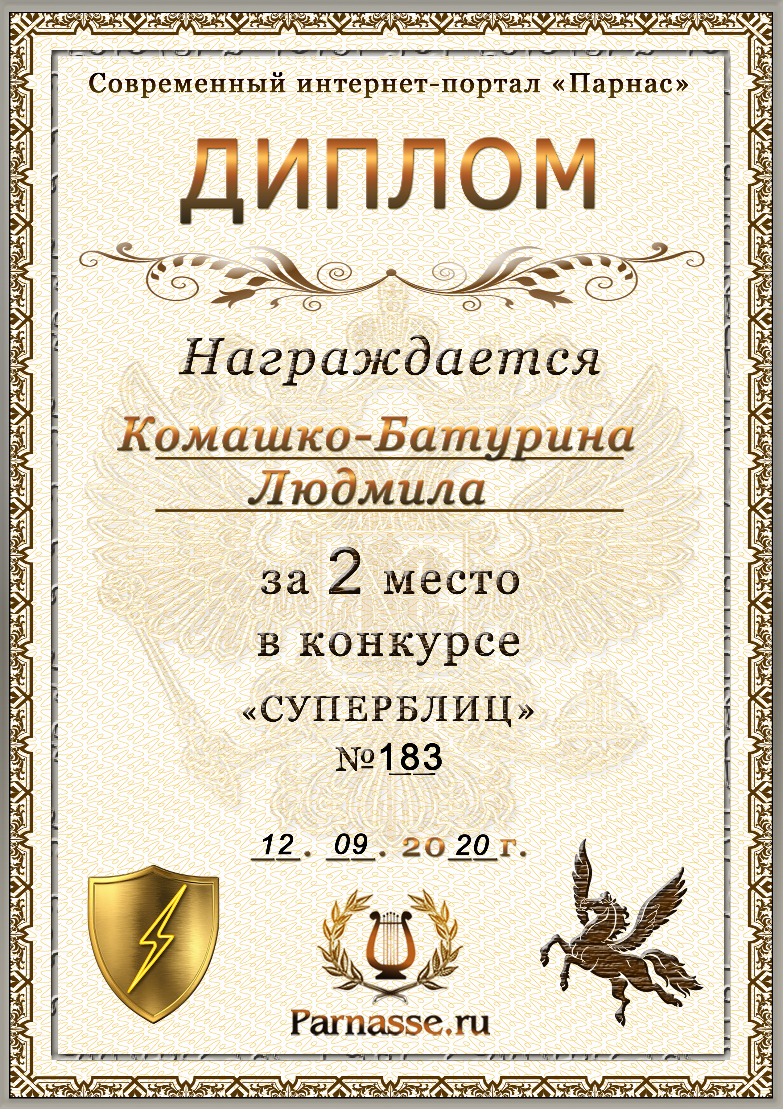 Диплом за 2 место во 2 туре в конкурсе СУПЕРБЛИЦА № 27!ПОЗДРАВЛЯЮ!