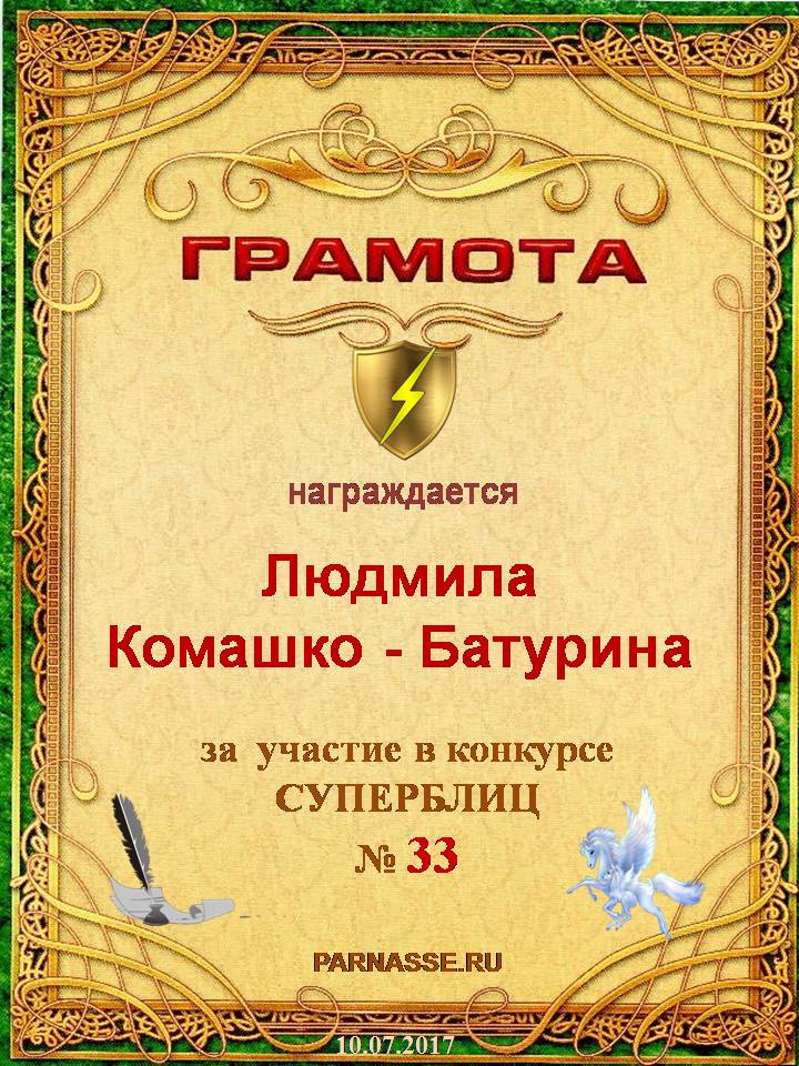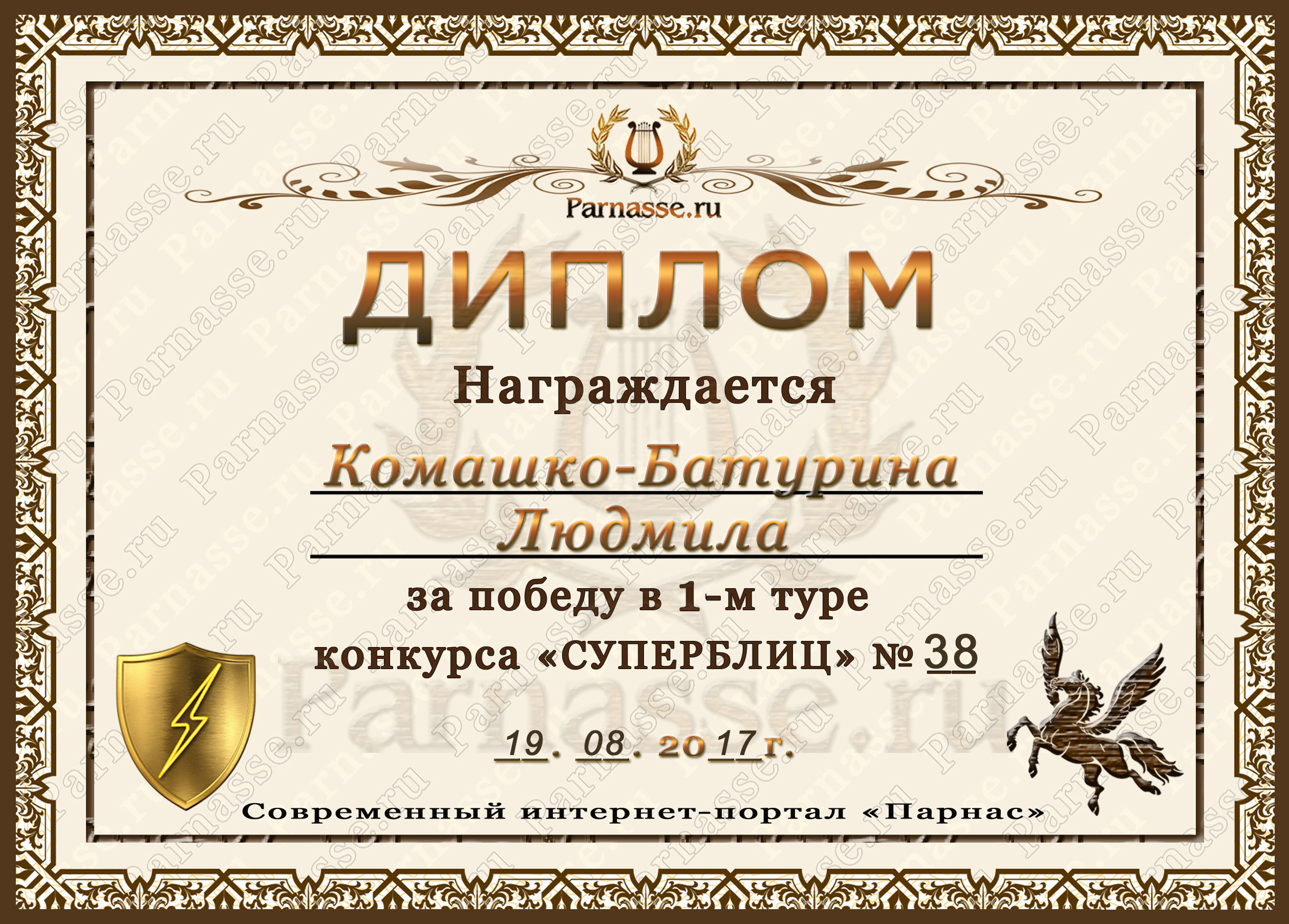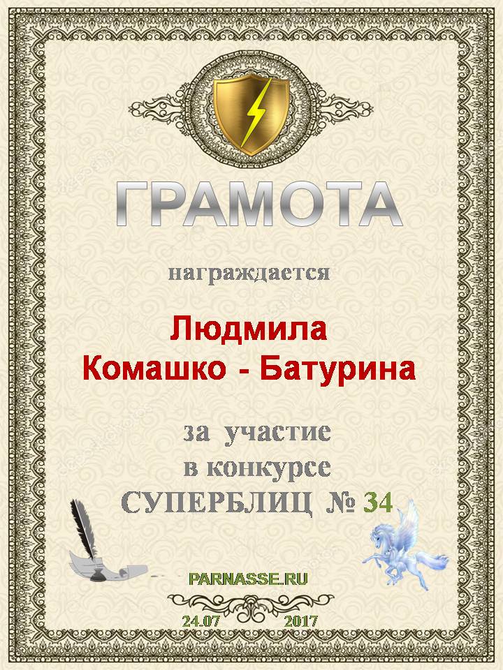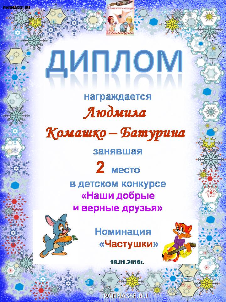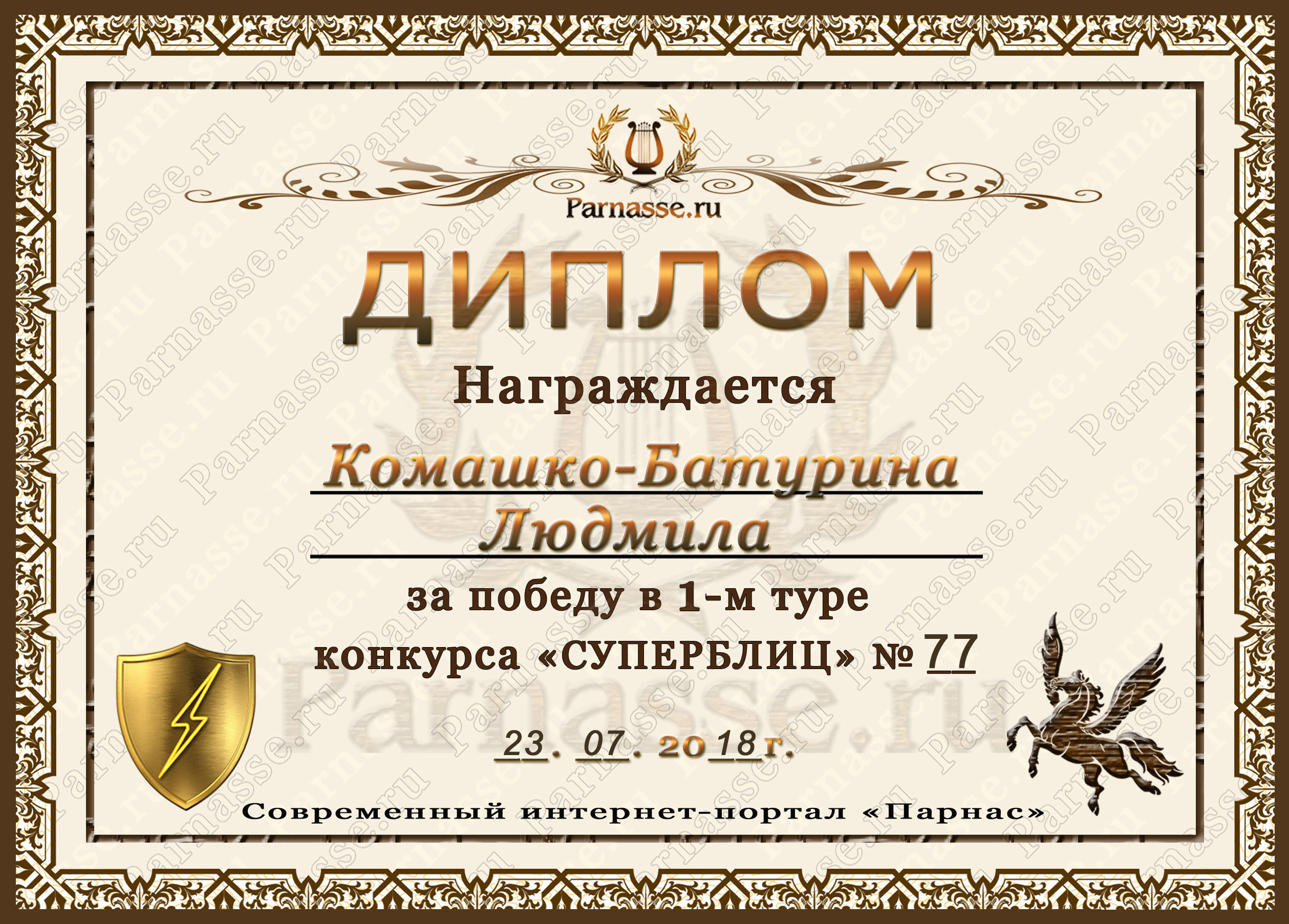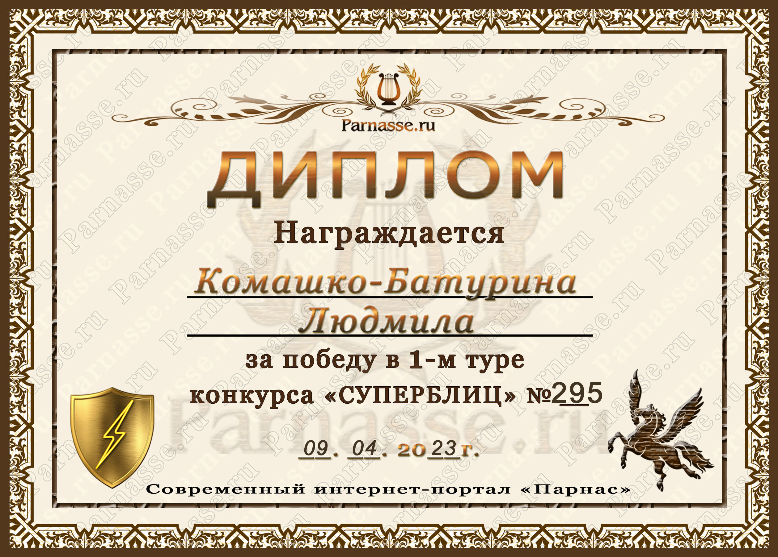 Диплом за 2 место во 2 туре в конкурсе СУПЕРБЛИЦА № 27!ПОЗДРАВЛЯЮ!