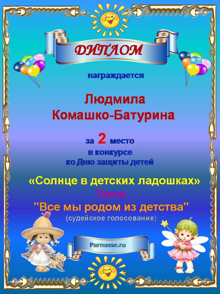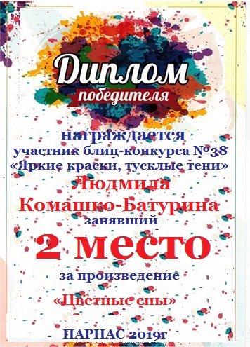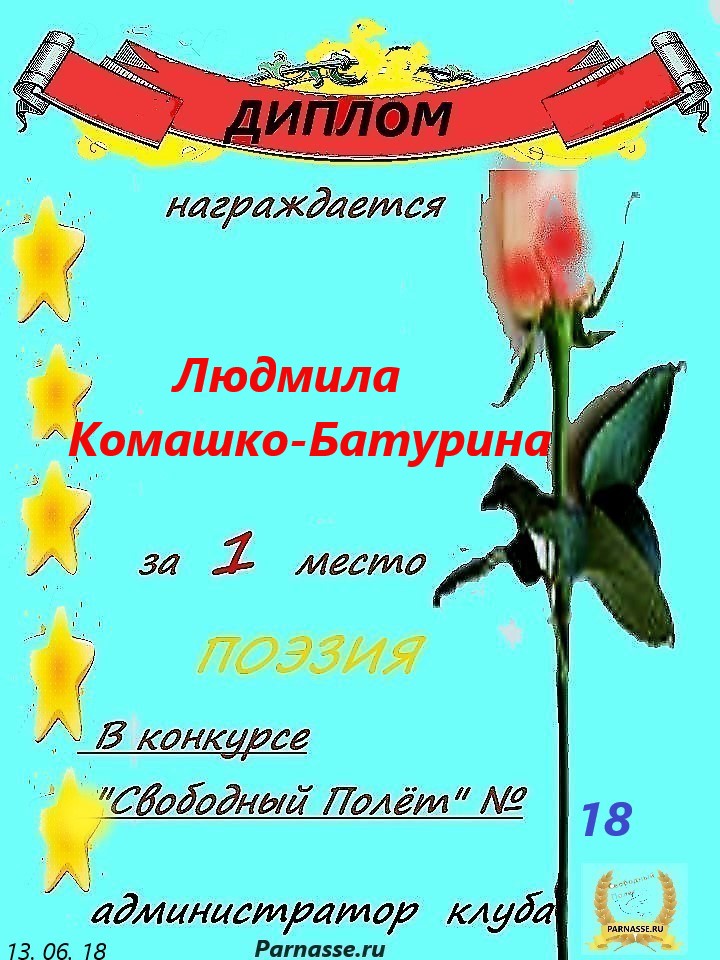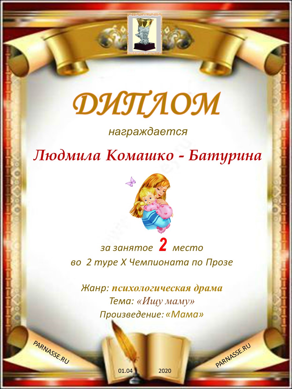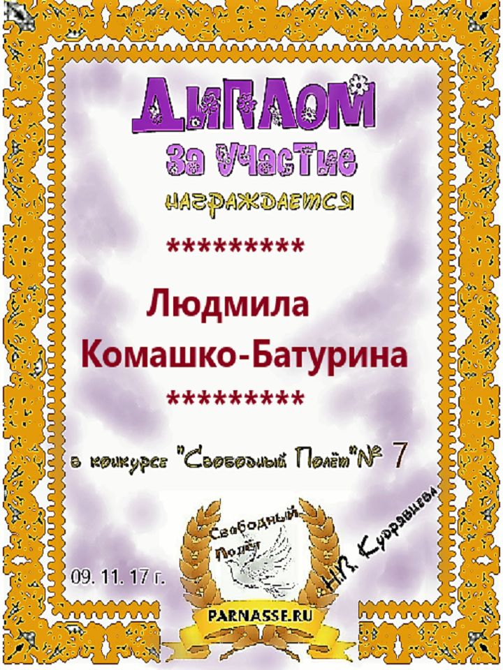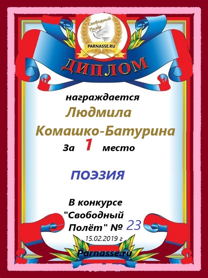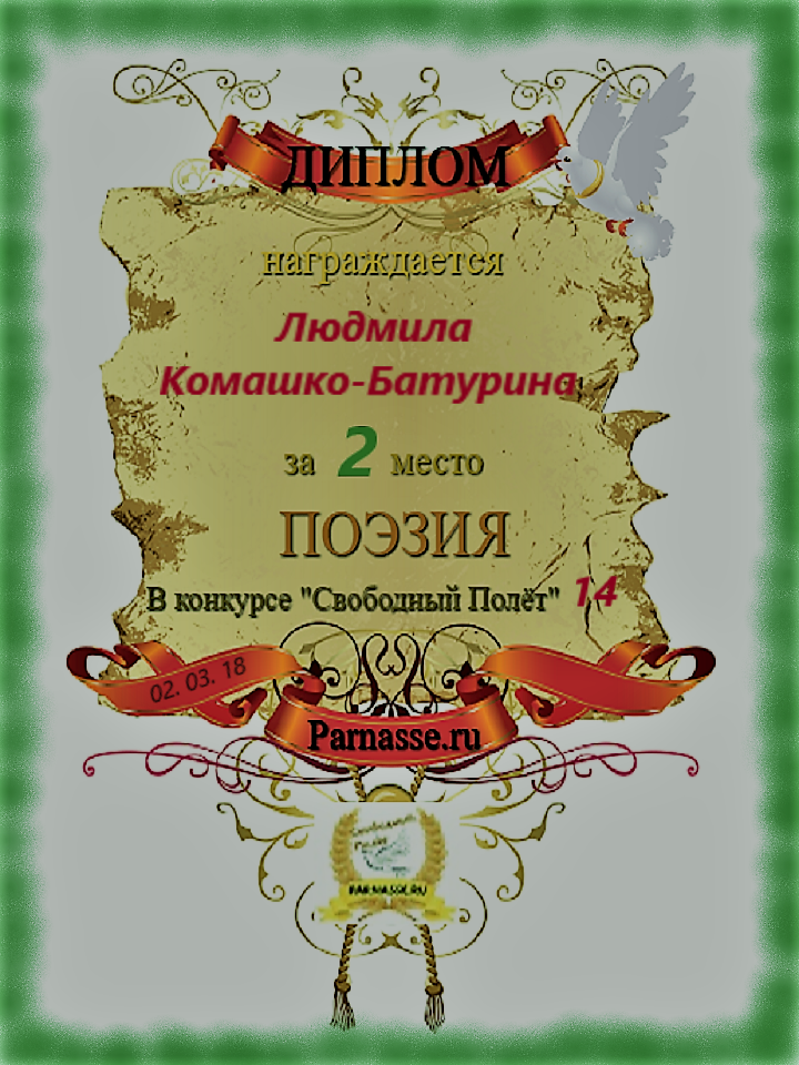 Диплом за 2 место "Полёт № 16", номинация - проза. Желаю новых творческих побед!