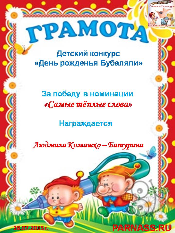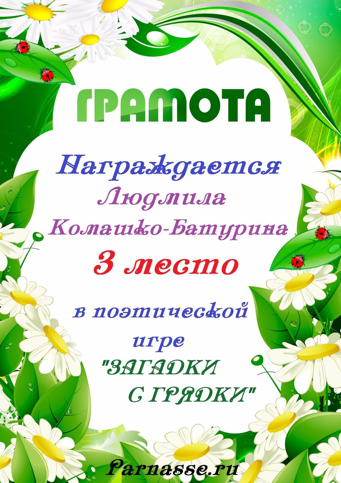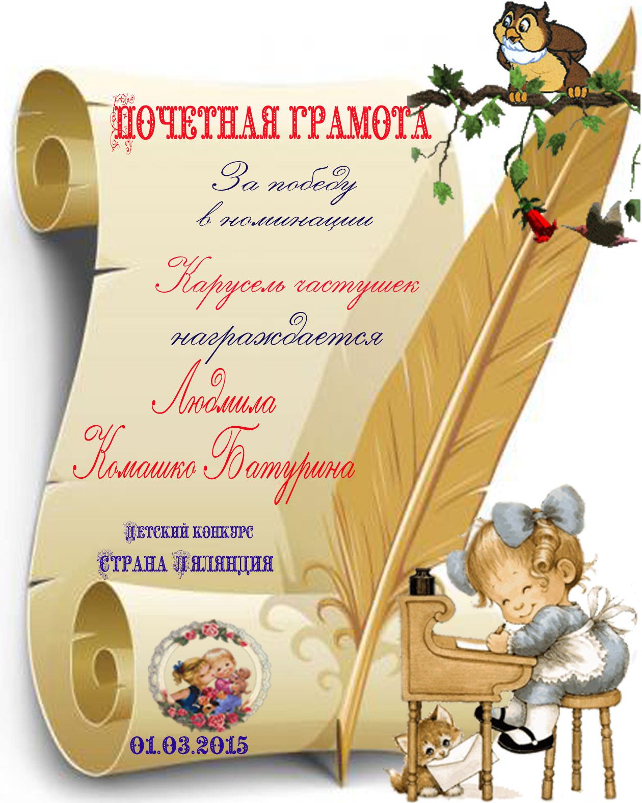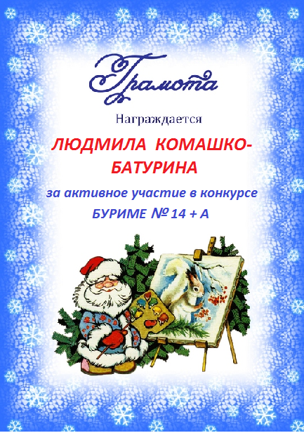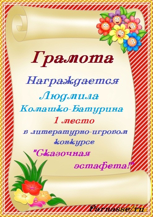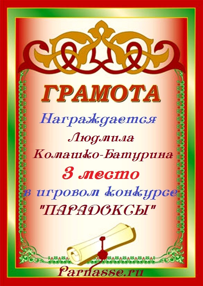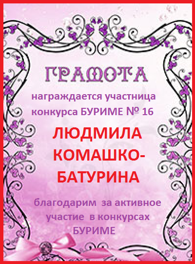Грамота за творческие успехи в литературно-игровом конкурсе "В гостях у буриме".ПОЗДРАВЛЯЕМ!