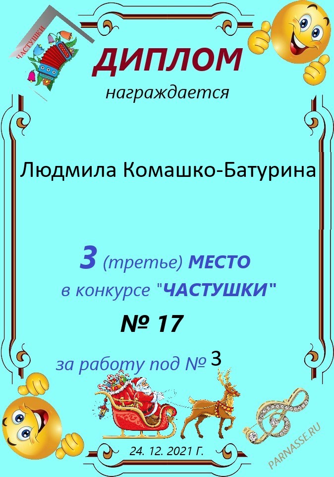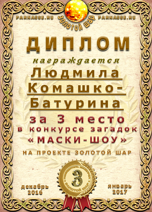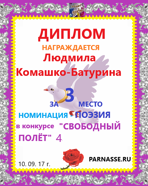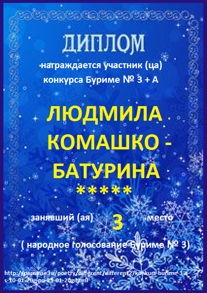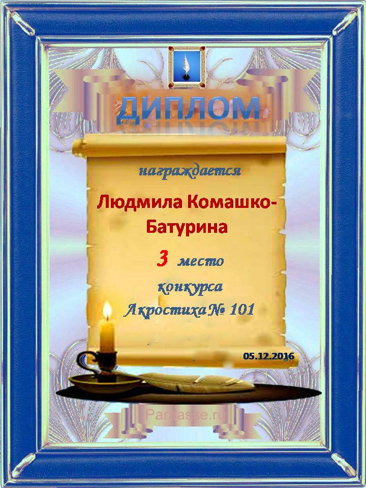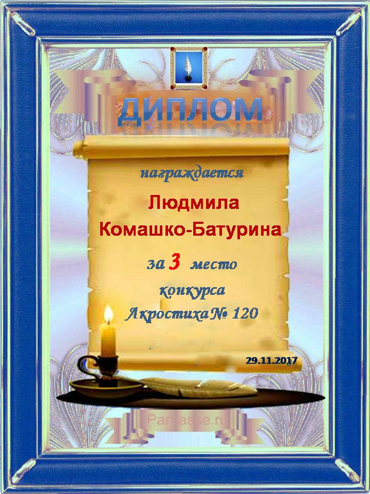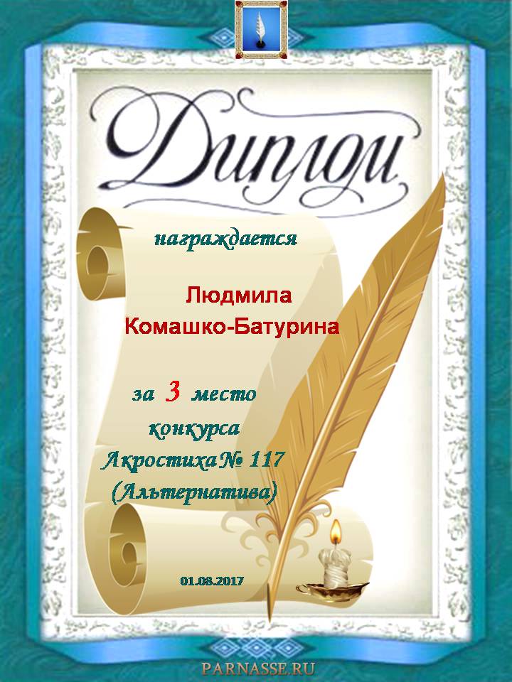 Диплом за 3 место в 117 конкурсе АКРОСТИХА (Альтернатива)! ПОЗДРАВЛЯЮ!