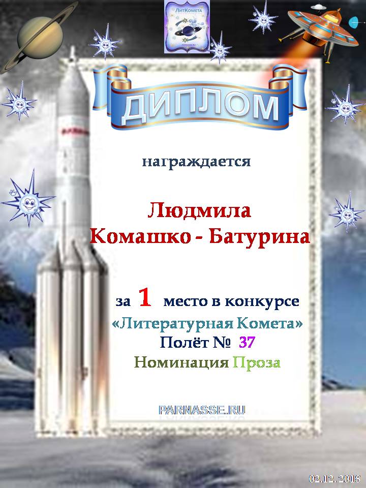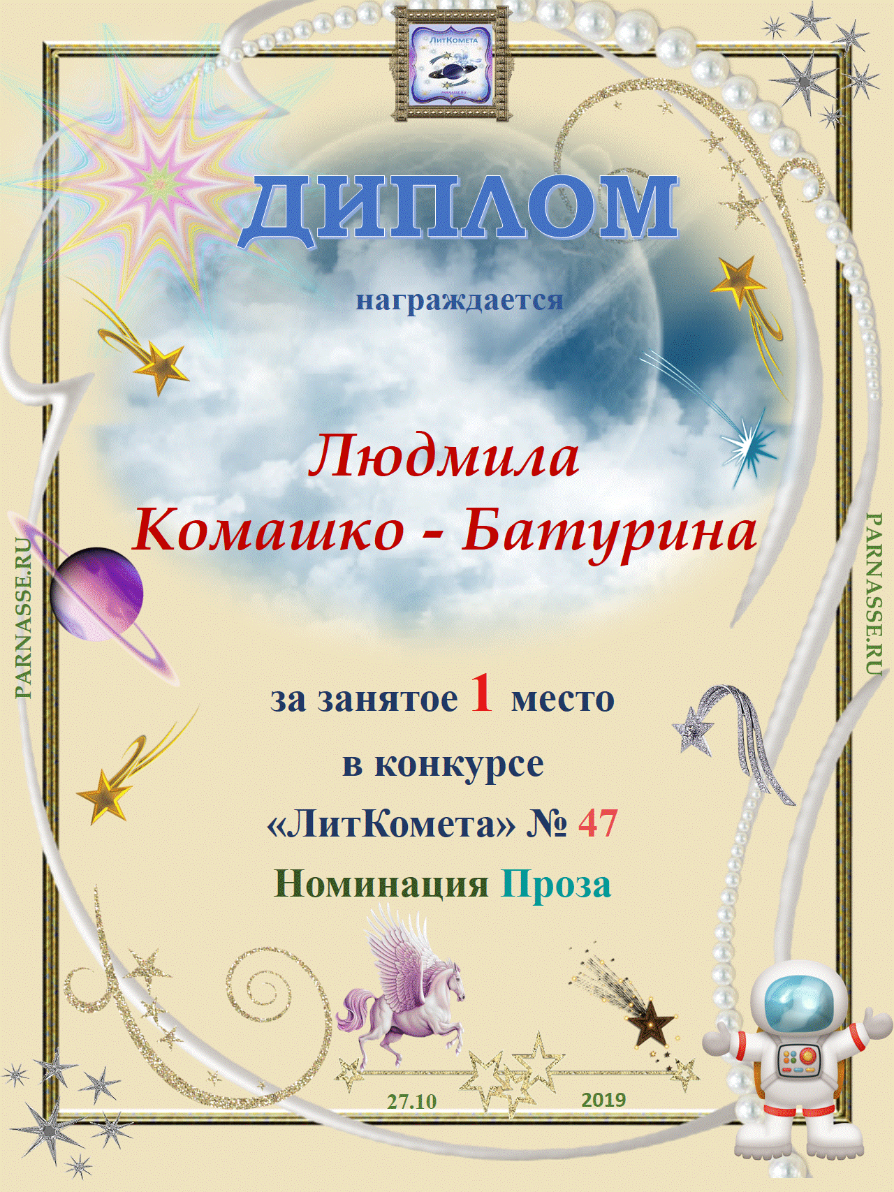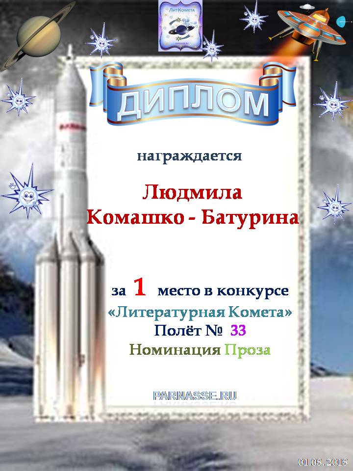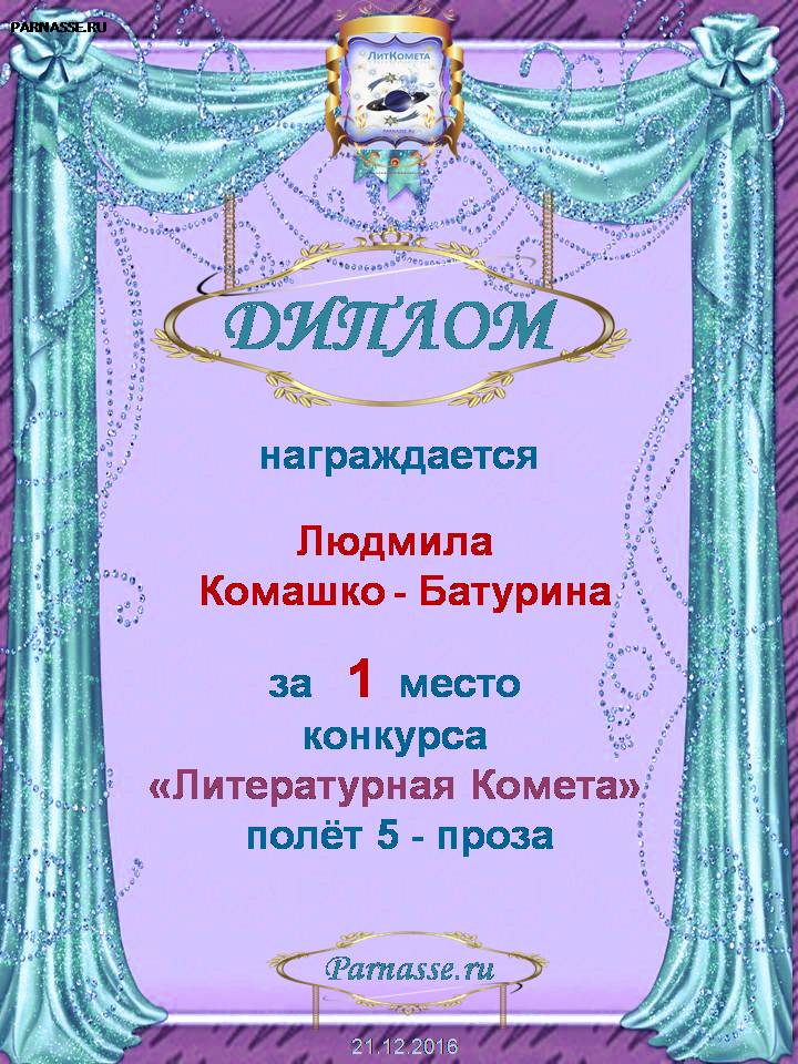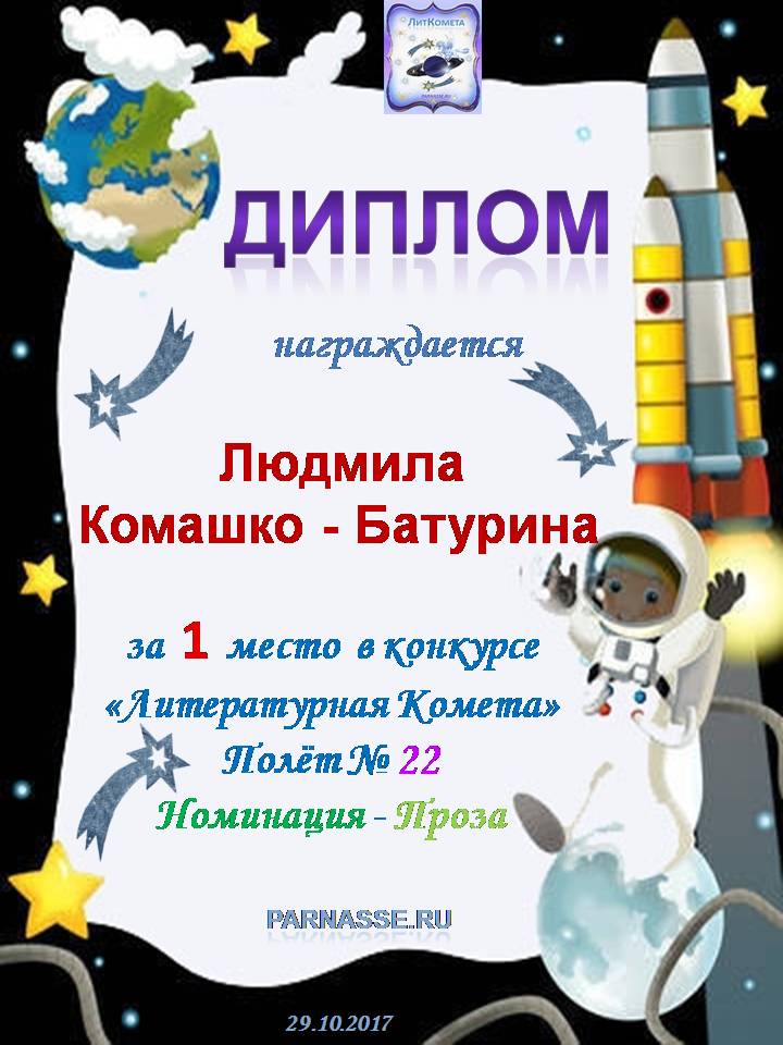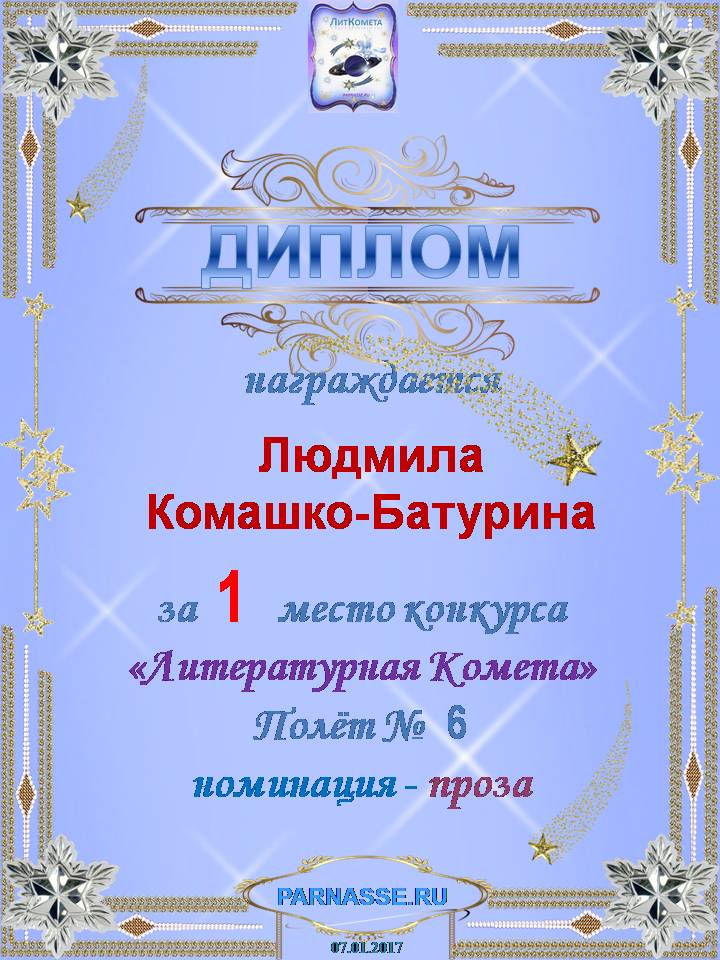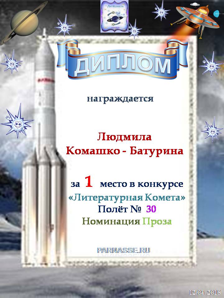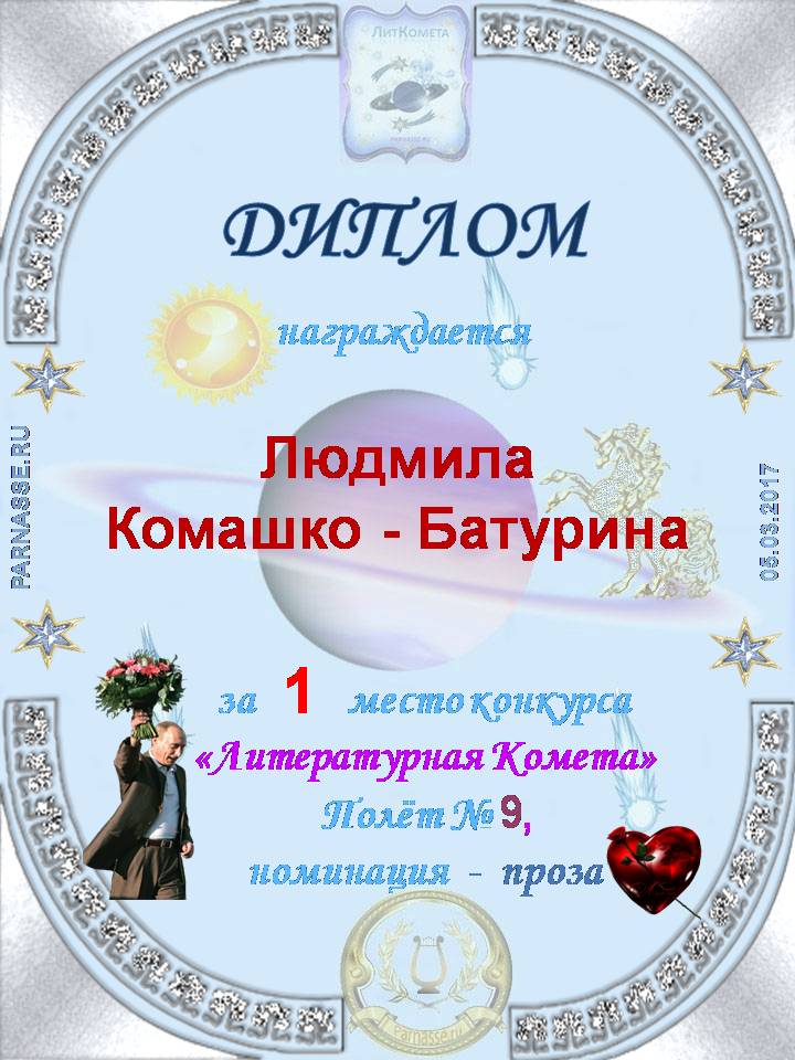 Диплом за 1 место в конкурсе "ЛитКомета"- Полёт № 9 - проза