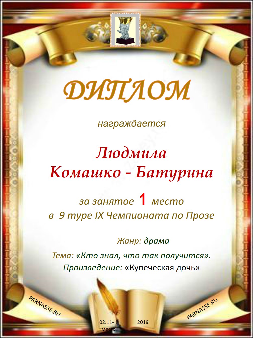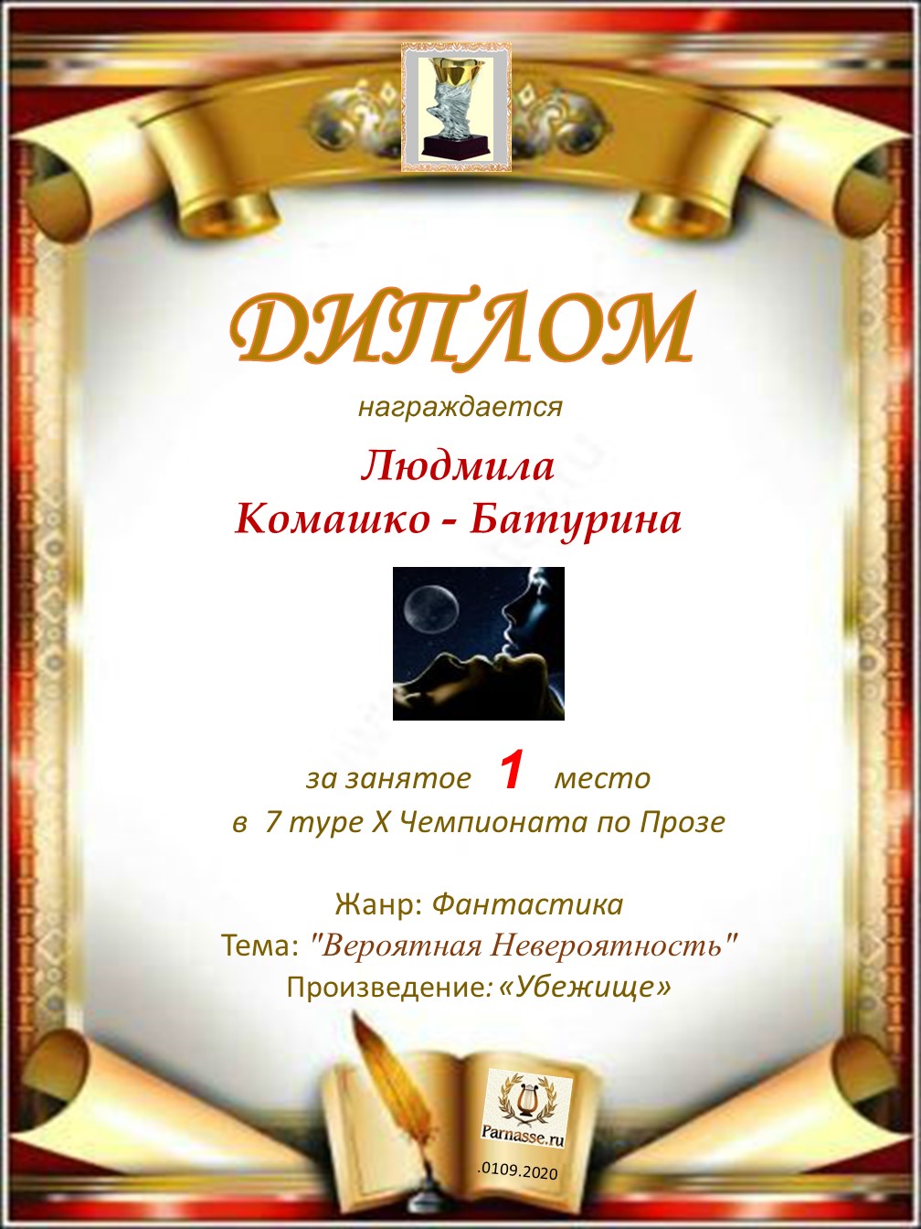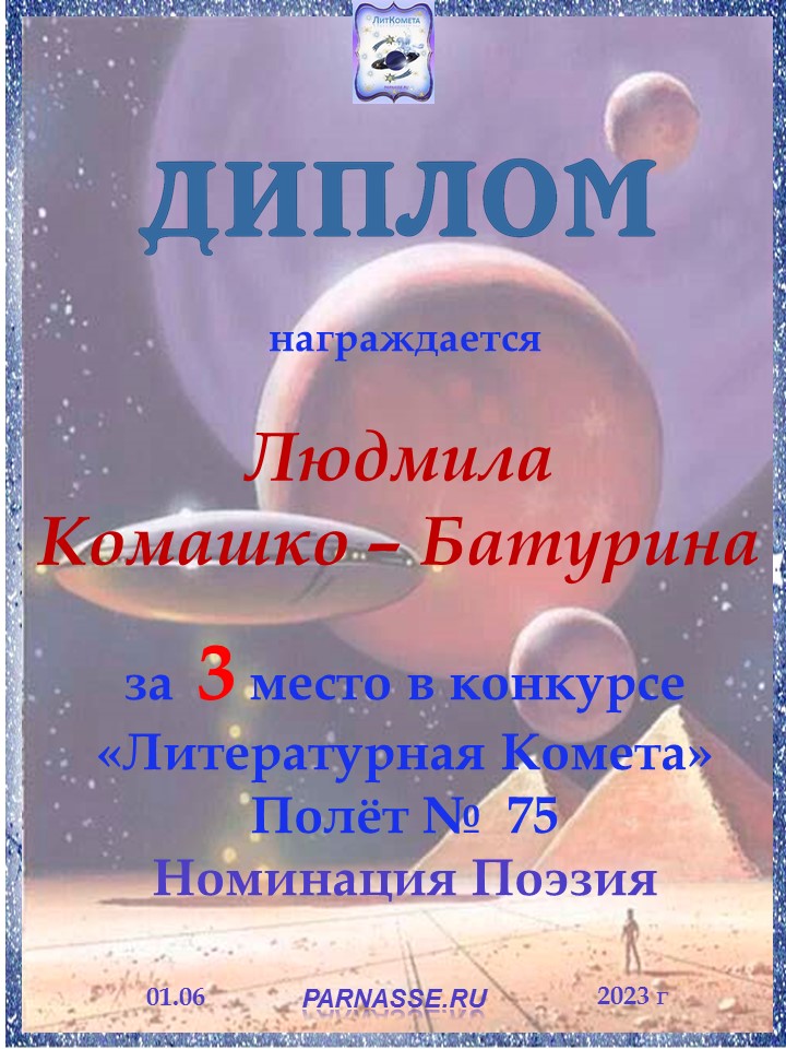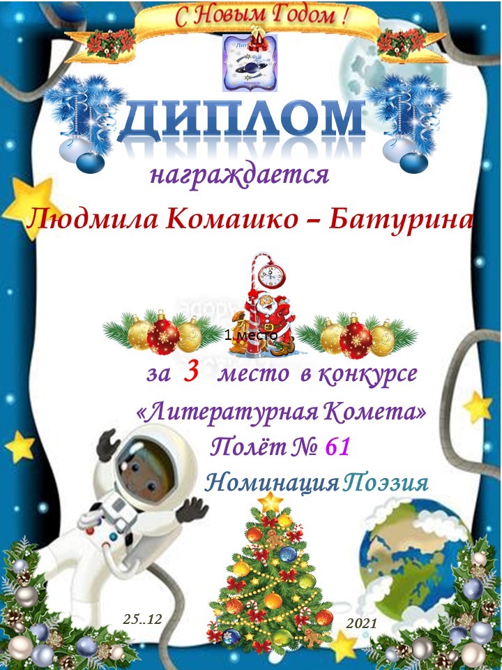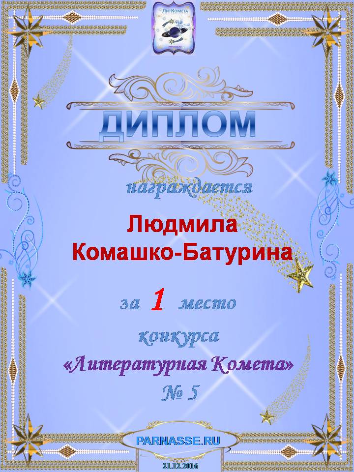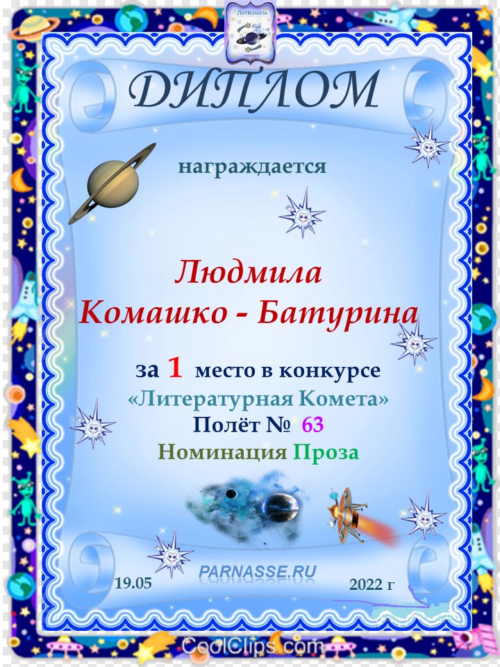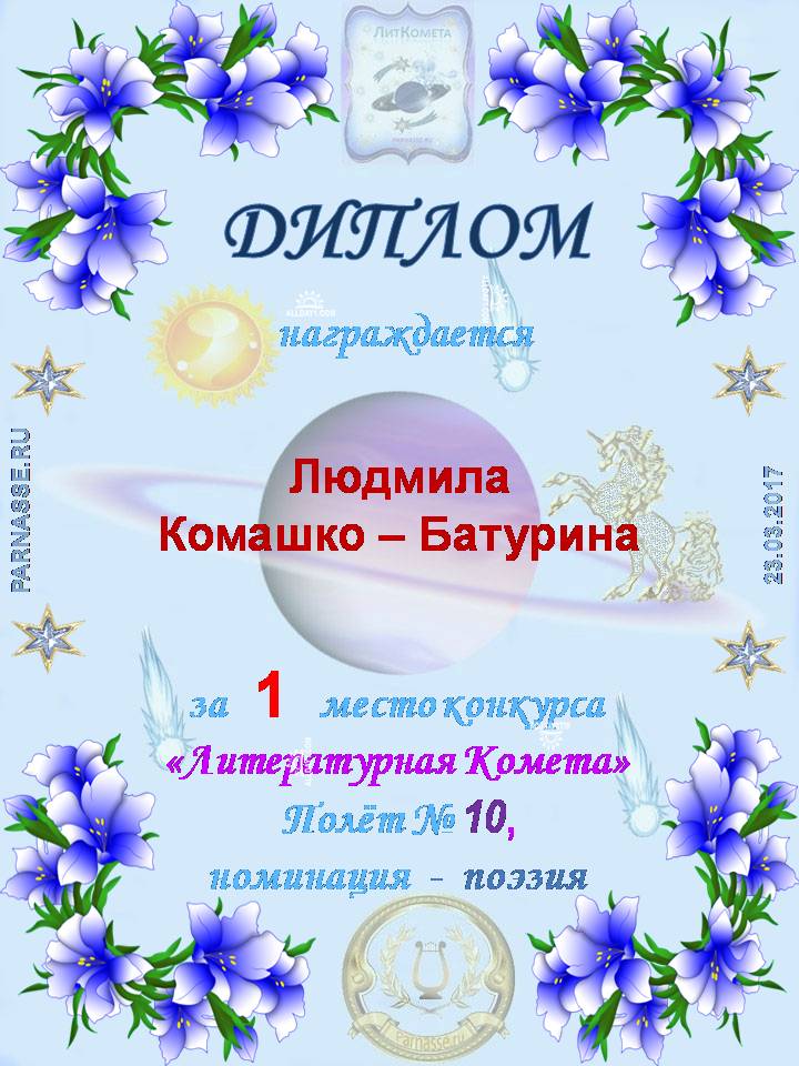 Диплом за 1 место в конкурсе "ЛитКомета"- Полёт № 9 - проза