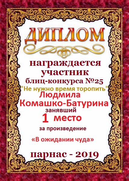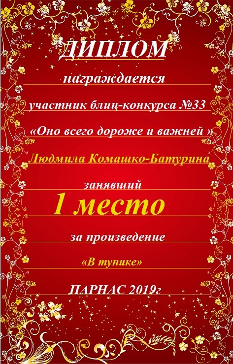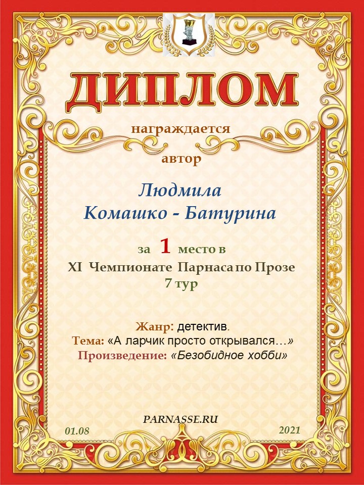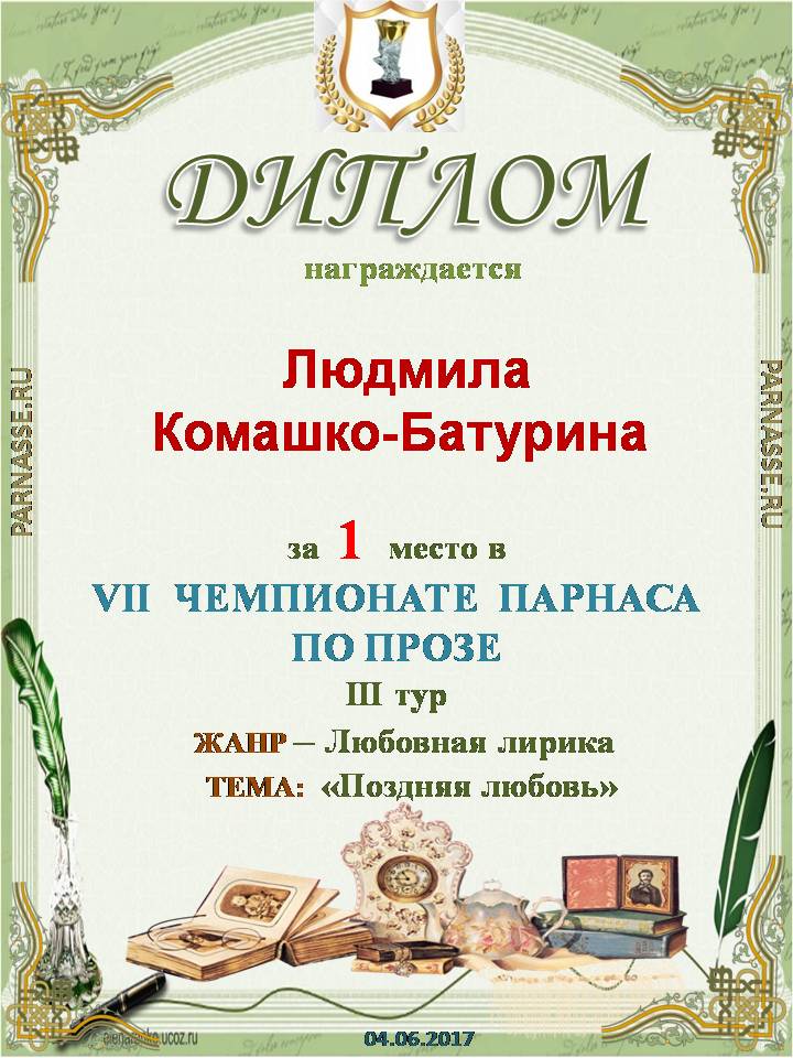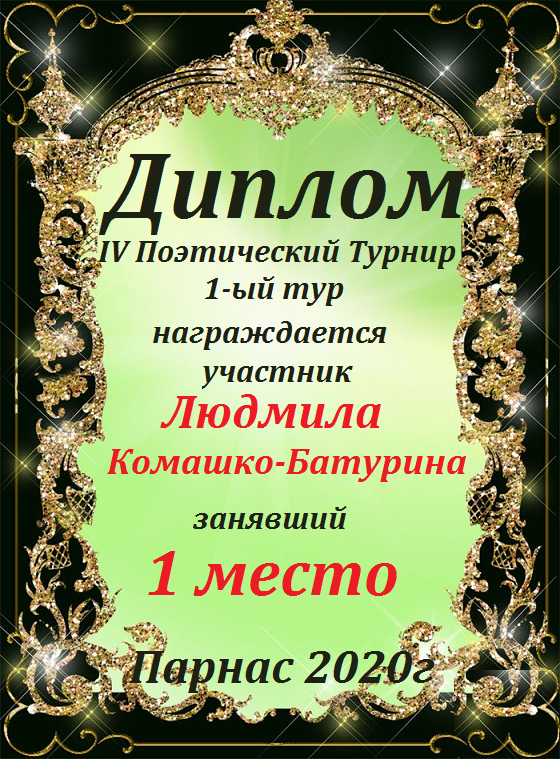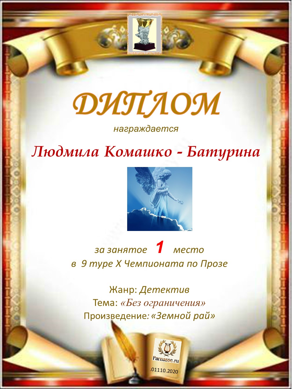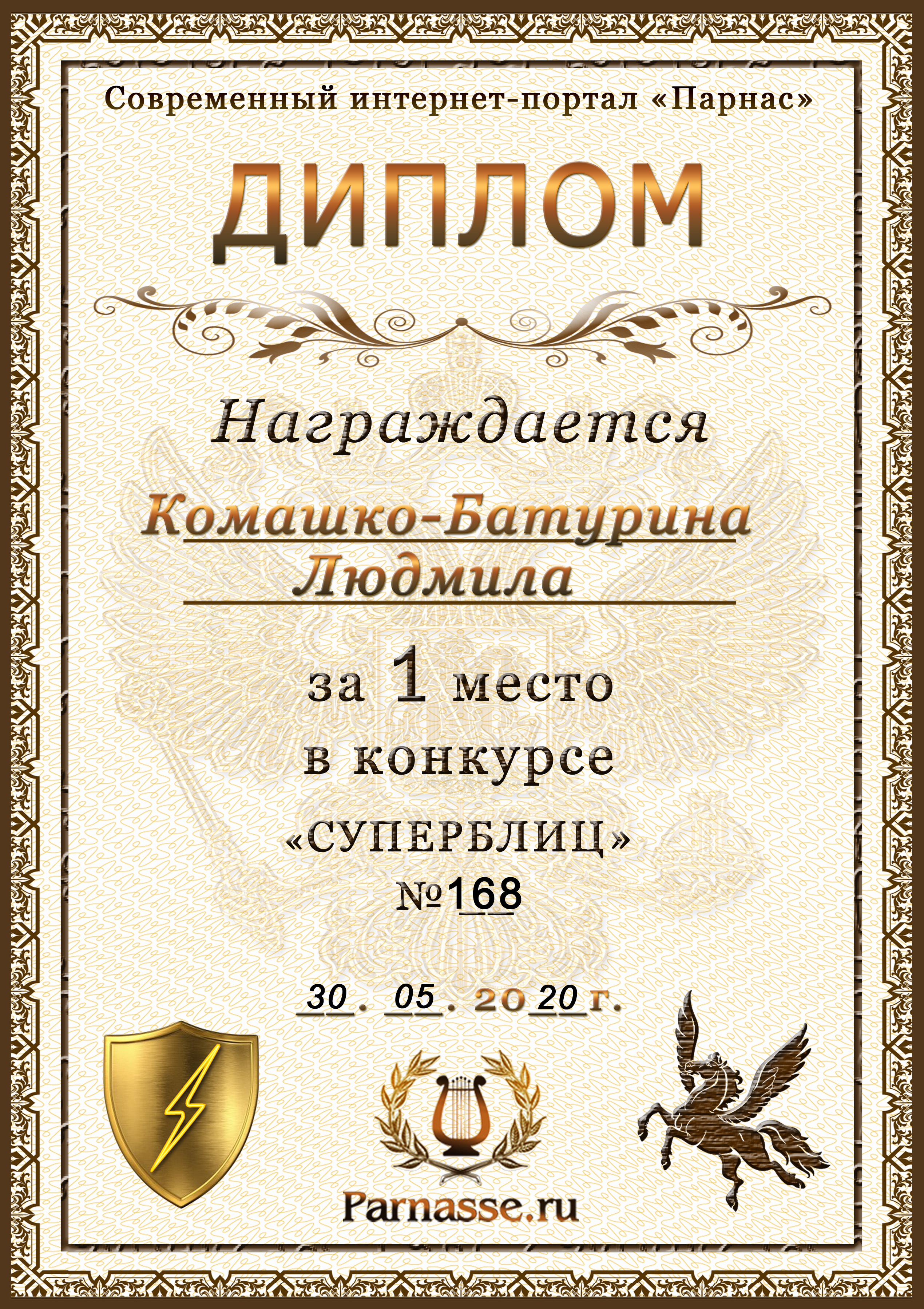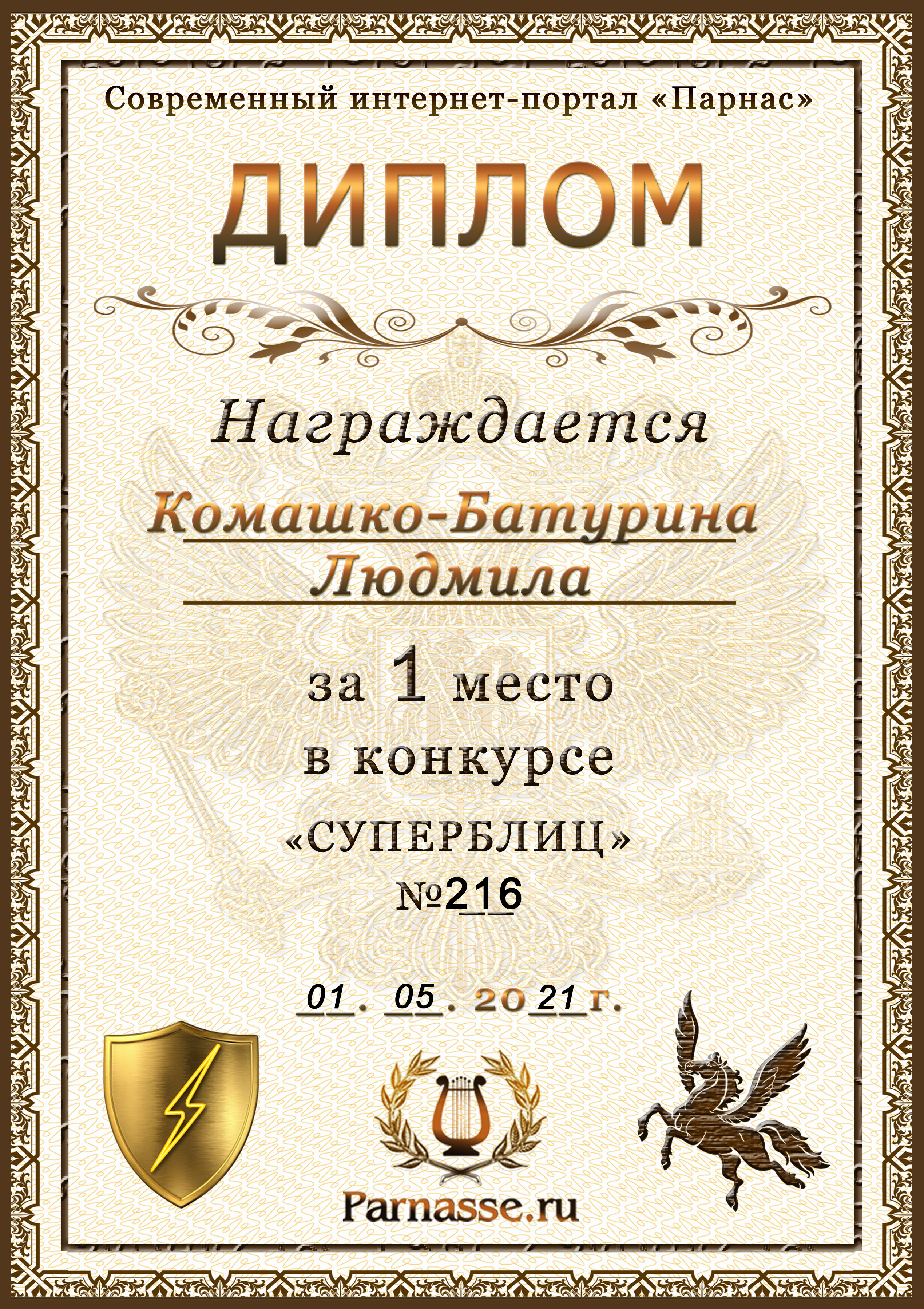 Диплом за 1 место в конкурсе "ЛитКомета"- Полёт № 9 - проза
