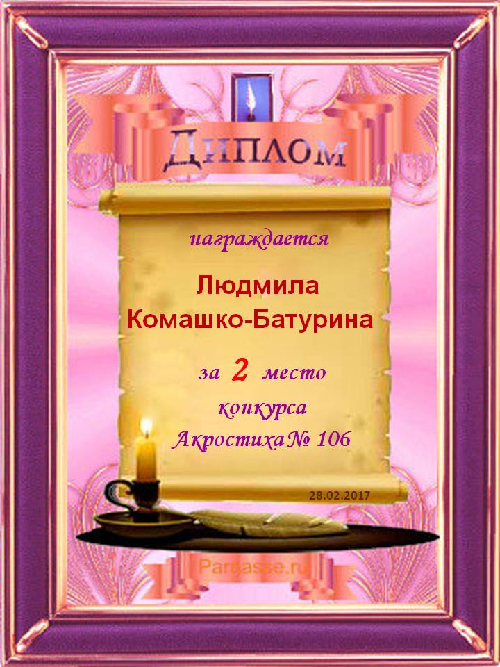 Грамота за 5 место в 106 конкурсе АКРОСТИХА (Альтернатива)! ПОЗДРАВЛЯЮ!