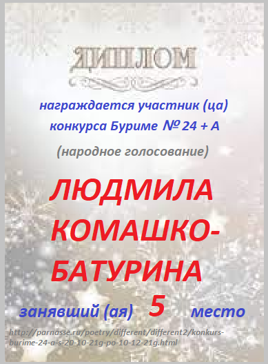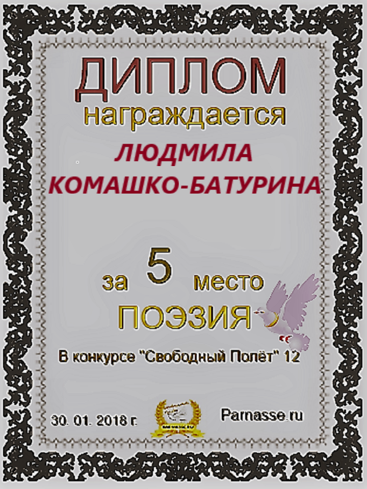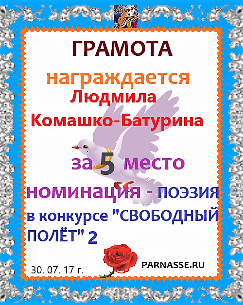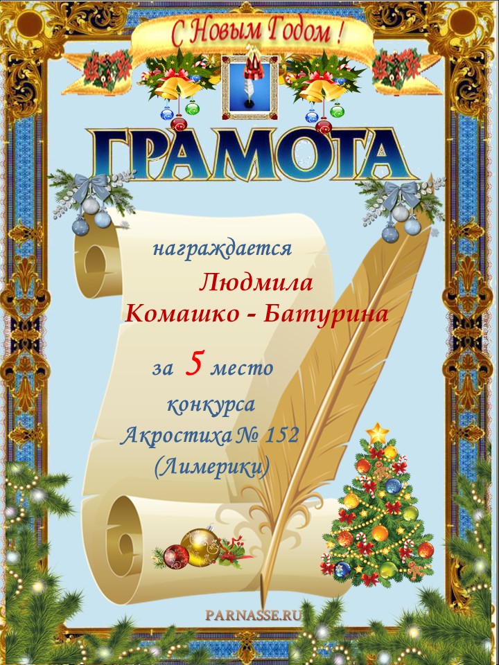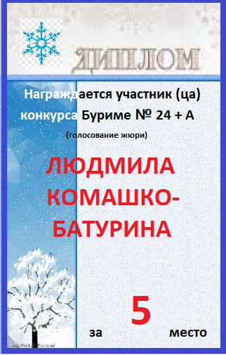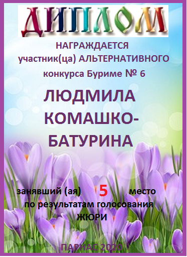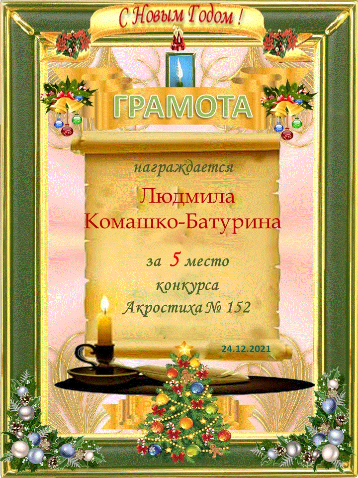 Грамота за 5 место в 116 конкурсе АКРОСТИХА (Альтернатива)! ПОЗДРАВЛЯЮ!