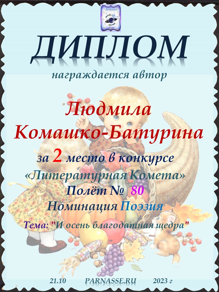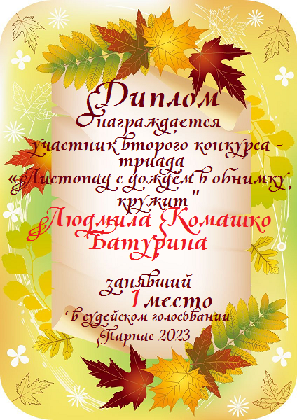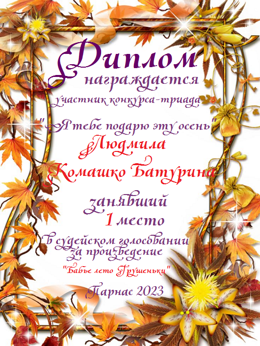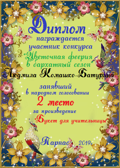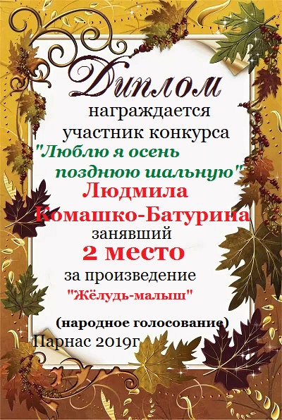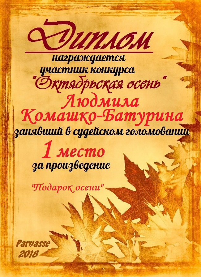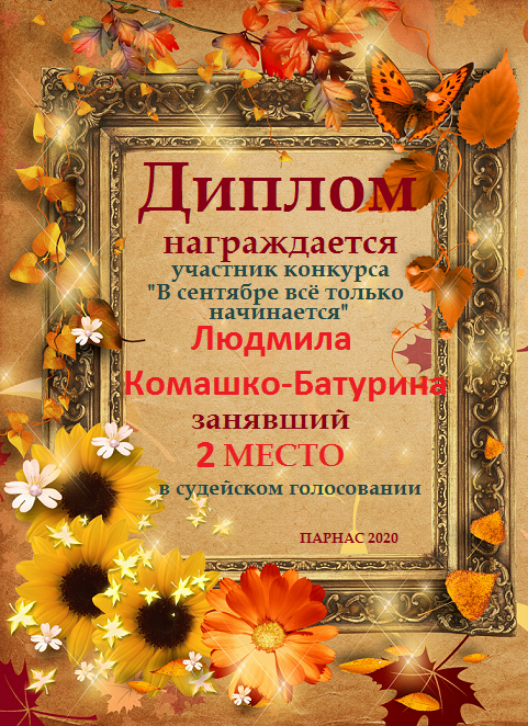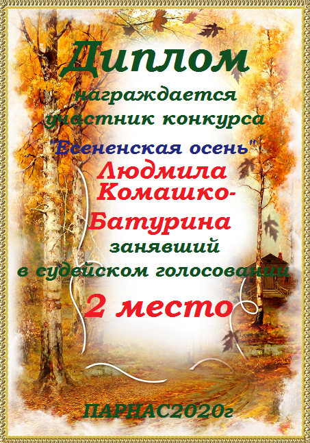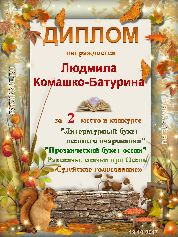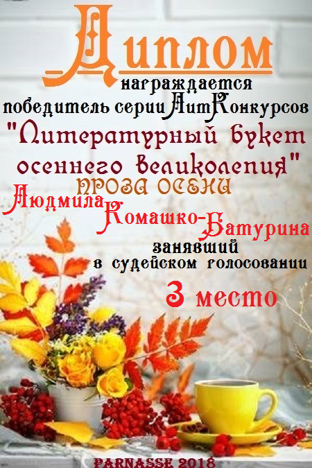 Поздравляем со 2 местом в конкурсе "Литературный букет осеннего очарования" - номинация Проза, судейское голосование!