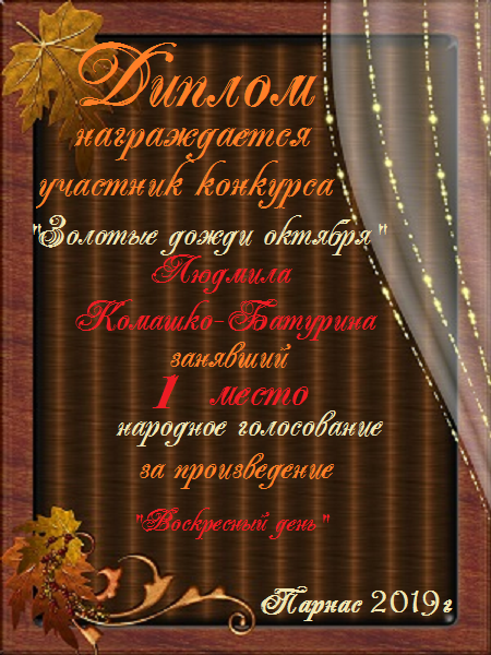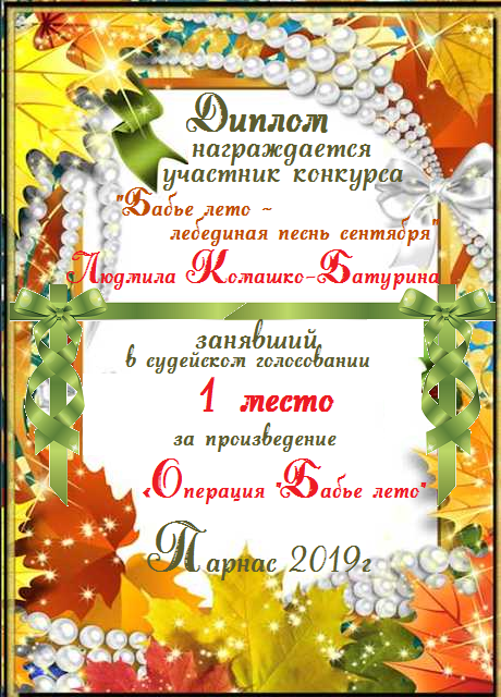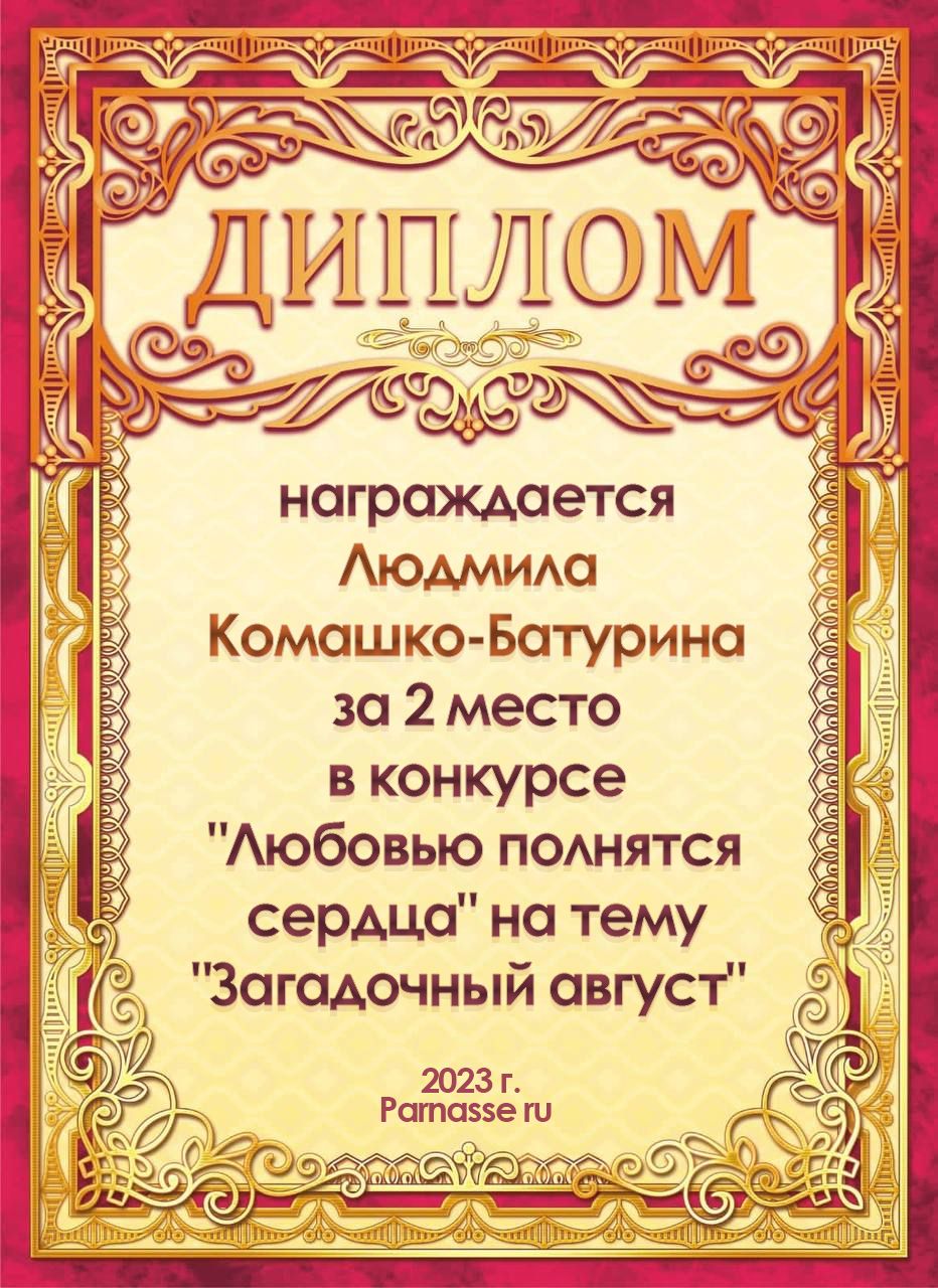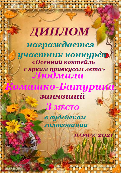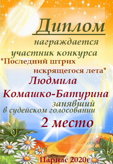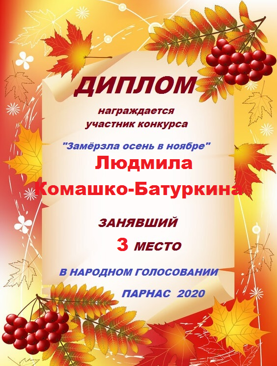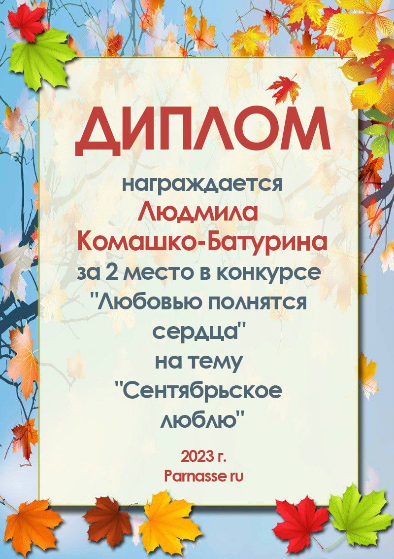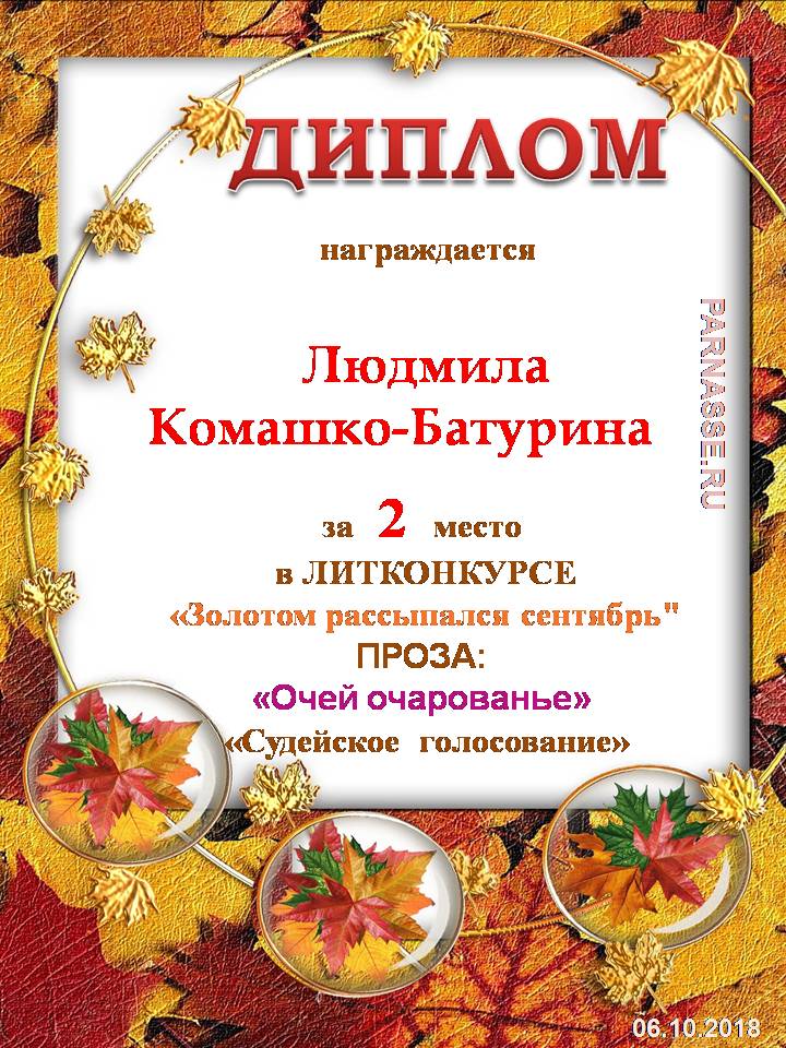 Поздравляем со 2 местом в конкурсе "Литературный букет осеннего очарования" - номинация Проза, судейское голосование!