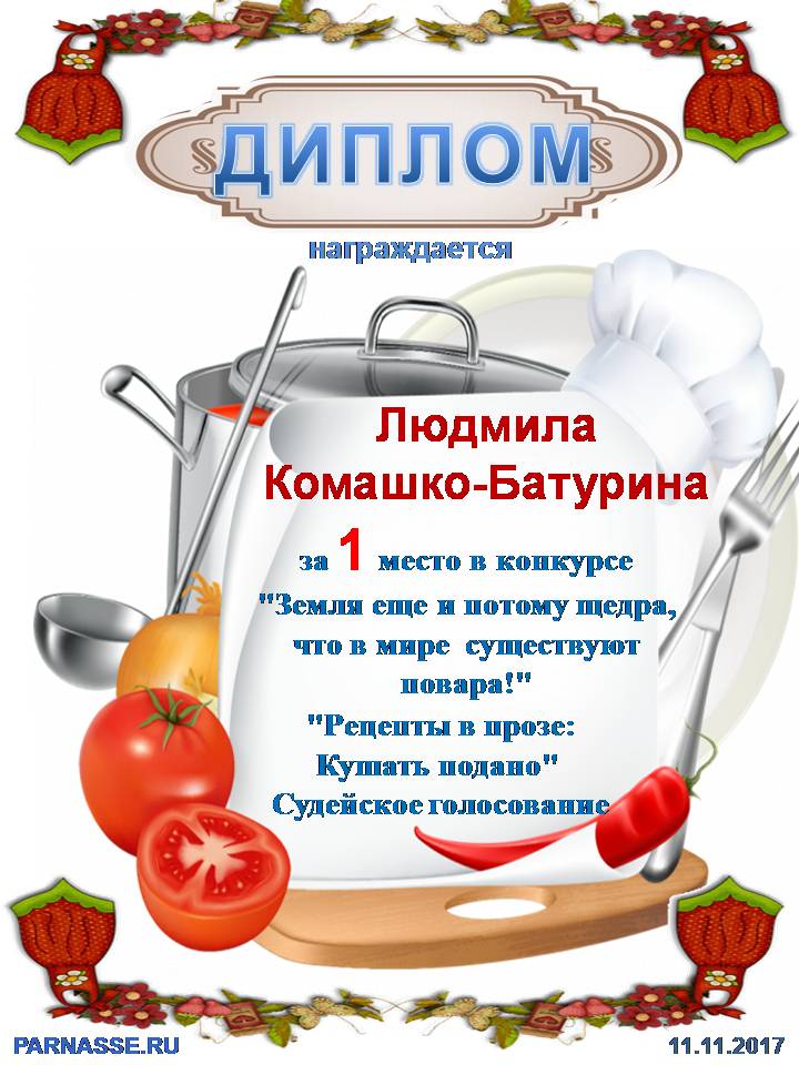 Поздравляем с 1 местом! Номинация: Рецепты в прозе: Кушать подано! - судейское голосование.