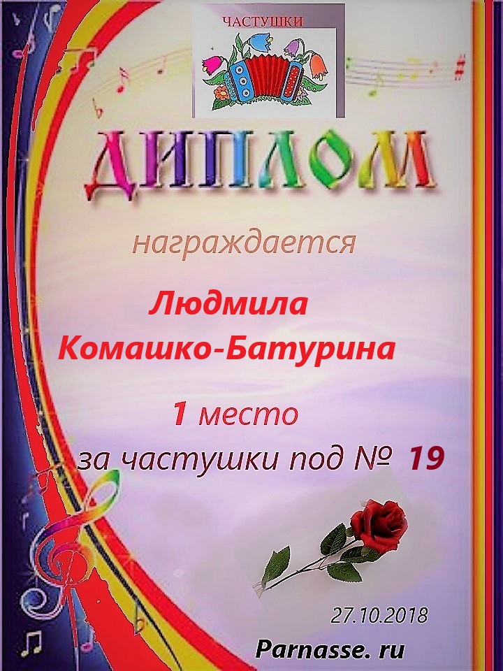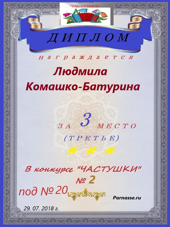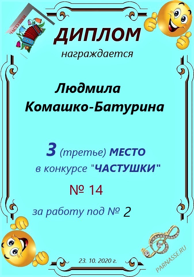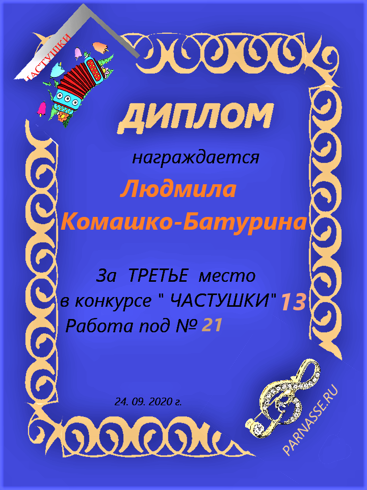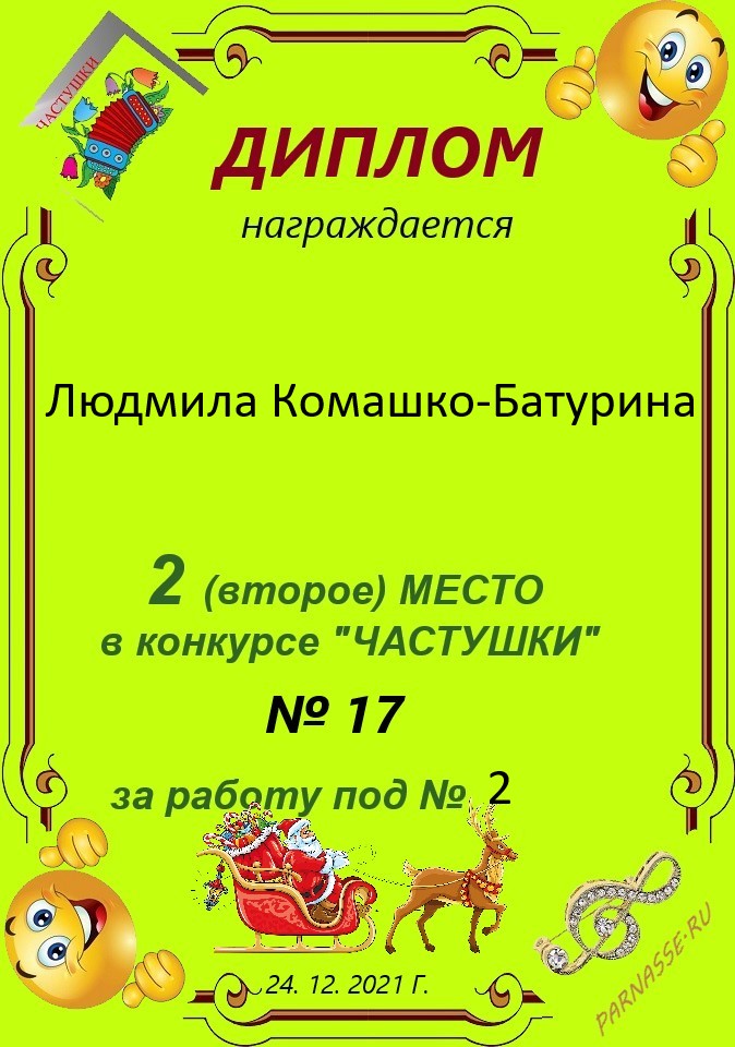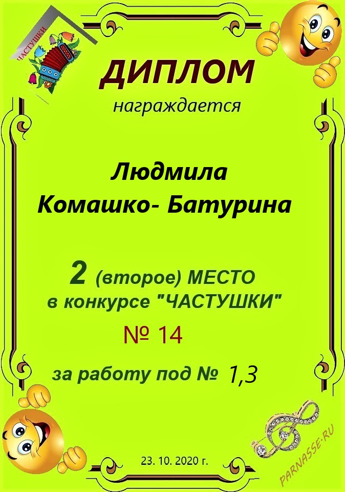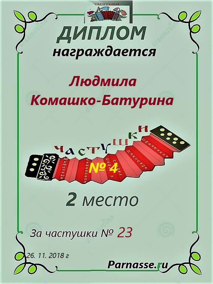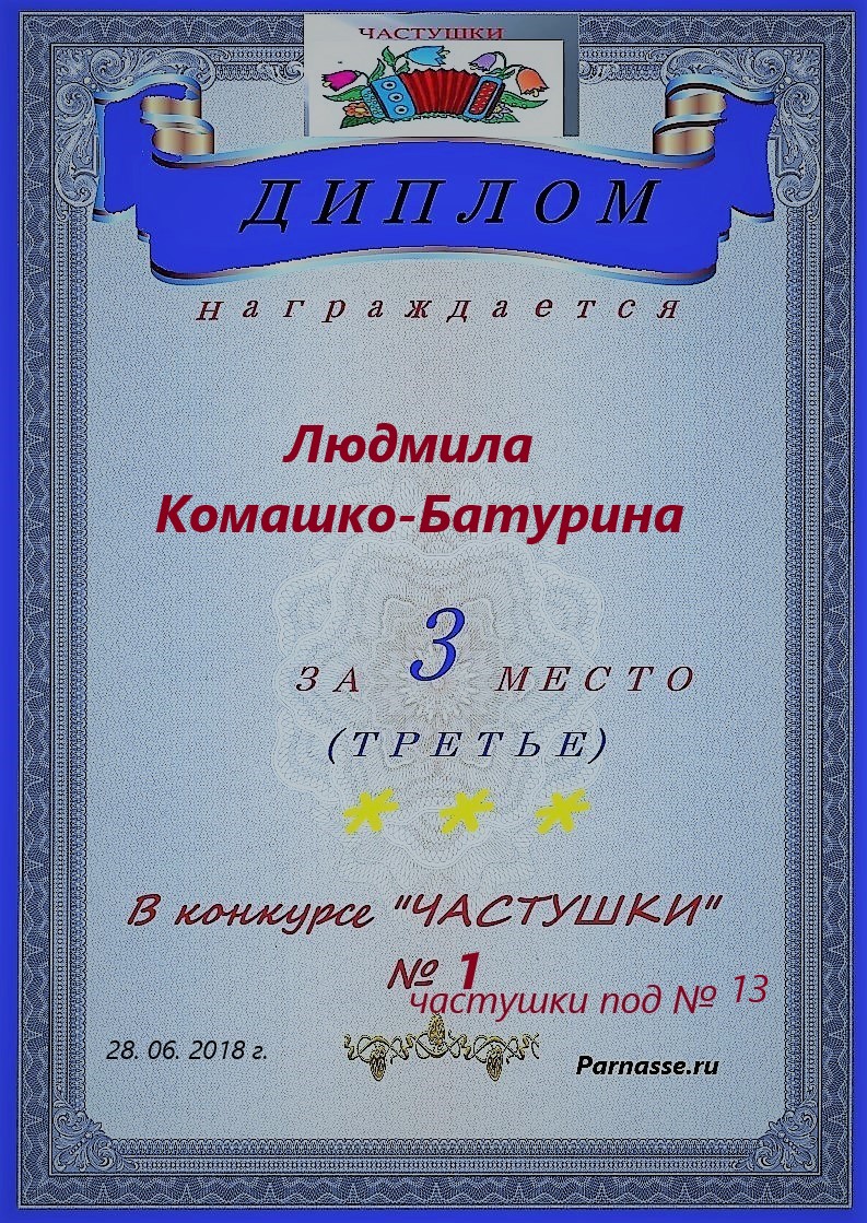 Диплом за 2 место в 3 туре (частушки) в конкурсе СУПЕРБЛИЦА № 27!ПОЗДРАВЛЯЮ!