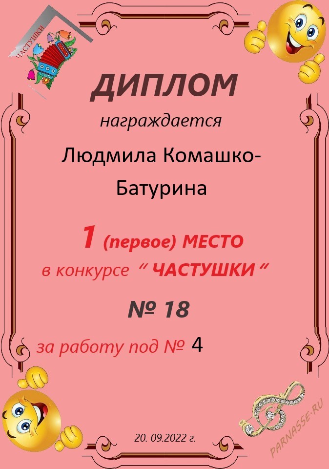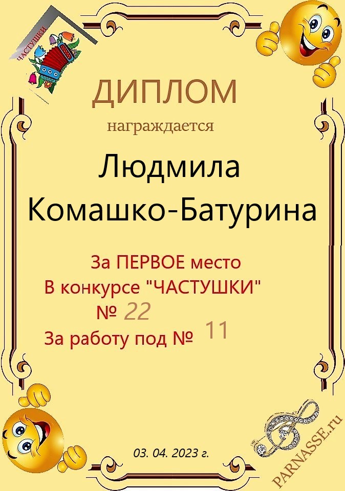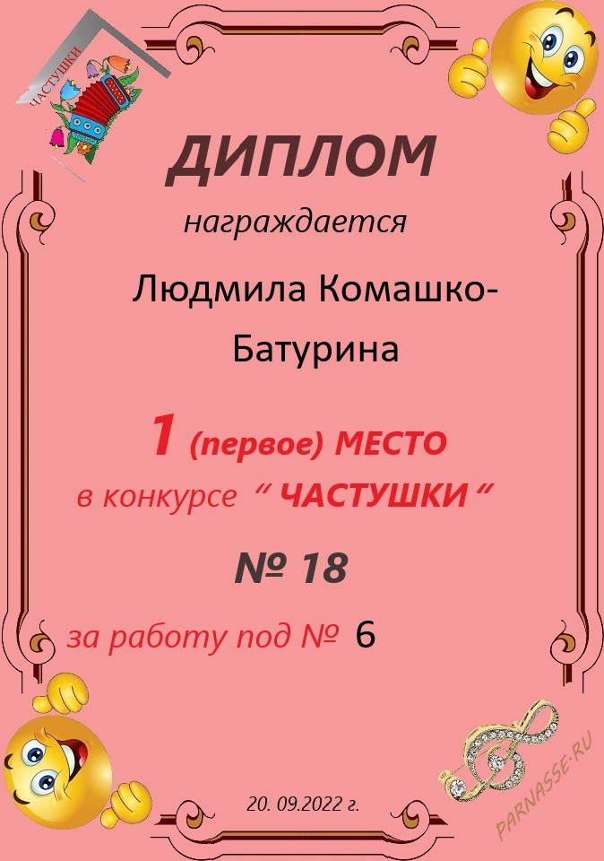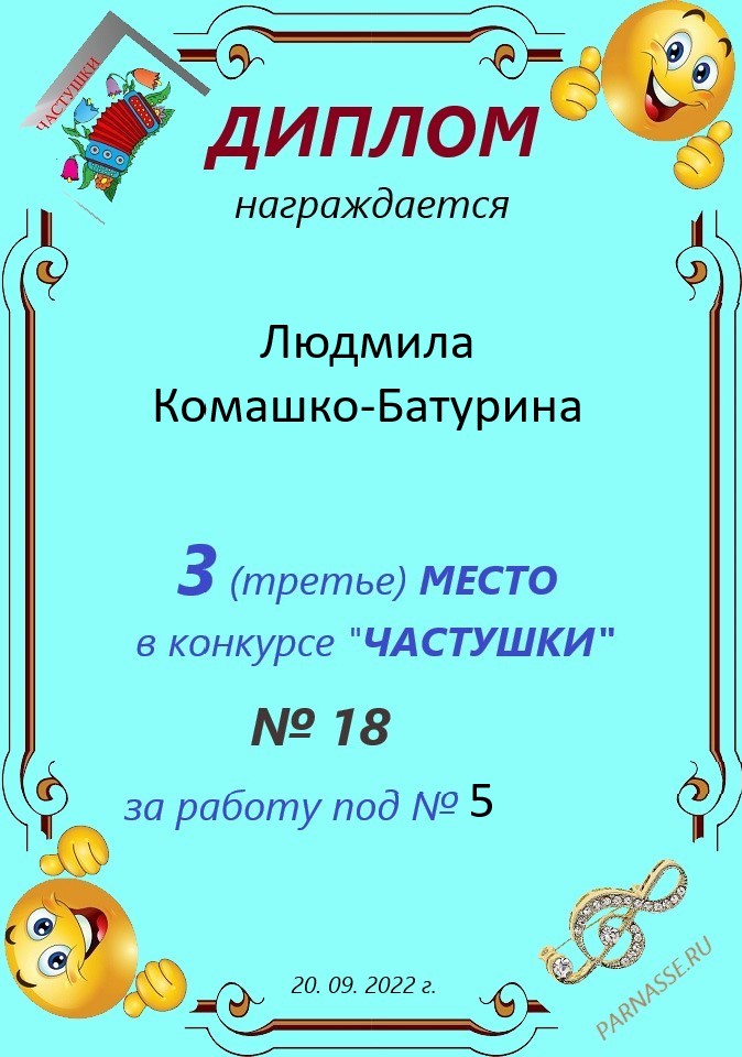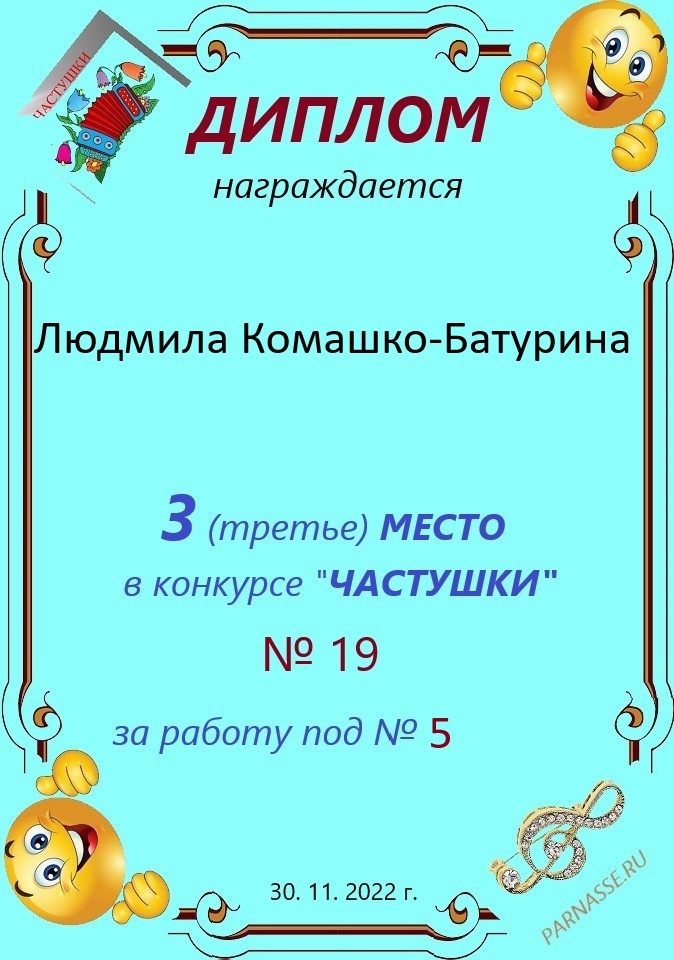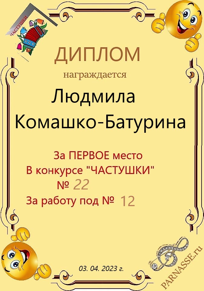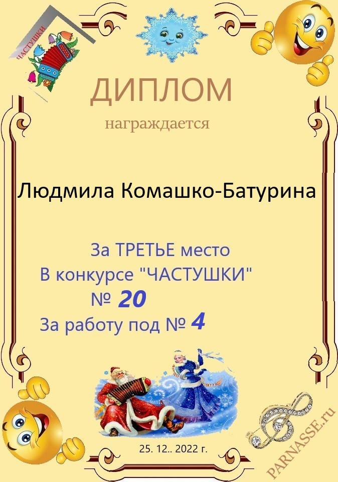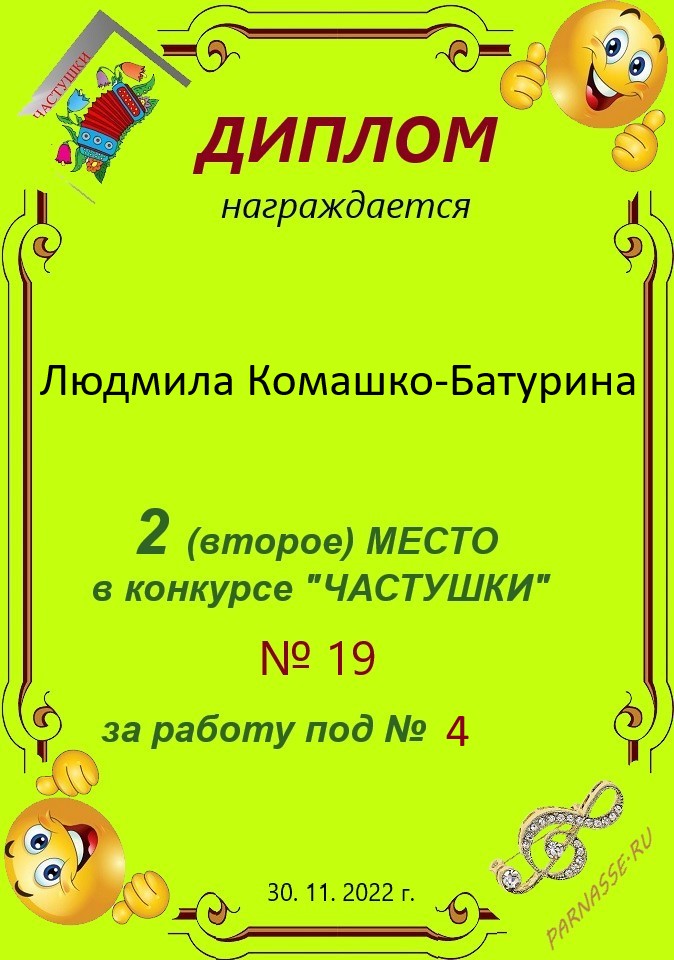 Диплом за 2 место в 3 туре (частушки) в конкурсе СУПЕРБЛИЦА № 27!ПОЗДРАВЛЯЮ!