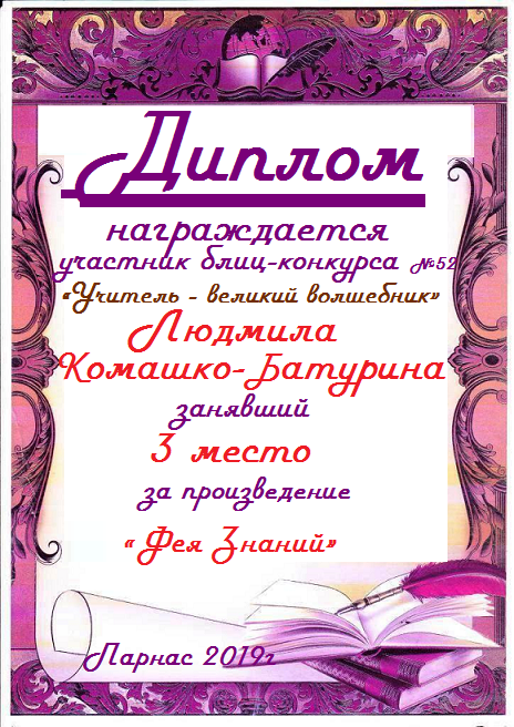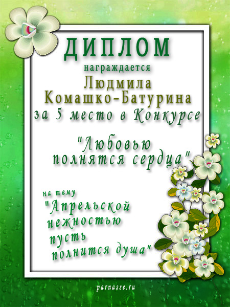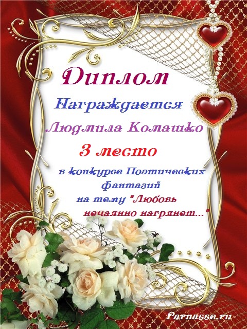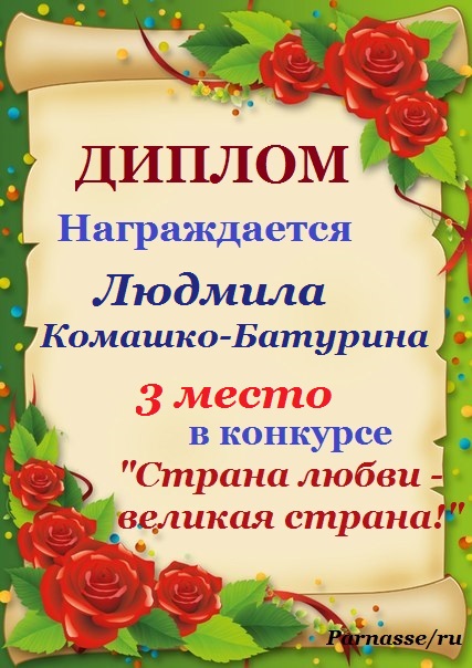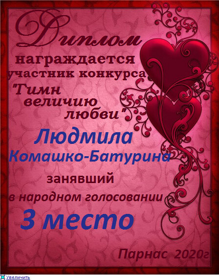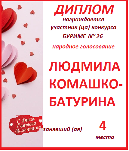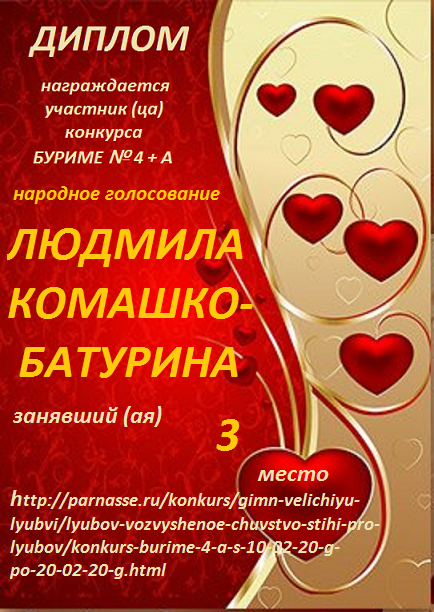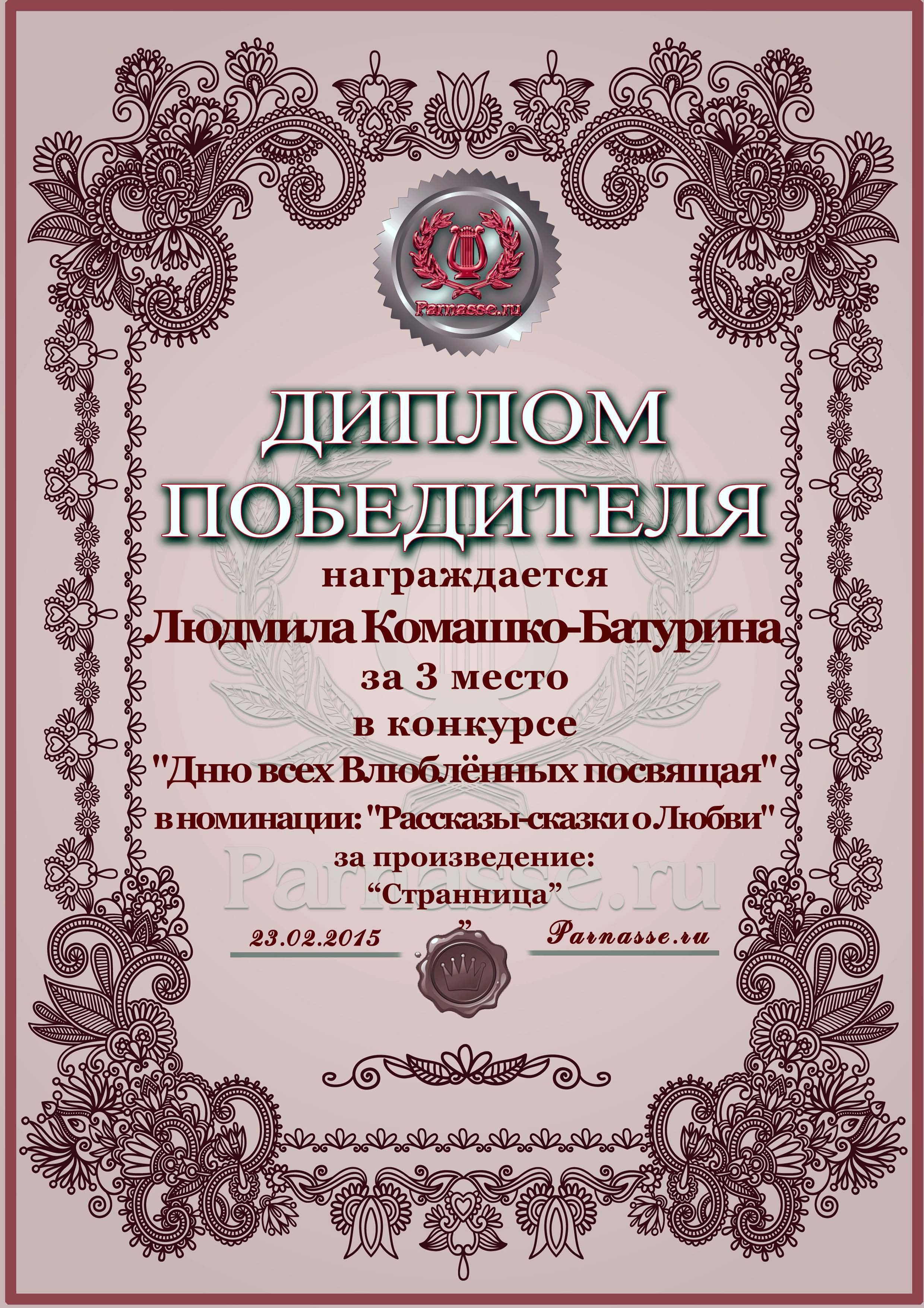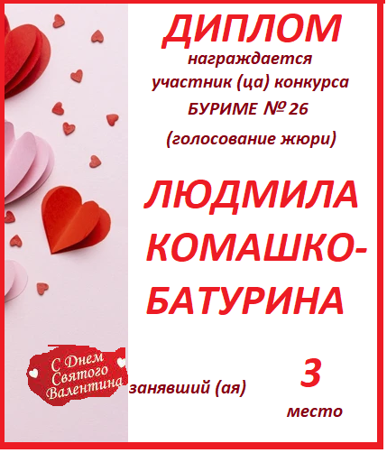 Диплом за 3 место в конкурсе "Дню всех Влюблённых посвящая"