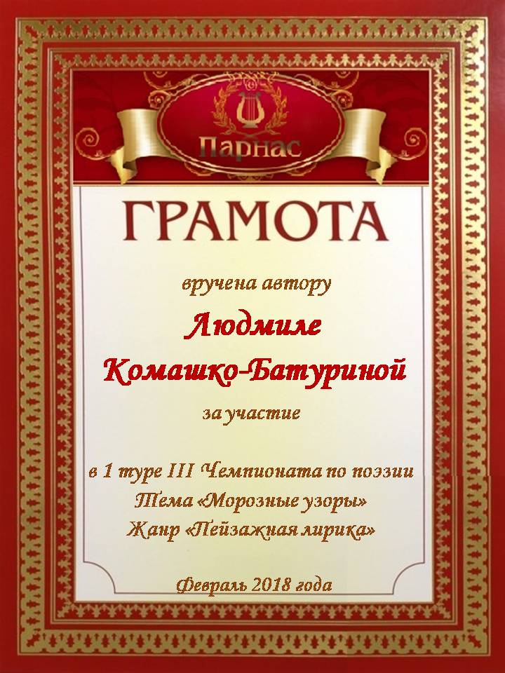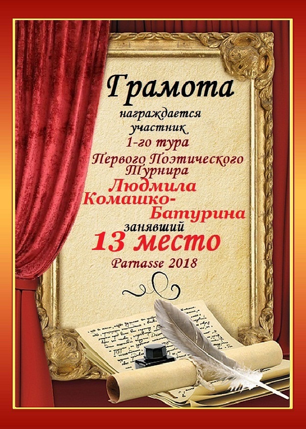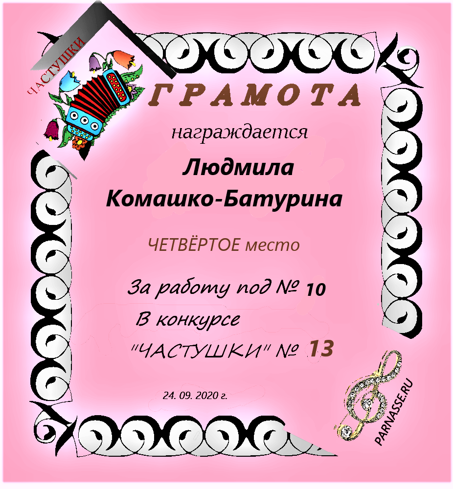 Грамота за 4 место в 118 конкурсе АКРОСТИХА (Альтернатива)! ПОЗДРАВЛЯЮ!