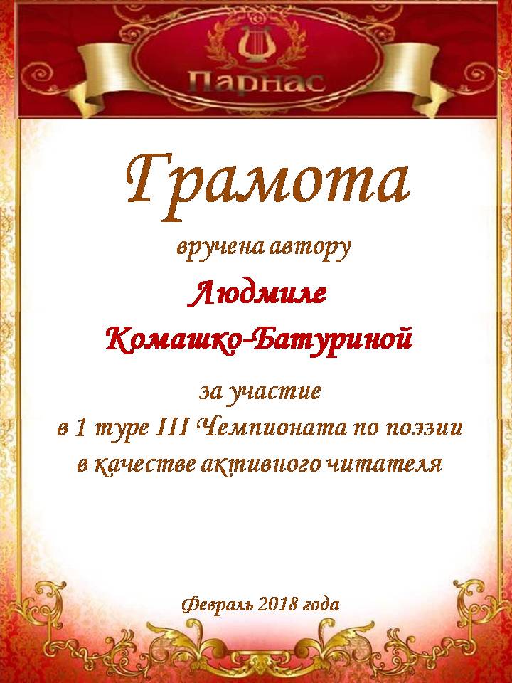 Людмила, благодарю Вас за неравнодушие! Чемпионат ждёт Ваших комментариев!
