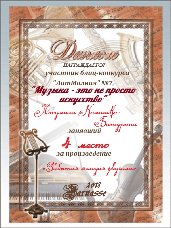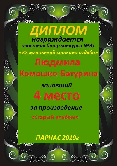 Грамота за 4 место в 119 конкурсе АКРОСТИХА (Альтернатива)! ПОЗДРАВЛЯЮ!