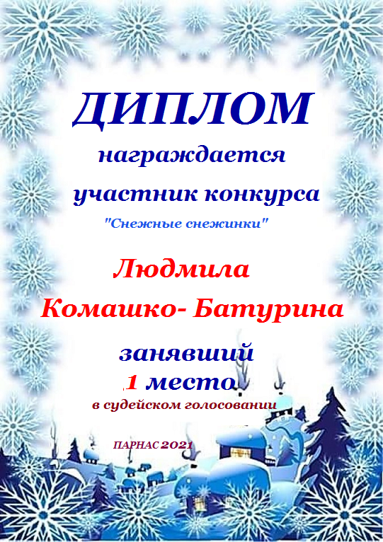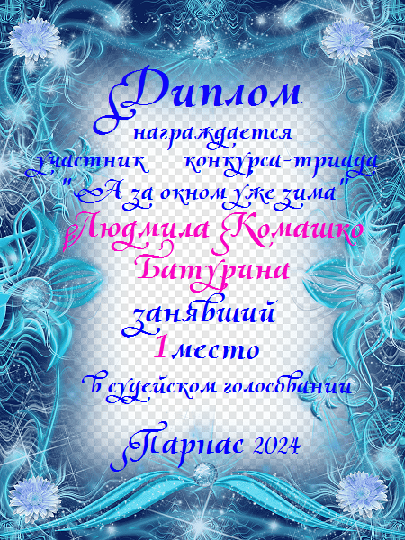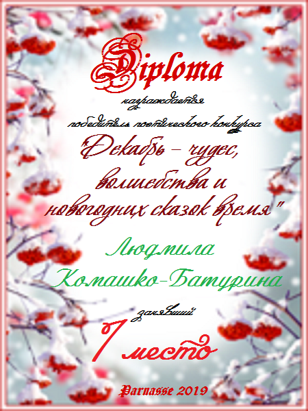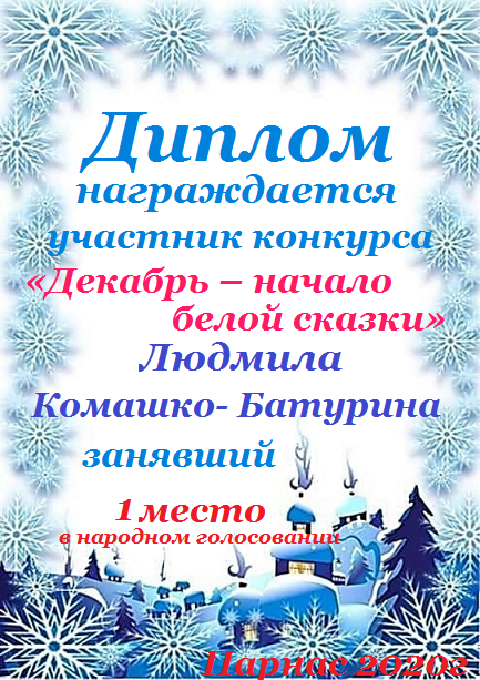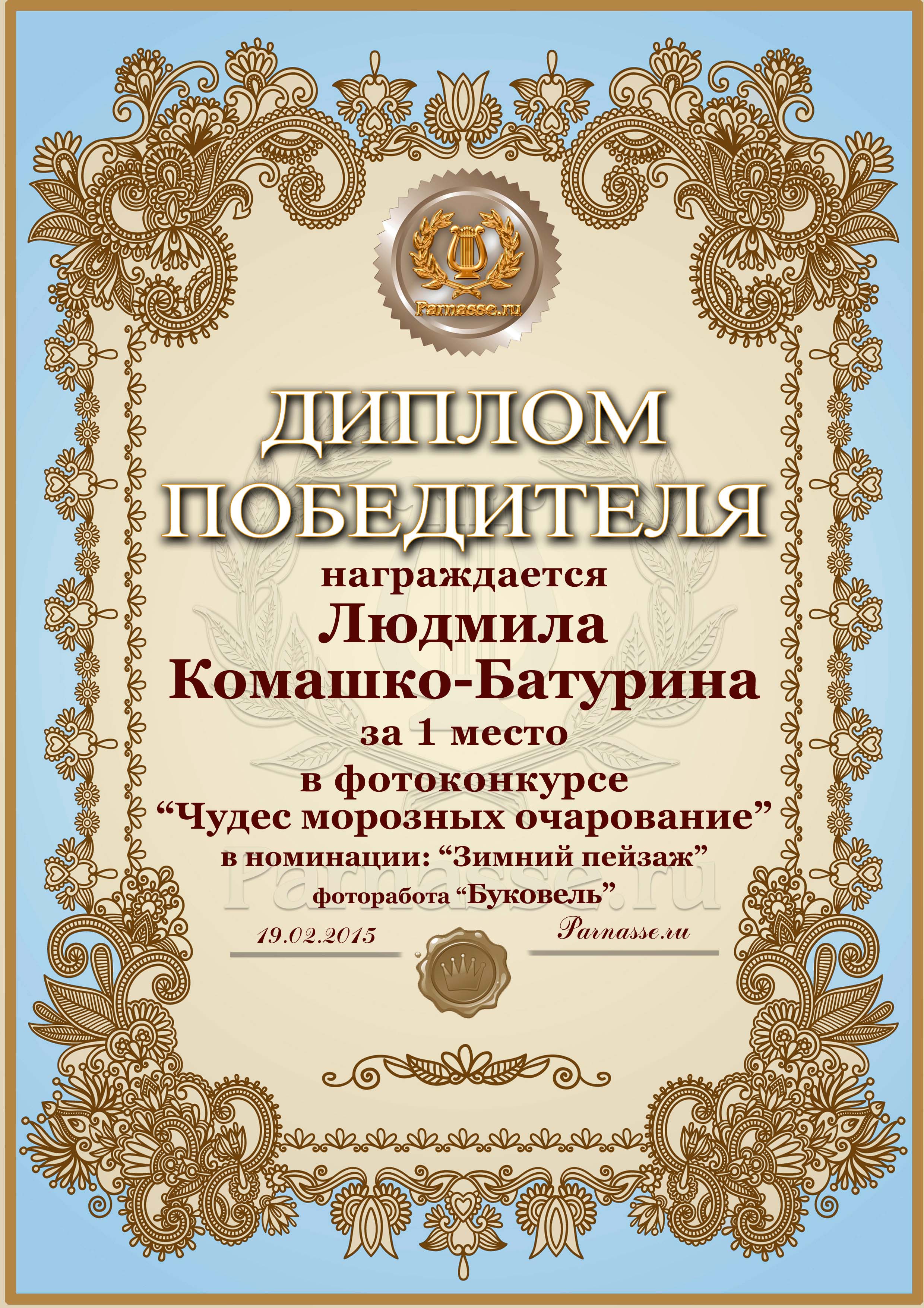 Диплом за 1 место в фотоконкурсе "Чудес морозных очарование"
